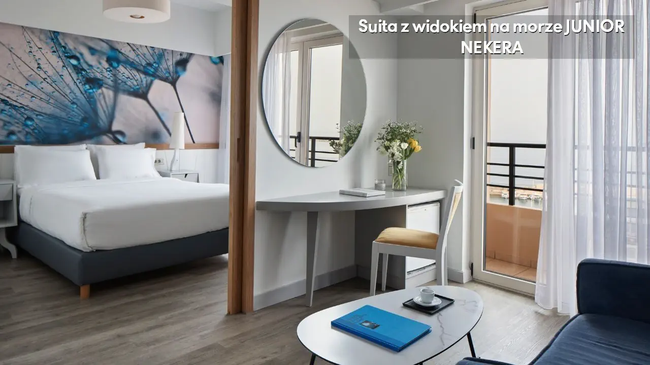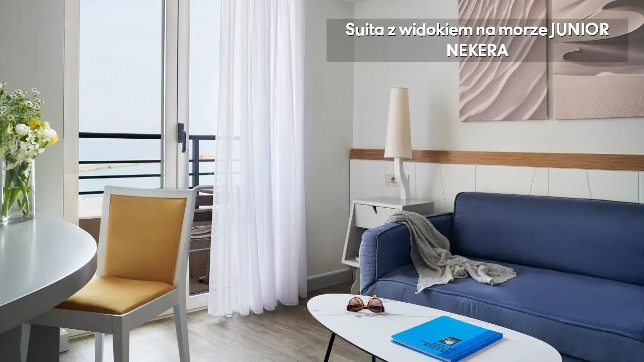 nowocześnie i minimalistycznie urządzone pokoje. Pokój dwuosobowy COMFY: ok. 18 m2; dla maks. 2 osób dorosłych, łóżko podwójne lub dwa pojedyncze. Wyposażenie: klimatyzacja (sterowana indywidulanie), 32’ TV -Sat., telefon (płatny), sejf, minilodówka, zestaw do parzenia kawy/herbaty, prywatna łazienka (prysznic, toaleta, umywalka, suszarka do włosów, minikosmetyki). Usytuowany na pierwszym lub drugim piętrze, z widokiem na miasto. Pokój z widokiem na miasto SUPERIOR: ok. 20 m2; dla maks. 2 osób dorosłych, łóżko podwójne lub dwa pojedyncze. Poza tym wyposażony jak pokój COMFY. Usytuowany w budynku głównym lub bocznym, z widokiem na miasto i częściowym widokiem na morze. Pokój z widokiem na morze SUPERIOR: ok. 20 m2; dla maks. 2 osób dorosłych, łóżko podwójne lub dwa pojedyncze. Poza tym wyposażony jak pokój COMFY. Umeblowany balkon z widokiem od strony portu i morza. Suita z widokiem na morze JUNIOR: ok. 30 m2; dla maks. 3 osób dorosłych, łóżko podwójne o rozm. king-size i rozkładana sofa. Ekspress do parzenia kawy Nespresso/herbaty, kapcie i szlafrok. Poza tym wyposażony jak pokój COMFY. Umeblowany balkon z widokiem od strony portu i morza.