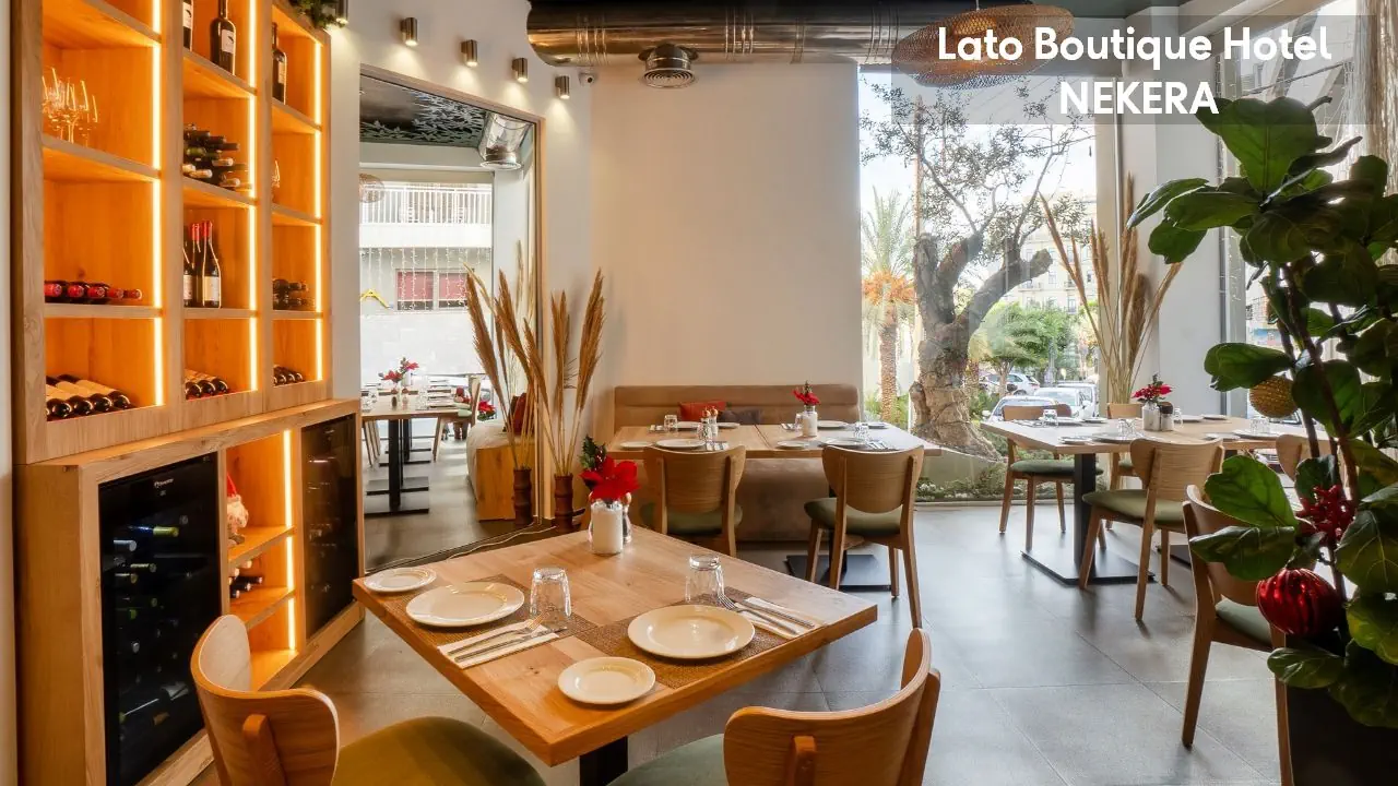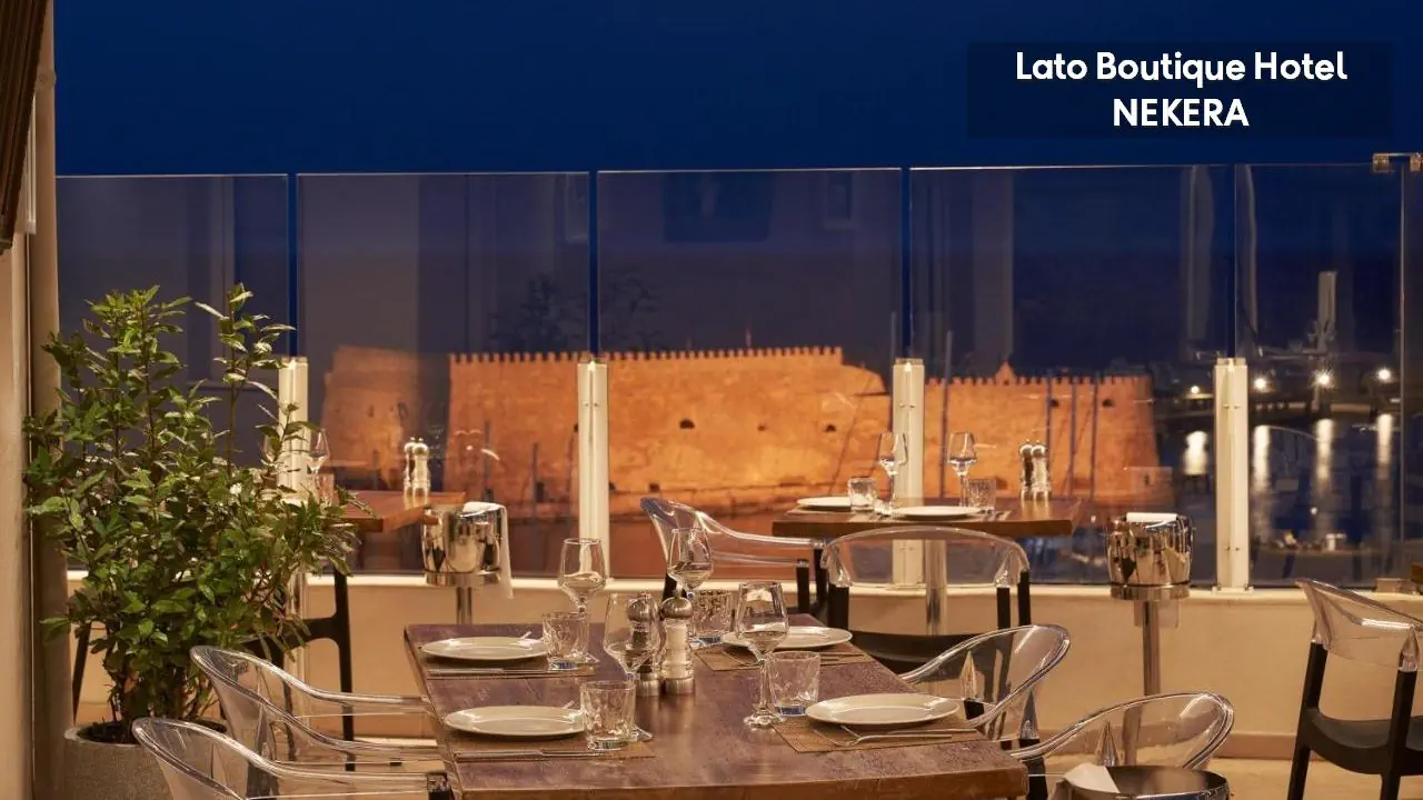 w samym sercu stolicy wyspy- Heraklionie, na Starym Mieście. W pobliżu sklepy, tawerny, bary, muzea, port promowy. Antyczny pałac w Konssos: ok. 6 km. Port lotniczy oddalony o ok. 4 km.