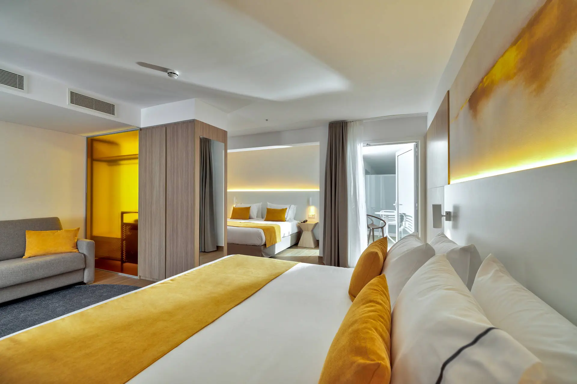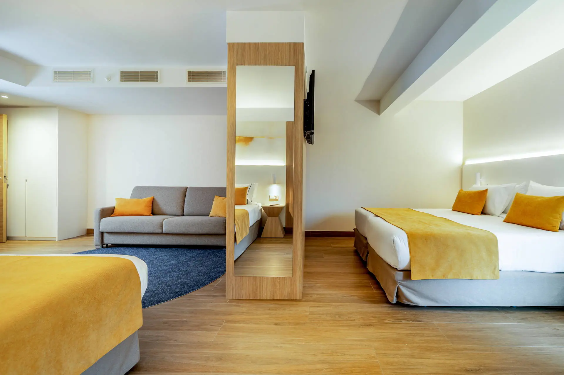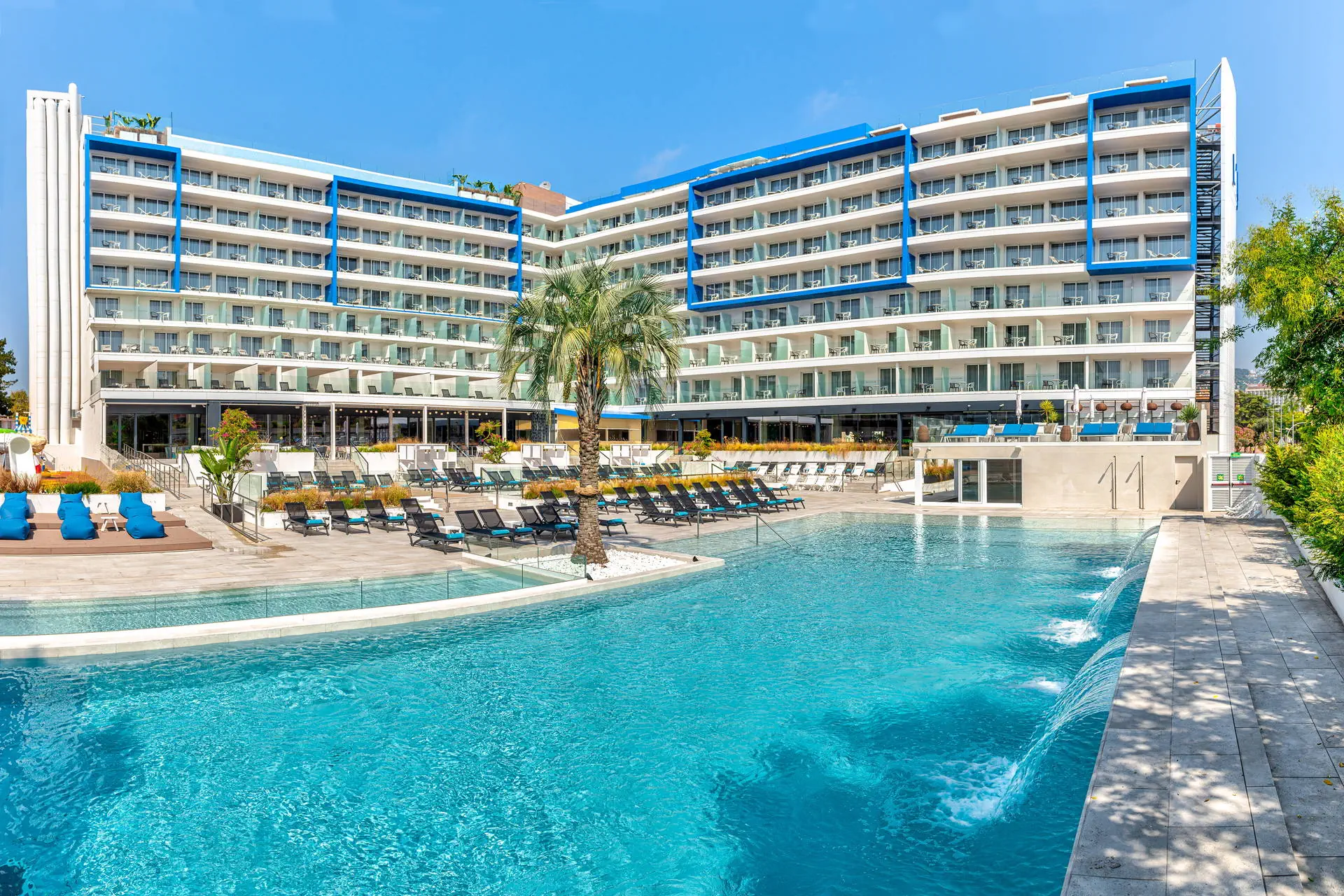 Kategoria lokalna ****S Położenie Do lotniska w Gironie jest około 30 km, a do lotniska w Barcelonie około 90 km. Dworzec autobusowy znajduje się naprzeciwko obiektu. Obiekt położony jest w centrum Lloret de Mar, w otoczeniu barów, restauracji, klubów i sklepów. Pokoje Hotel posiada 411 pokoi rozlokowanych w 7-piętrowym budynku. Wszystkie komfortowe, klimatyzowane, z łazienką (suszarka do włosów), telefonem, TV-sat, sejfem (płatny), minibarem (płatny) oraz z balkonem (meble balkonowe). Łóżeczko dla dziecka do 2 lat gratis (ilość ograniczona). Pokoje standardowe (pow. ok. 21 m2) - dla maksymalnie 3 osób, jako dostawka dodatkowe łóżko, pokoje od strony miasta/ulicy. W tej kategorii dostępne pokoje 1-osobowe. Pokoje standardowe z widokiem na basen (pow. ok. 21 m2) - dla maksymalnie 3 osób, jako dostawka dodatkowe łóżko, pokoje od strony basenu. Pokoje superior (pow. ok. 30 m2) - dla maksymalnie 3 osób, jako dostawka dodatkowe łóżko lub 1-osobowa sofa, pokoje od strony miasta/ulicy. Pokoje rodzinne (pow. ok. 45 m2) – dla maksymalnie 4 osób, 1 pomieszczenie, w pokoju 1 łóżko małżeńskie i 2 pojedyncze, pokoje od strony ulicy/miasta. Apartamenty rodzinne z widokiem na basen (pow. ok. 44 m2) – dla maksymalnie 4 osób, osobna sypialnia, pokój dzienny z sofą (jako dostawka ta rozkładana sofa lub dodatkowe łóżka), pokoje od strony basenu. Suite z widokiem na basen (pow. ok. 44 m2) – dla maksymalnie 2 osób, osobna sypialnia, pokój dzienny z sofą, pokoje od strony basenu. Plaża Odległość plaży od hotelu: około 700 metrów. Piaszczysto-żwirowa. Leżaki i parasole płatne (ok. 8 EUR/dzień). Do dyspozycji gości Recepcja i lobby dostępne dla Gości hotelu, windy. 1 basen dostępny dla Gości hotelu, taras słoneczny z leżakami i parasolami, ręczniki basenowe (gratis). Atrakcje dla dzieci: wodny plac zabaw dla dzieci, miniklub, klub dla nastolatków z grami video. Atrakcje dla dorosłych: strefa Adults Only na dachu (basen typu infinity)Restauracje: restauracja, restauracja a’la carte, bary (część czynna sezonowo), chillout bar. Pozostałe informacje: sale konferencyjne. Hotel pobiera depozyt gotówką lub kartą 25EUR/os/dzień. Wyżywienie Rodzaje wyżywienia i posiłki: Bez wyżywienia. Istnieje możliwość dopłaty do: Śniadań. Śniadań i obiadokolacji. Trzech posiłków dziennie (wszystkie posiłki w formie bufetu). Program sportowy i animacyjny Dla każdego: siłownia, sala fitness, dzienne i wieczorne animacje. Za dodatkową opłatą: strefa wodna hotelowego spa (basen z hydromasażami, basen podgrzewany, jacuzzi, sauna), zabiegi w hotelowym Spa. Internet Wi-Fi w całym hotelu gratis. Naszym zdaniem Hotel w Lloret de Mar, odnowiony w 2019 roku, oferuje nowoczesne i gustownie urządzone wnętrza. Na dachu znajduje się strefa Adults Only z basenem i barem chillout, idealna do relaksu. Dla rodzin z dziećmi przygotowano główną strefę basenową z wodnym placem zabaw. Różnorodność pokoi, w tym opcje z osobną sypialnią, zapewnia komfortowy pobyt. To jedna z najnowszych i najbardziej stylowych propozycji w regionie. Strona www