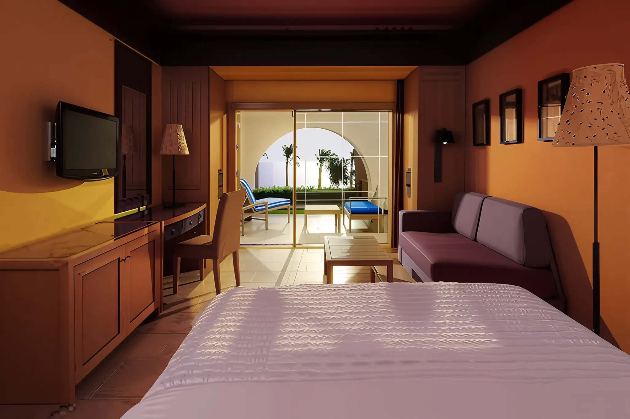 Dla max. 4 osób, Przestrzeń zewnętrzna: Taras, Kanały telewizji: Angielski, Telefon w pokoju, wanna, prysznic, Powierzchnia pokoju: ok. 36 m2, Dostawka: łóżko standardowe, Rodzaj podłogi: płytki, Sprzątanie codziennie, 1 sypialnia, Maksymalna liczba osób dorosłych: 3, Maksymalna liczba dzieci: 2, Frontalny widok na morze, Wyjście do wspólnego basenu, Liczba łazienek: 1, Liczba toalet: 1, Zestaw do parzenia kawy i herbaty, Klimatyzacja: Klimatyzacja indywidualna