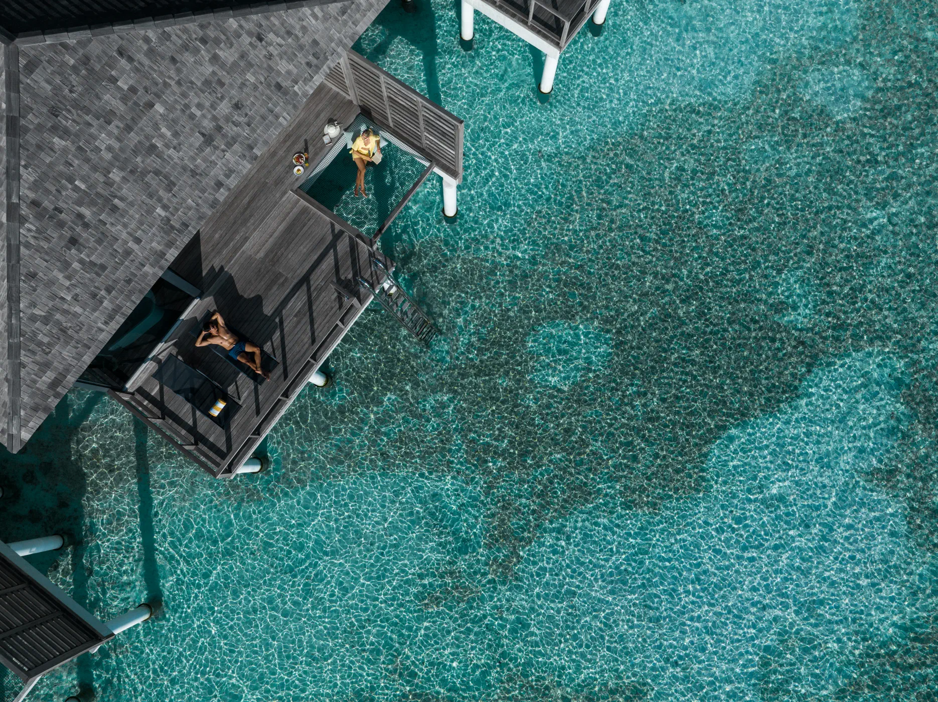 Dla max. 4 osób, Przestrzeń zewnętrzna: Taras, Kanały telewizji: Angielski, Telefon w pokoju, wanna i prysznic , Powierzchnia pokoju: ok. 100 m2, Dostawka: łóżko standardowe, Rodzaj podłogi: drewno, Sprzątanie codziennie, 1 sypialnia, Maksymalna liczba osób dorosłych: 3, Maksymalna liczba dzieci: 2, Widok na lagunę,Frontalny widok na morze,Widok na morze, Liczba łazienek: 1, Liczba toalet: 1, Zestaw do parzenia kawy i herbaty, Klimatyzacja: Klimatyzacja indywidualna