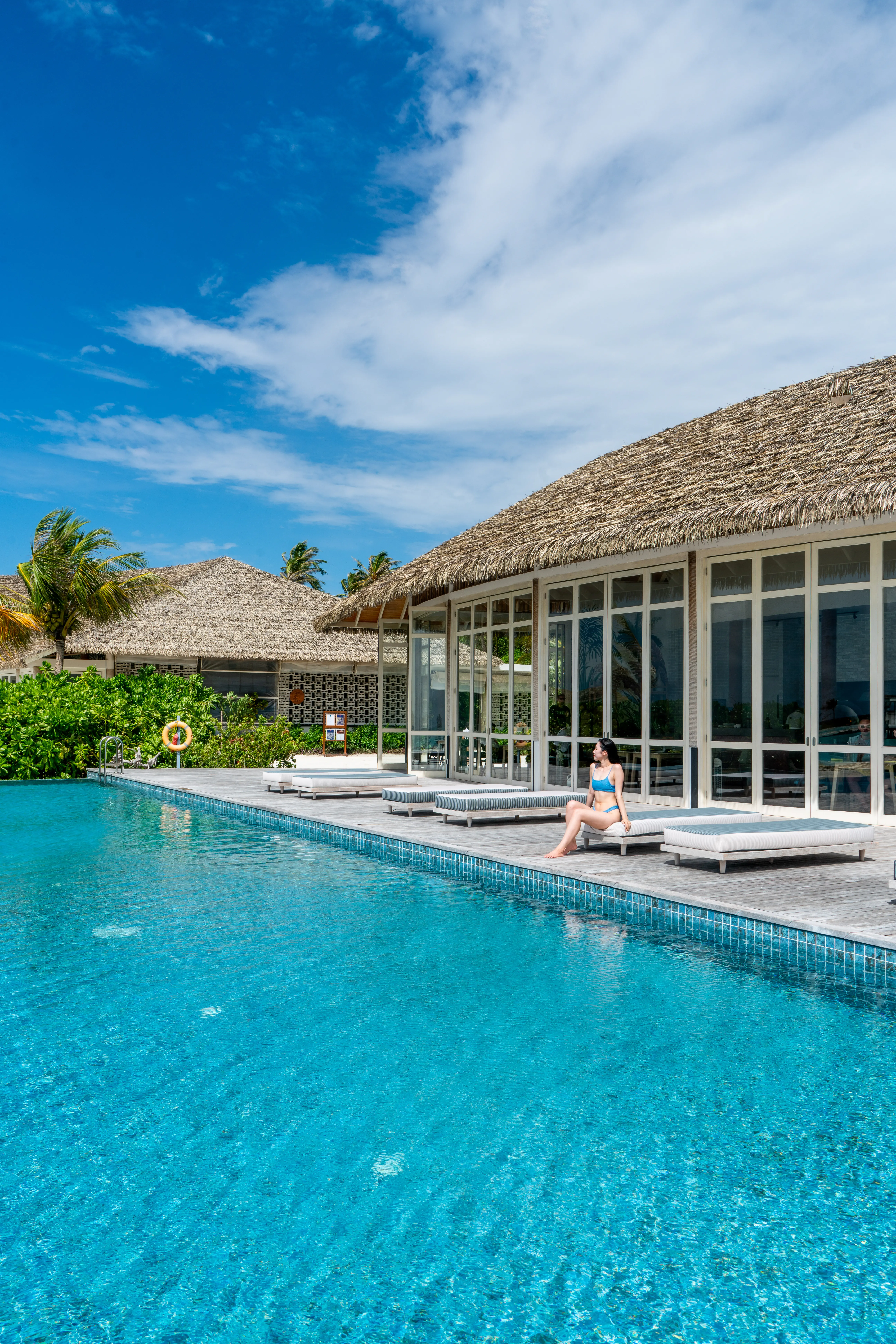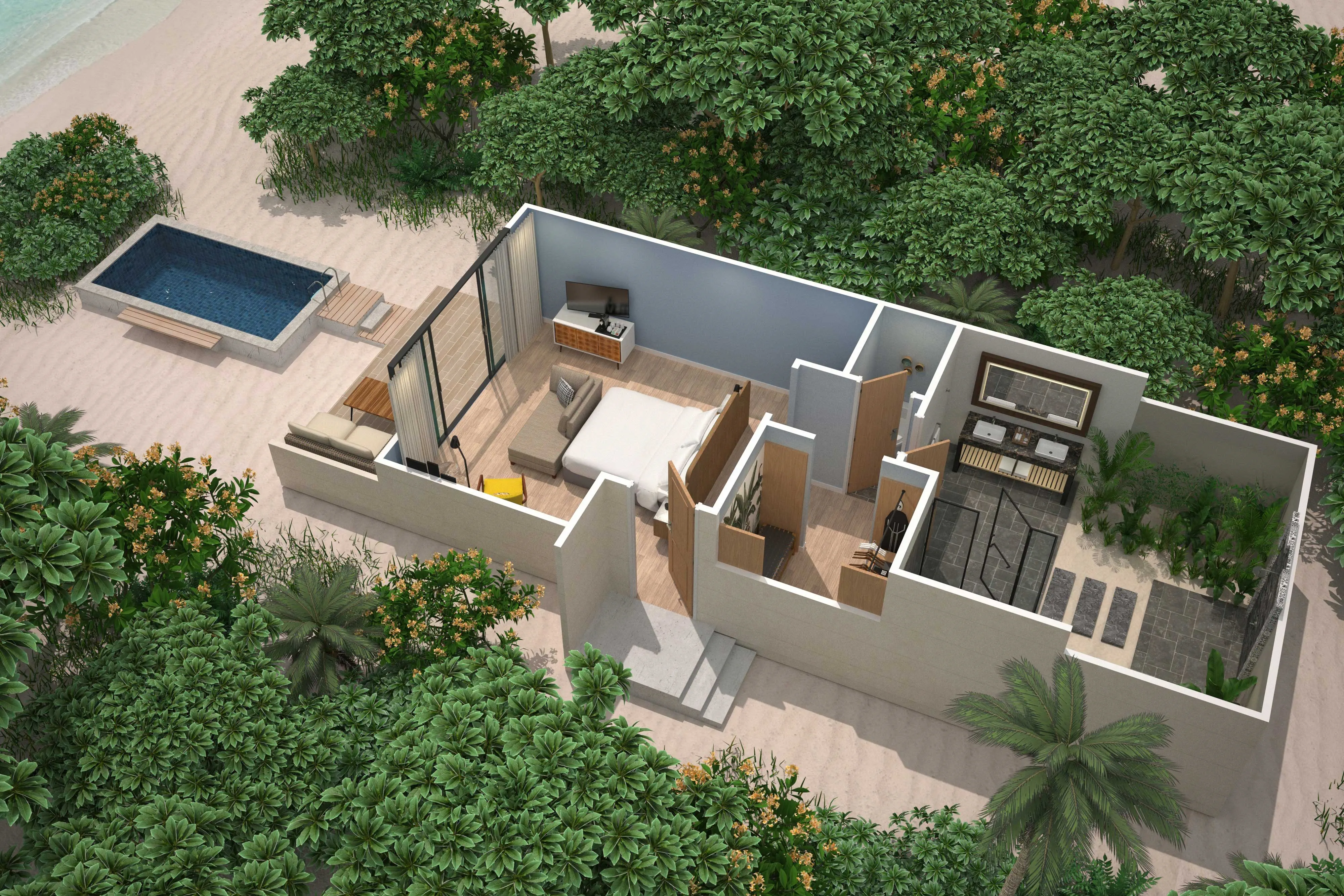 Dla max. 4 osób, Przestrzeń zewnętrzna: Taras, Kanały telewizji: Angielski, Telefon w pokoju, wanna i prysznic , Powierzchnia pokoju: ok. 100 m2, Dostawka: łóżko standardowe, Rodzaj podłogi: drewno, Sprzątanie codziennie, 1 sypialnia, Maksymalna liczba osób dorosłych: 3, Maksymalna liczba dzieci: 2, Widok na lagunę,Frontalny widok na basen,Widok na basen,Frontalny widok na morze,Widok na morze, Liczba łazienek: 1, Liczba toalet: 1, Zestaw do parzenia kawy i herbaty, Klimatyzacja: Klimatyzacja indywidualna