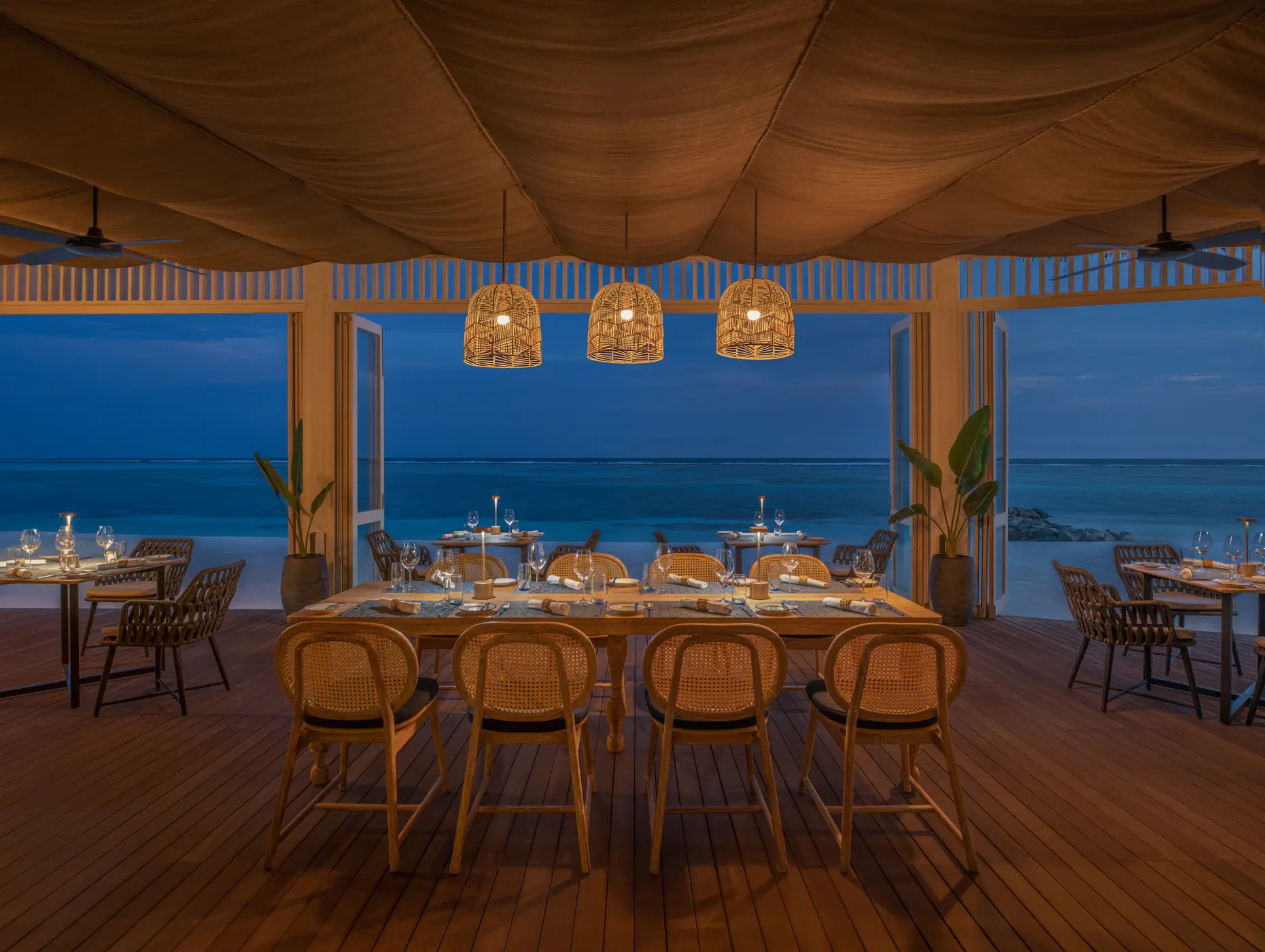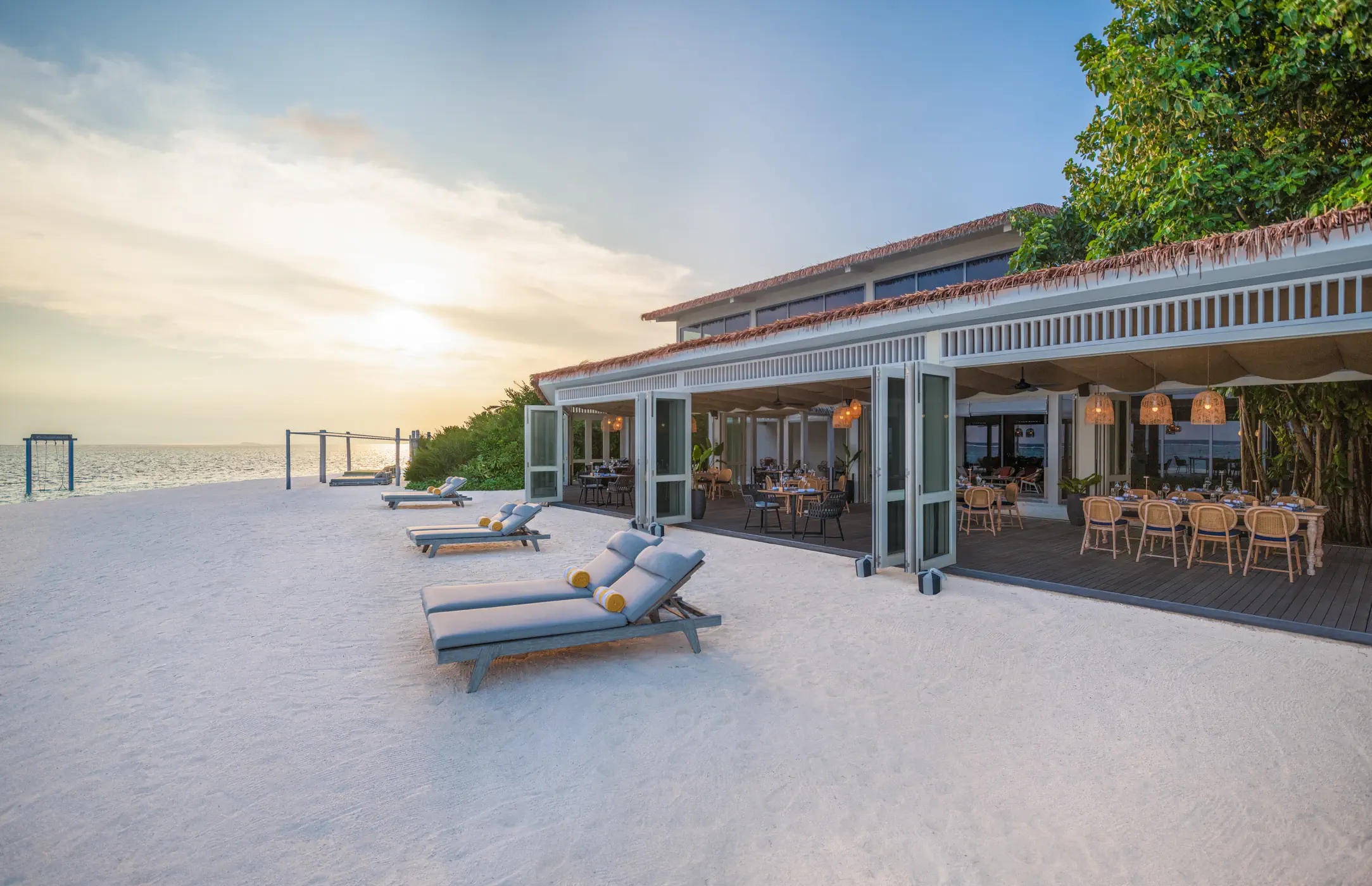 Śniadanie (07:00 - 11:00) - Turquoise, stół szwedzki, Późne śniadanie (08:00 - 17:00) - Waves Cafe, a la carte, Obiad (10:00 - 16:00) - Velaa Bar + Grill, a la carte, Obiad (11:00 - 16:00) - Riviera , a la carte, Przekąski (08:00 - 17:00) - Waves Cafe, a la carte, Podwieczorek (10:00 - 18:00) - Le Meridien Hub - Latitude , a la carte, Kolacja (18:30 - 22:00) - Turquoise, stół szwedzki, Kolacja (18:00 - 22:00) - Velaa Bar + Grill, a la carte, Kolacja (18:00 - 22:00) - Riviera , a la carte, Kolacja (18:00 - 22:00) - Tabemasu, a la carte, Późna kolacja (24h) - In Villa Dining, a la carte ¹⁾, Velaa Bar + Grill (10:00 - 22:00) (10:00 - 22:00), bez limitu, Kuchnia: międzynarodowa, Wymagana rezerwacja: Tak ¹⁾, Tabemasu (18:00 - 22:00) (18:00 - 22:00), bez limitu, Kuchnia: Japońska, Wymagana rezerwacja: Tak ¹⁾, Riviera Tapas & Bar (12:00 - 22:00) (12:00 - 22:00), bez limitu, Kuchnia: Włoska, Wymagana rezerwacja: Tak ¹⁾, napoje bezalkoholowe, lody ¹⁾, pakiety dla nowożeńców, pakiety urodzinowe (na życzenie), room service ¹⁾, Minibar w pokoju ¹⁾ - dodatkowo płatne