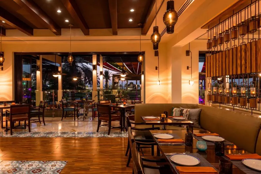 Śniadanie (06:30 - 11:00) - Brasserie, stół szwedzki, Obiad (12:30 - 15:30) - Brasserie, stół szwedzki ¹⁾, Kolacja (19:00 - 23:00) - Brasserie, stół szwedzki, Maya (19:30 - 22:00) (19:30 - 22:00), bez limitu, Kuchnia: Meksykańska, Wymagana rezerwacja: Tak, Zengo (19:00 - 22:00) (19:00 - 22:00), bez limitu, Kuchnia: Chińska, Tajska, Japońska, Wymagana rezerwacja: Tak, Geales (19:00 - 22:00) (19:00 - 22:00), bez limitu, Kuchnia: śródziemnomorska, owoce morza , Wymagana rezerwacja: Tak, Al Khaima (19:00 - 22:00) (19:00 - 22:00), bez limitu, Kuchnia: Libańska, Tunezyjska, Egipska, Wymagana rezerwacja: Tak, Indya (19:00 - 22:00) (19:00 - 22:00), bez limitu, Kuchnia: Włoska, Wymagana rezerwacja: Tak ¹⁾, Rhodes 2010 (19:00 - 22:00) (19:00 - 22:00), bez limitu, Kuchnia: międzynarodowa, Wymagana rezerwacja: Tak, napoje bezalkoholowe ¹⁾, alkohole lokalne ¹⁾, wybrane alkohole importowane ¹⁾, lody ¹⁾, pakiety dla nowożeńców ¹⁾, pakiety urodzinowe (na życzenie) ¹⁾, room service ¹⁾, Minibar w pokoju ¹⁾ ¹⁾ - dodatkowo płatne