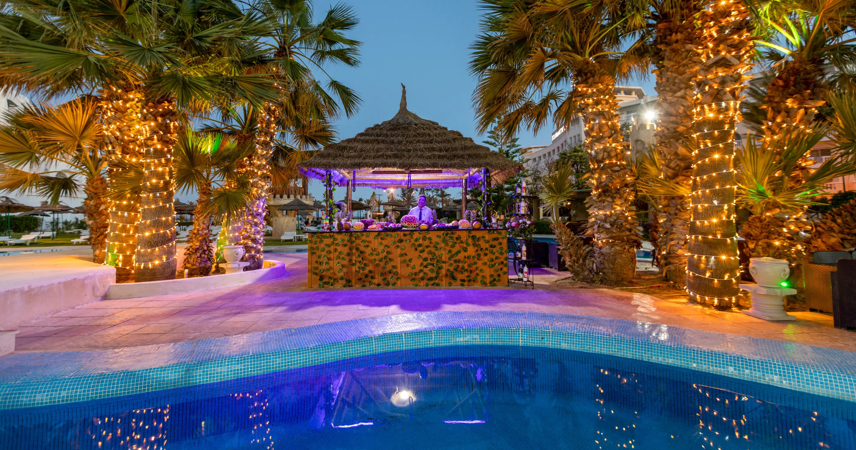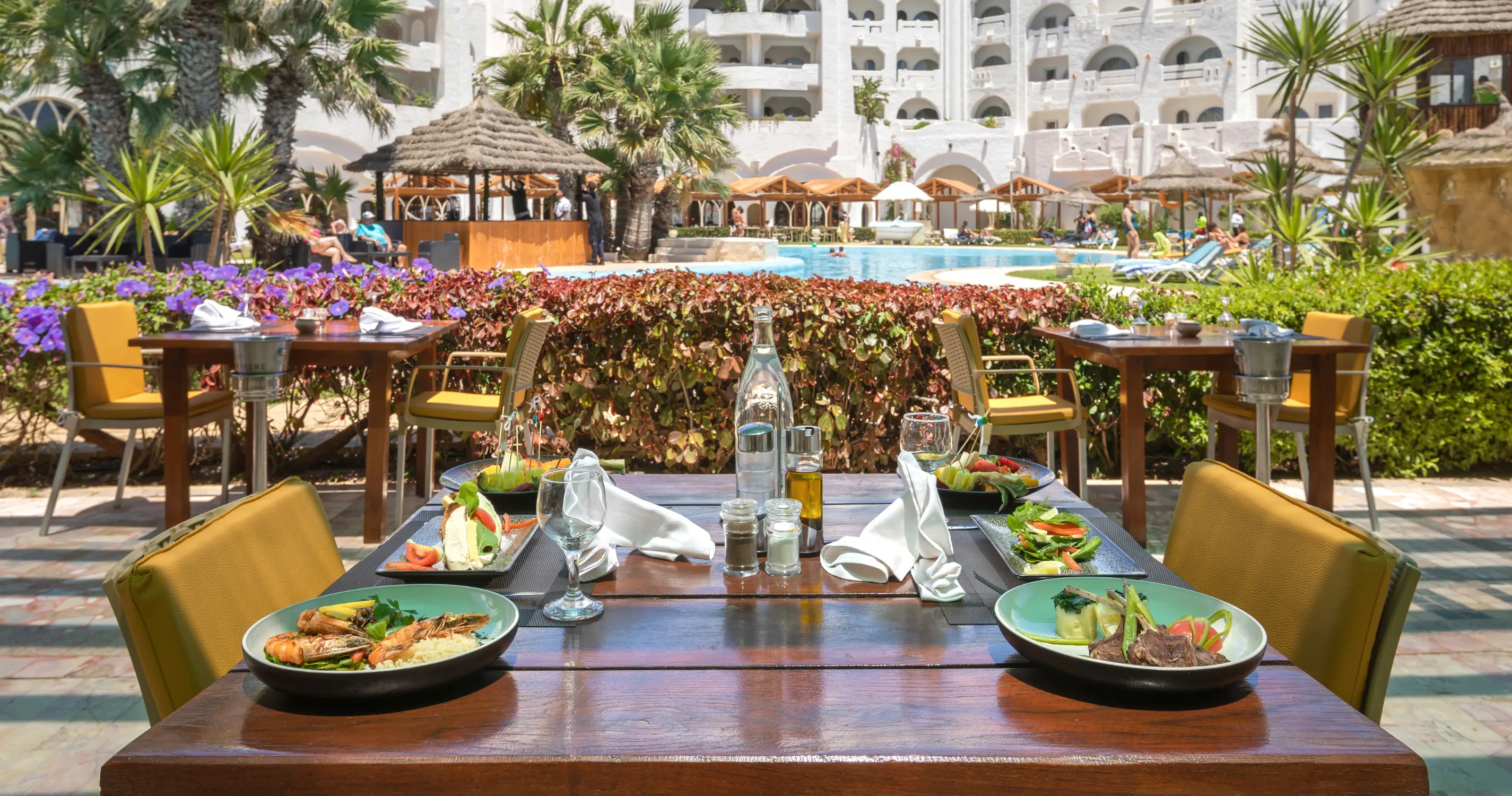 - Recepcja - Restauracja główna - 2 restauracje a la carte - płatne - Snack barbacue bar - płatny, - 3 bary w tym: bar główny, bar przy basenie, bar na plaży - płatny - Kawiarenka mauretańska - 2 baseny, w tym 1 kryty - Brodzik - Sale konferencyjne - Centrum SPA - płatne - Sklepy z pamiątkami - płatne - Oficjalna kategoria 4*