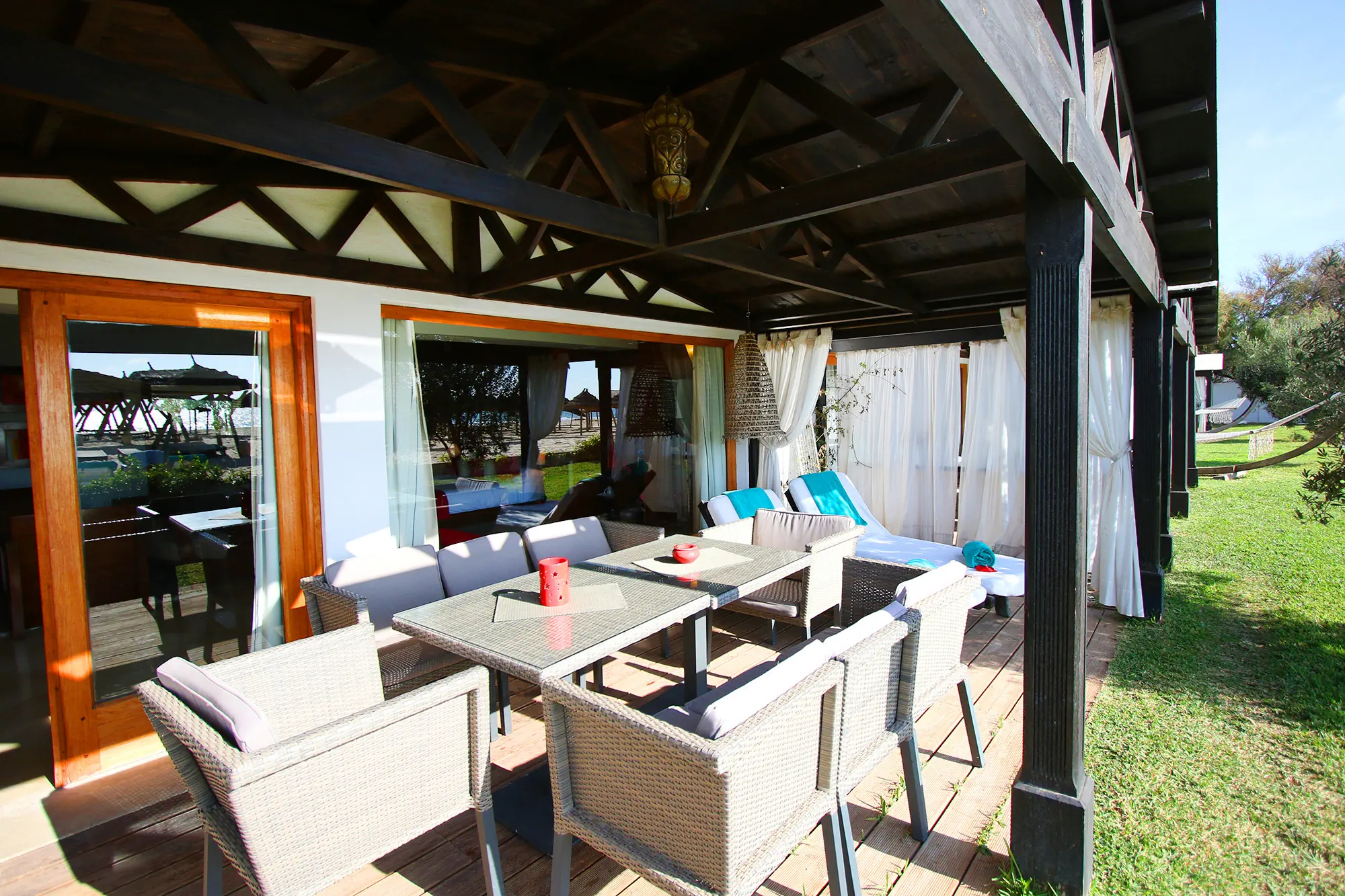 Prywatna, Piaszczysta, Piaszczyste zejście do morza, odleglość do plaży: 0 m, długość plaży: 200 m, Parasole - bezpłatnie, Leżaki - bezpłatnie, Ręczniki - bezpłatnie, Beach Bar - bezpłatnie, Prysznic