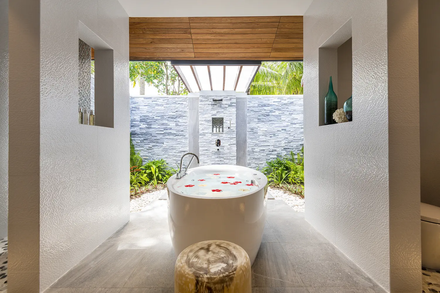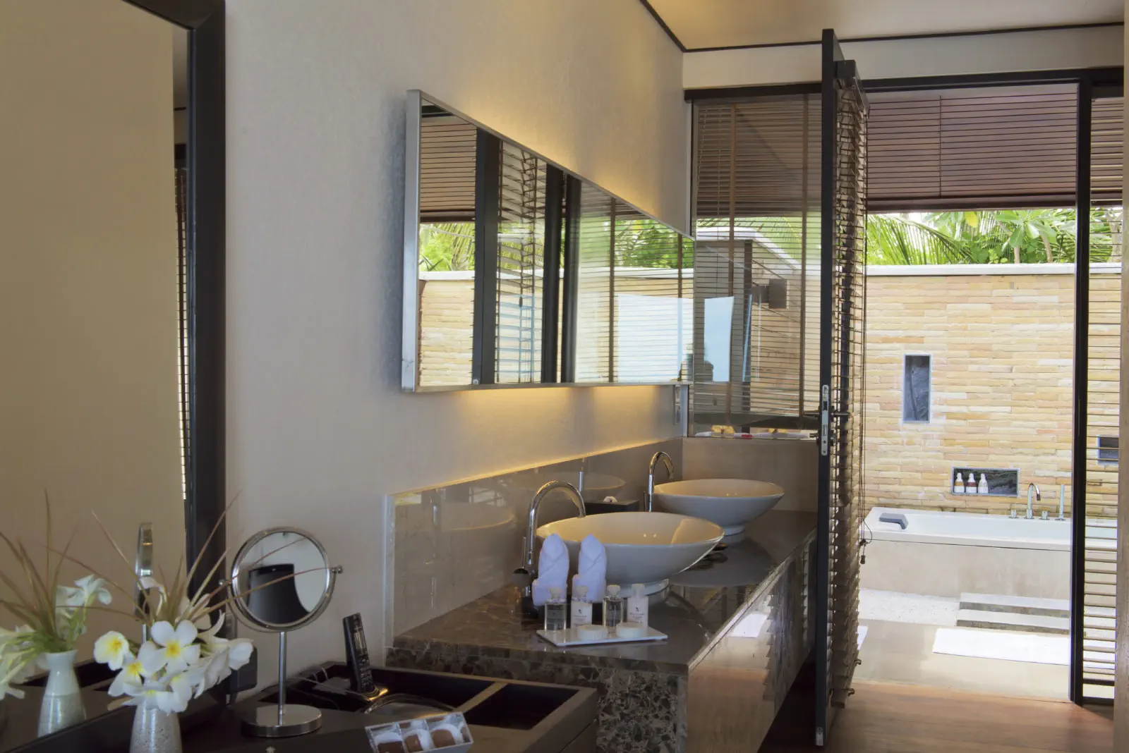 Dla max. 4 osób, Przestrzeń zewnętrzna: Taras, Kanały telewizji: Angielski, Telefon w pokoju, jacuzzi, Powierzchnia pokoju: ok. 76 m2, Dostawka: łóżko rozkładane, Rodzaj podłogi: drewno, Sprzątanie codziennie, 1 sypialnia, Maksymalna liczba osób dorosłych: 3, Maksymalna liczba dzieci: 2, Kwiaty i owoce, Prysznic na świeżym powietrzu, Frontalny widok na plażę, Bezpośredni dostęp do plaży, Prywatny basen, Liczba łazienek: 1, Liczba toalet: 1, Zestaw do parzenia kawy i herbaty, Klimatyzacja: Klimatyzacja indywidualna