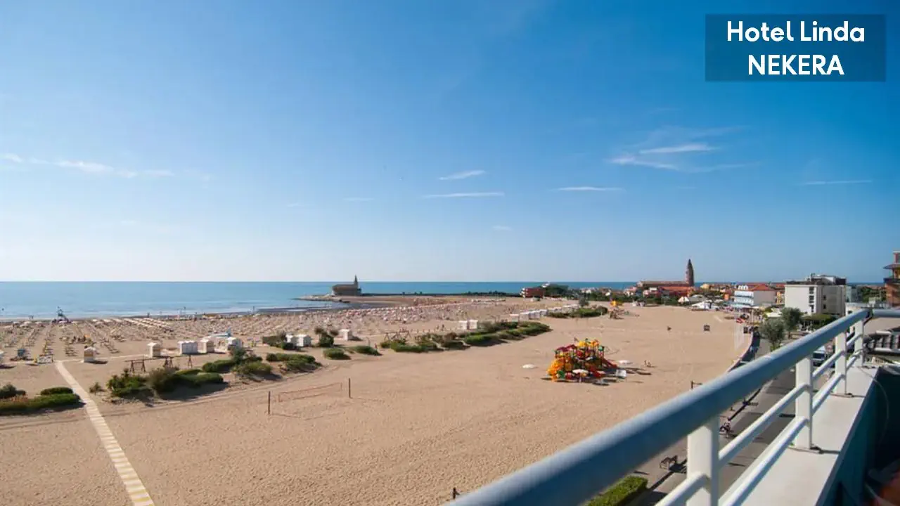 hotel położony bezpośrednio przy piaszczystej plaży (leżaki i parasole w cenie 20.05 - 20.09). Do centrum Caorle ok. 50 m.