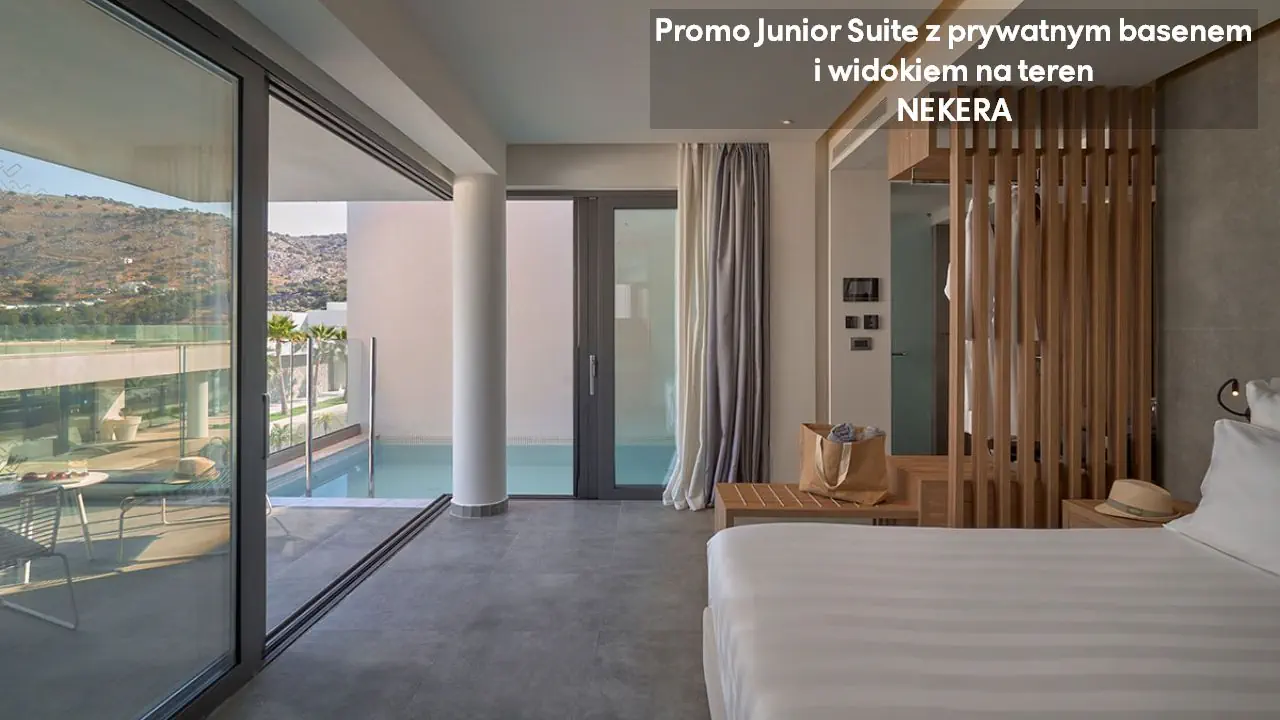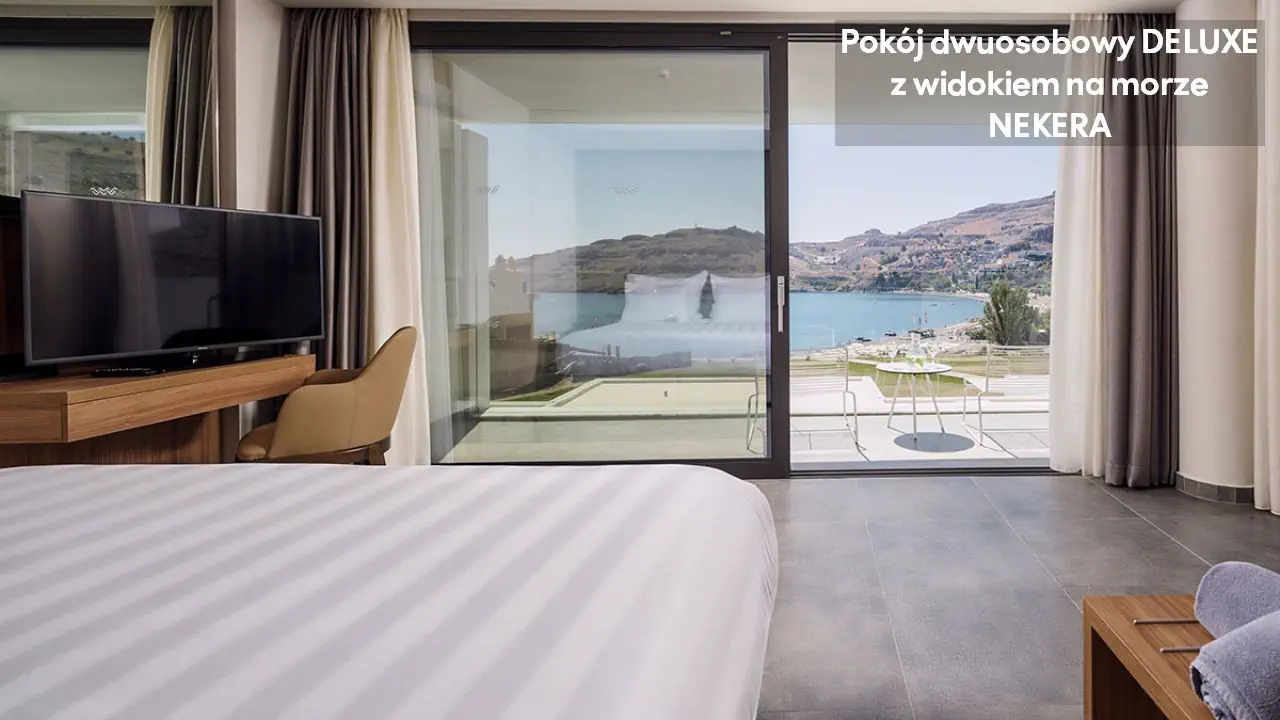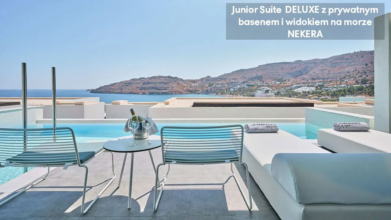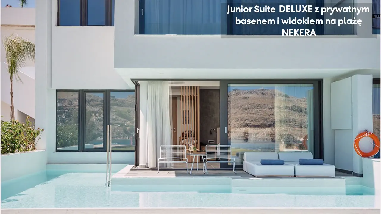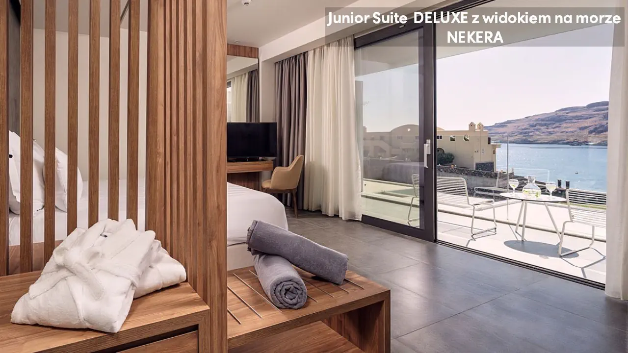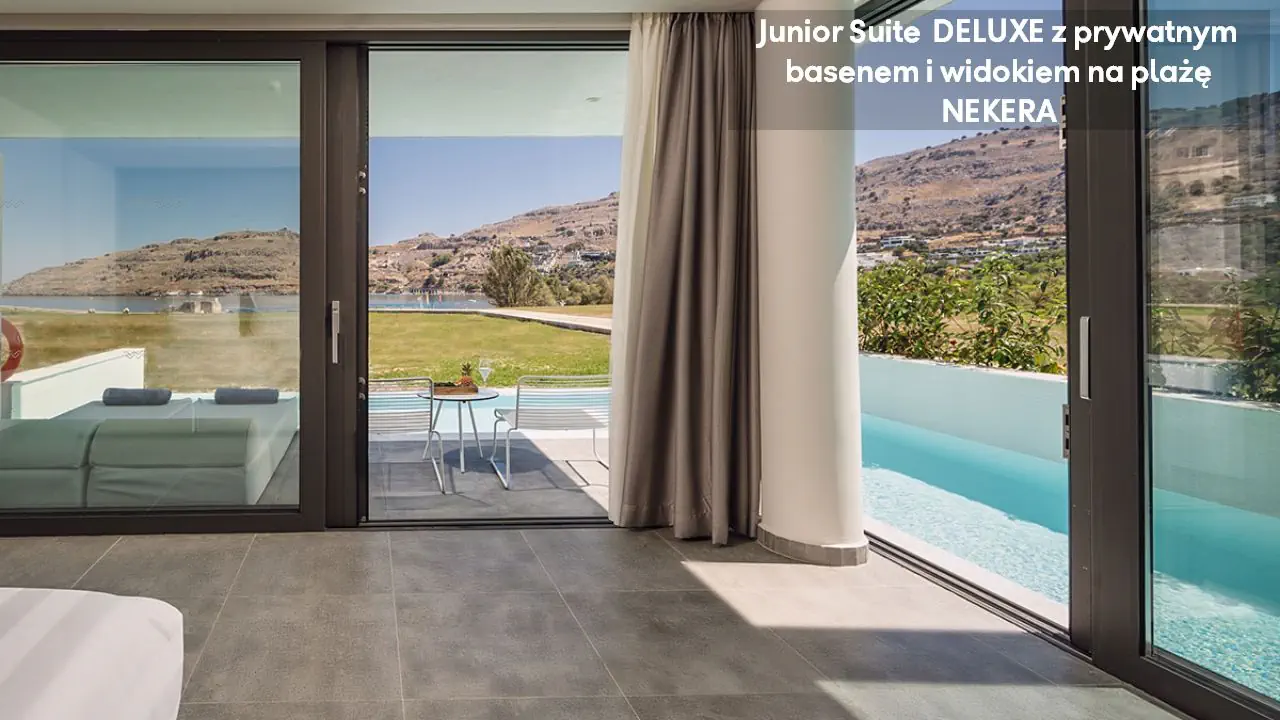 Pokój dwuosobowy Deluxe - powierzchnia 35 m² - max 2-os. - łóżko podwójne lub dwa pojedyncze - klimatyzacja - bezpłatne Wi-Fi - telewizor z płaskim ekranem - telefon - mini bar (płatny) - zestaw do parzenia kawy/herbaty - ekspres do kawy - sejf - łazienka z prysznicem - suszarka do włosów - zestaw mini kosmetyków - kapcie, szlafrok - balkon lub taras z widokiem na ogród lub morze (za dodatkową opłatą) Pokój dwuosobowy Deluxe z prywatnym basenem - powierzchnia 35 m² - max 2-os. - łóżko podwójne lub dwa pojedyncze - klimatyzacja - bezpłatne Wi-Fi - telewizor z płaskim ekranem - telefon - mini bar (płatny) - zestaw do parzenia kawy/herbaty - ekspres do kawy - sejf - łazienka z prysznicem - suszarka do włosów - zestaw mini kosmetyków - kapcie, szlafrok - taras z dostępem do prywatnego basenu widokiem na ogród lub morze (za dodatkową opłatą) Junior Suite Deluxe z widokiem na morze - powierzchnia 45 m² - max 3-os. - łóżko podwójne lub dwa pojedyncze - sofa - klimatyzacja - bezpłatne Wi-Fi - telewizor z płaskim ekranem - telefon - mini bar (płatny) - zestaw do parzenia kawy/herbaty - ekspres do kawy - sejf - łazienka z prysznicem - suszarka do włosów - zestaw mini kosmetyków - kapcie, szlafrok - balkon lub taras Junior Suite Deluxe z prywatnym basenem - powierzchnia 45 m² - max 3-os. - łóżko podwójne lub dwa pojedyncze - sofa - klimatyzacja - bezpłatne Wi-Fi - telewizor z płaskim ekranem - telefon - mini bar (płatny) - zestaw do parzenia kawy/herbaty - ekspres do kawy - sejf - łazienka z prysznicem - suszarka do włosów - zestaw mini kosmetyków - kapcie, szlafrok - taras z dostępem do prywatnego basenu i widokiem na ogród lub plażę (za dodatkową opłatą)