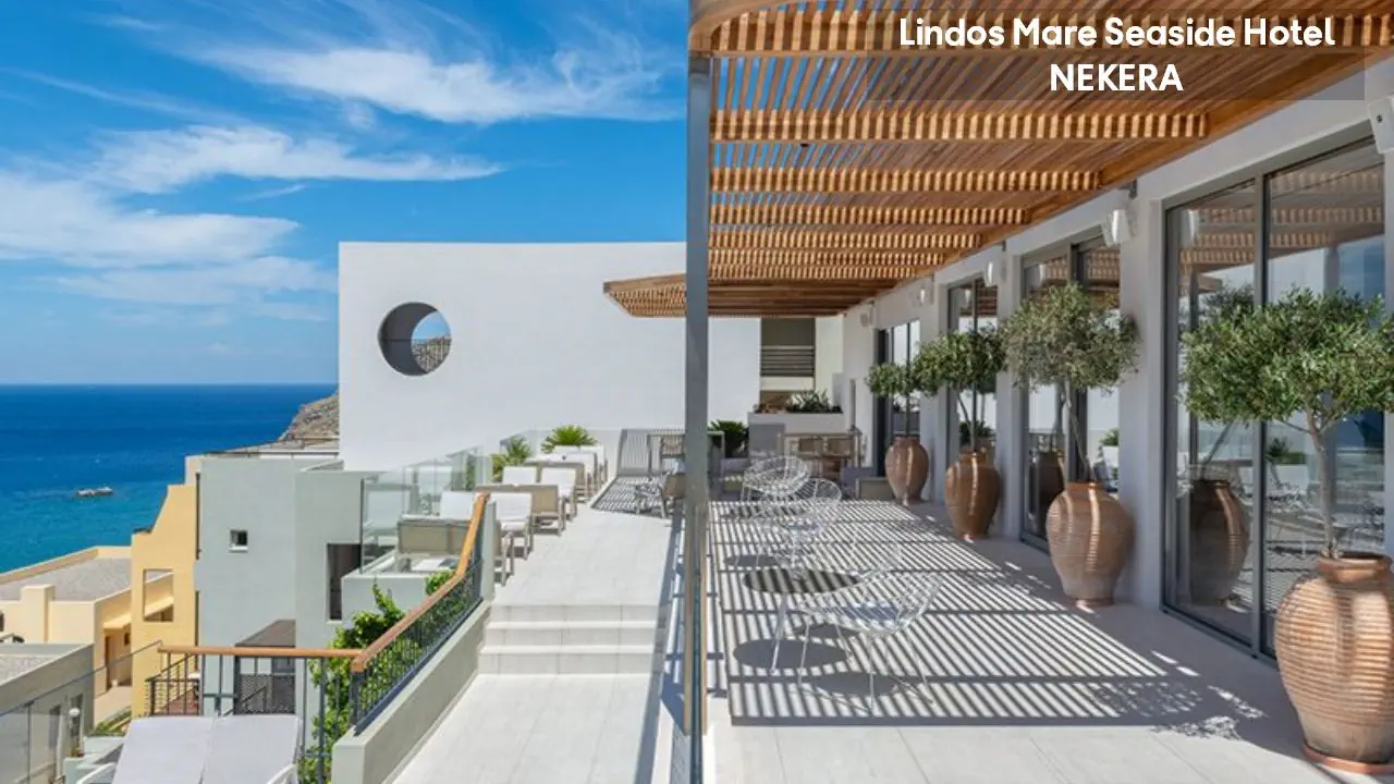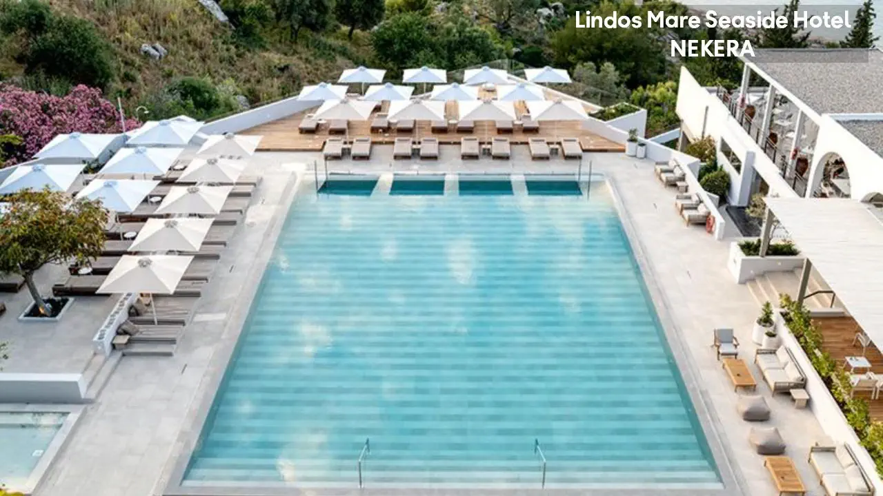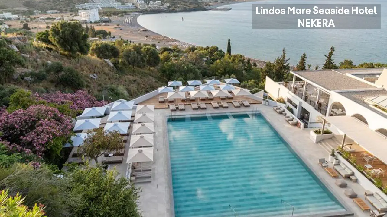 Lindos Mare, Seaside Hotel to luksusowy pięciogwiazdkowy obiekt z widokiem na Morze Egejskie, położony w pobliżu urokliwego Lindos na Rodos. Oferuje eleganckie pokoje, baseny, spa oraz restauracje serwujące dania kuchni greckiej i międzynarodowej. Dzięki bezpośredniemu dostępowi do plaży i spokojnej atmosferze jest idealnym miejscem na relaksujące wakacje zarówno dla par, jak i rodzin.