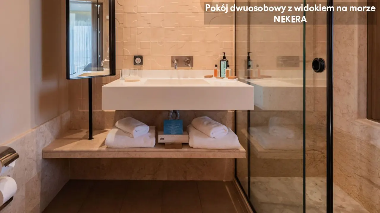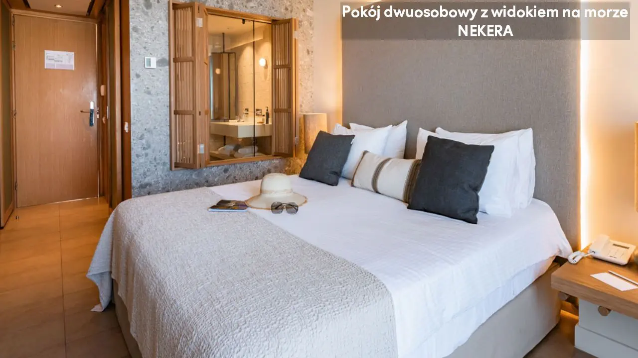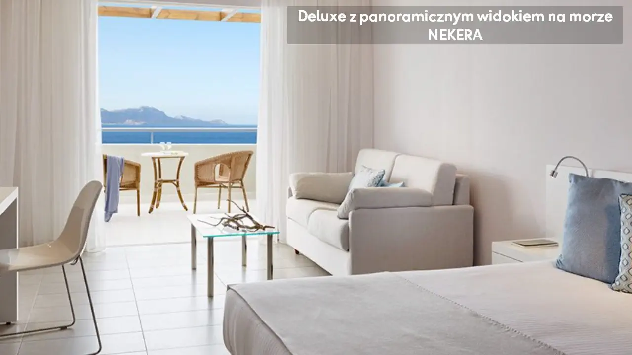 Pokój dwuosobowy - powierzchnia ok. 27 m² - max 2-os. - łóżko podwójne lub dwa pojedyncze - klimatyzacja - bezpłatne Wi-Fi - telewizor z płaskim ekranem - telefon - mini lodówka - zestaw do parzenia kawy/herbaty - ekspres do kawy (uzupełniany codziennie) - sejf - łazienka z prysznicem - suszarka do włosów - zestaw mini kosmetyków - kapcie, szlafrok - balkon lub taras z widokiem na ogród lub morze (za dodatkową opłatą) Pokój dwuosobowy Superior - powierzchnia ok. 30 m² - max 2-os. - łóżko podwójne lub dwa pojedyncze - klimatyzacja - bezpłatne Wi-Fi - telewizor z płaskim ekranem - telefon - mini lodówka - zestaw do parzenia kawy/herbaty - ekspres do kawy (uzupełniany codziennie) - sejf - łazienka z prysznicem - suszarka do włosów - zestaw mini kosmetyków - kapcie, szlafrok - balkon lub taras z widokiem morze Junior Suite z widokiem na morze - powierzchnia ok. 34 m² - max 4-os. - łóżko podwójne lub dwa pojedyncze - 2 sofy lub podwójna sofa - klimatyzacja - bezpłatne Wi-Fi - telewizor z płaskim ekranem - telefon - mini lodówka - zestaw do parzenia kawy/herbaty - ekspres do kawy (uzupełniany codziennie) - sejf - łazienka z prysznicem - suszarka do włosów - zestaw mini kosmetyków - kapcie, szlafrok - balkon lub taras z widokiem morze