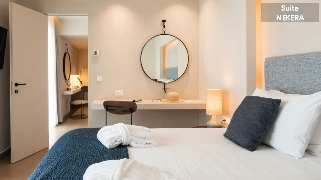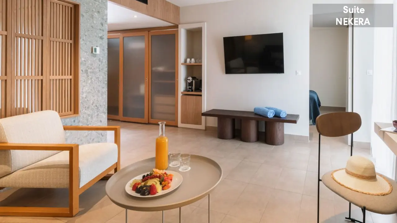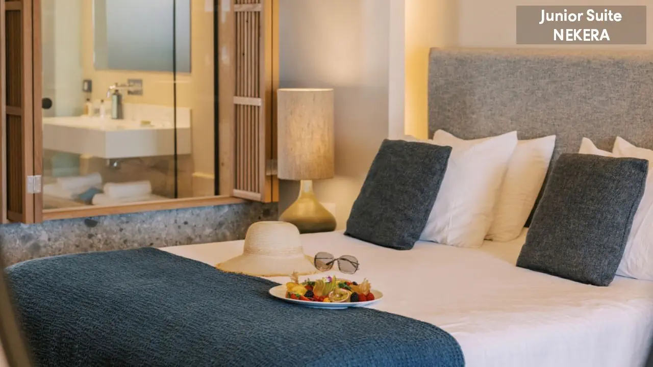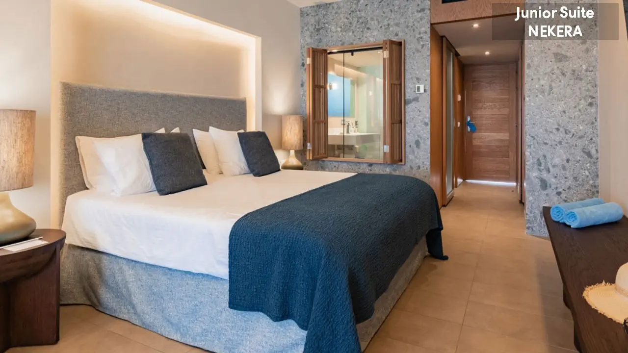 Pokój dwuosobowy - powierzchnia ok. 27 m² - max 2-os. - łóżko podwójne lub dwa pojedyncze - klimatyzacja - bezpłatne Wi-Fi - telewizor z płaskim ekranem - telefon - mini lodówka - zestaw do parzenia kawy/herbaty - ekspres do kawy (uzupełniany codziennie) - sejf - łazienka z prysznicem - suszarka do włosów - zestaw mini kosmetyków - kapcie, szlafrok - balkon lub taras z widokiem na ogród lub morze (za dodatkową opłatą) Pokój dwuosobowy Superior - powierzchnia ok. 30 m² - max 2-os. - łóżko podwójne lub dwa pojedyncze - klimatyzacja - bezpłatne Wi-Fi - telewizor z płaskim ekranem - telefon - mini lodówka - zestaw do parzenia kawy/herbaty - ekspres do kawy (uzupełniany codziennie) - sejf - łazienka z prysznicem - suszarka do włosów - zestaw mini kosmetyków - kapcie, szlafrok - balkon lub taras z widokiem morze Junior Suite z widokiem na morze - powierzchnia ok. 34 m² - max 4-os. - łóżko podwójne lub dwa pojedyncze - 2 sofy lub podwójna sofa - klimatyzacja - bezpłatne Wi-Fi - telewizor z płaskim ekranem - telefon - mini lodówka - zestaw do parzenia kawy/herbaty - ekspres do kawy (uzupełniany codziennie) - sejf - łazienka z prysznicem - suszarka do włosów - zestaw mini kosmetyków - kapcie, szlafrok - balkon lub taras z widokiem morze