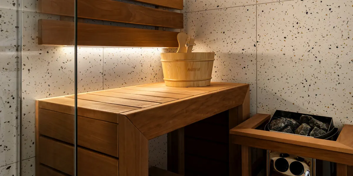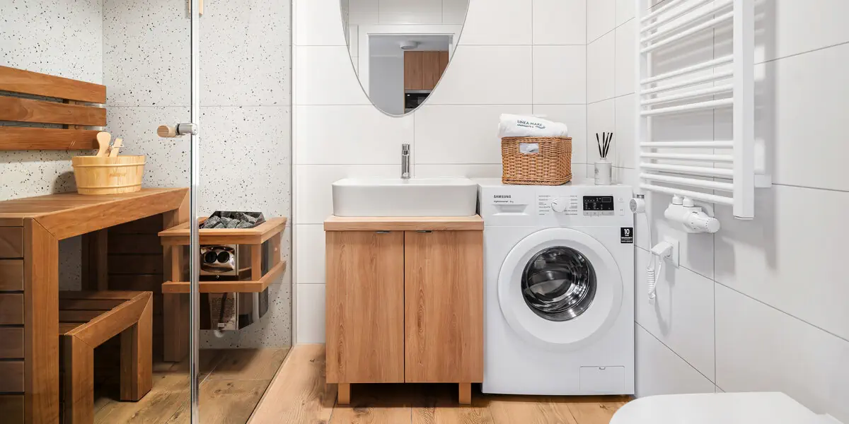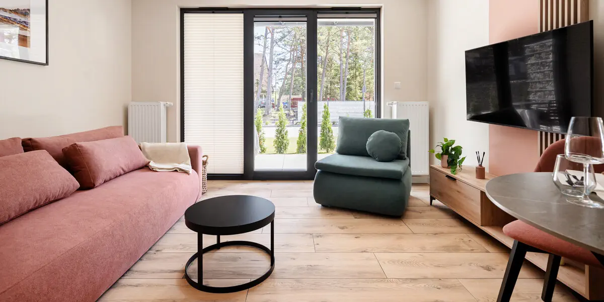 Apartament z balkonem lub tarasem, prywatną sauną, osobną sypialnią, salonem z aneksem kuchennym i łazienką