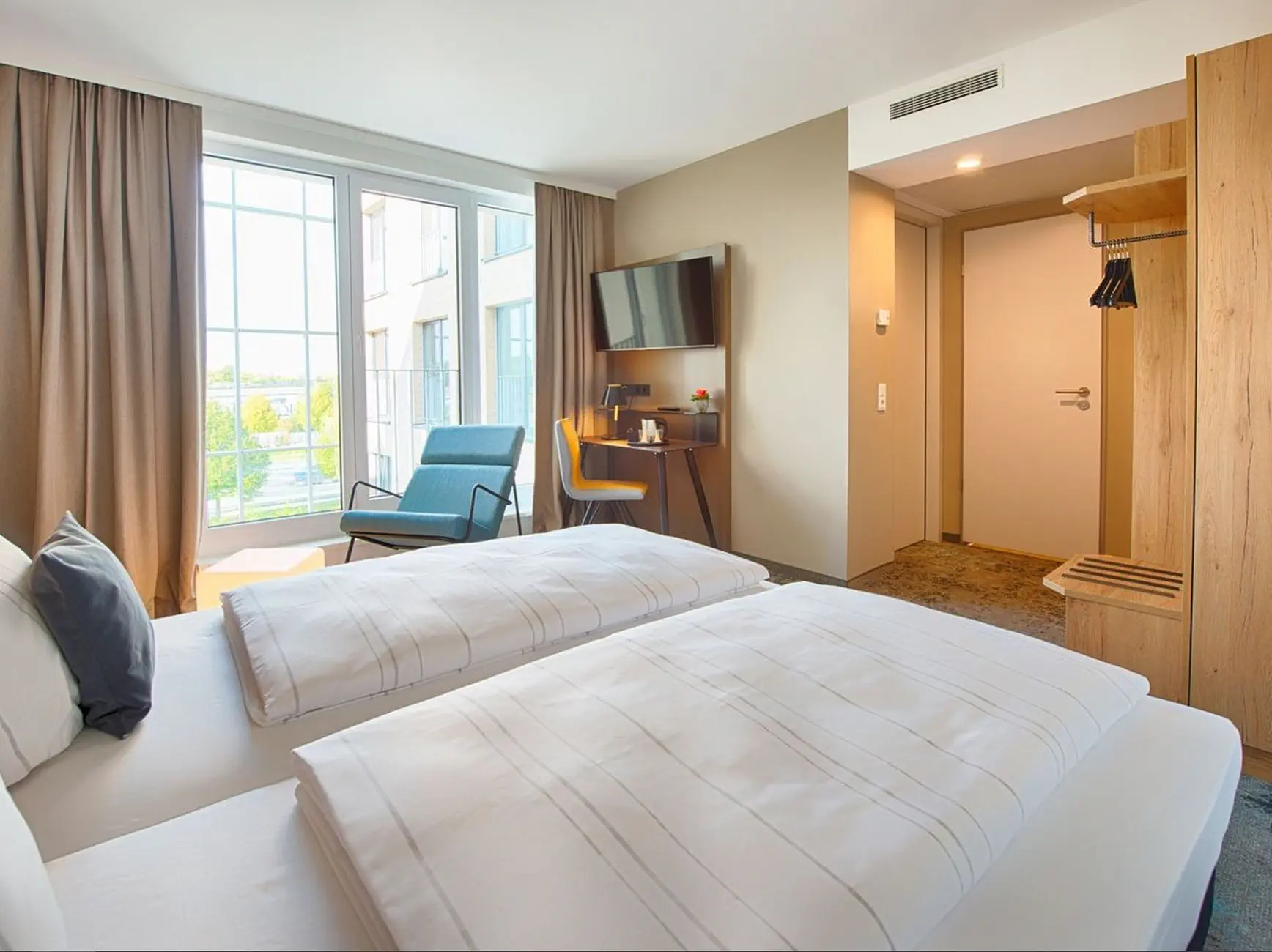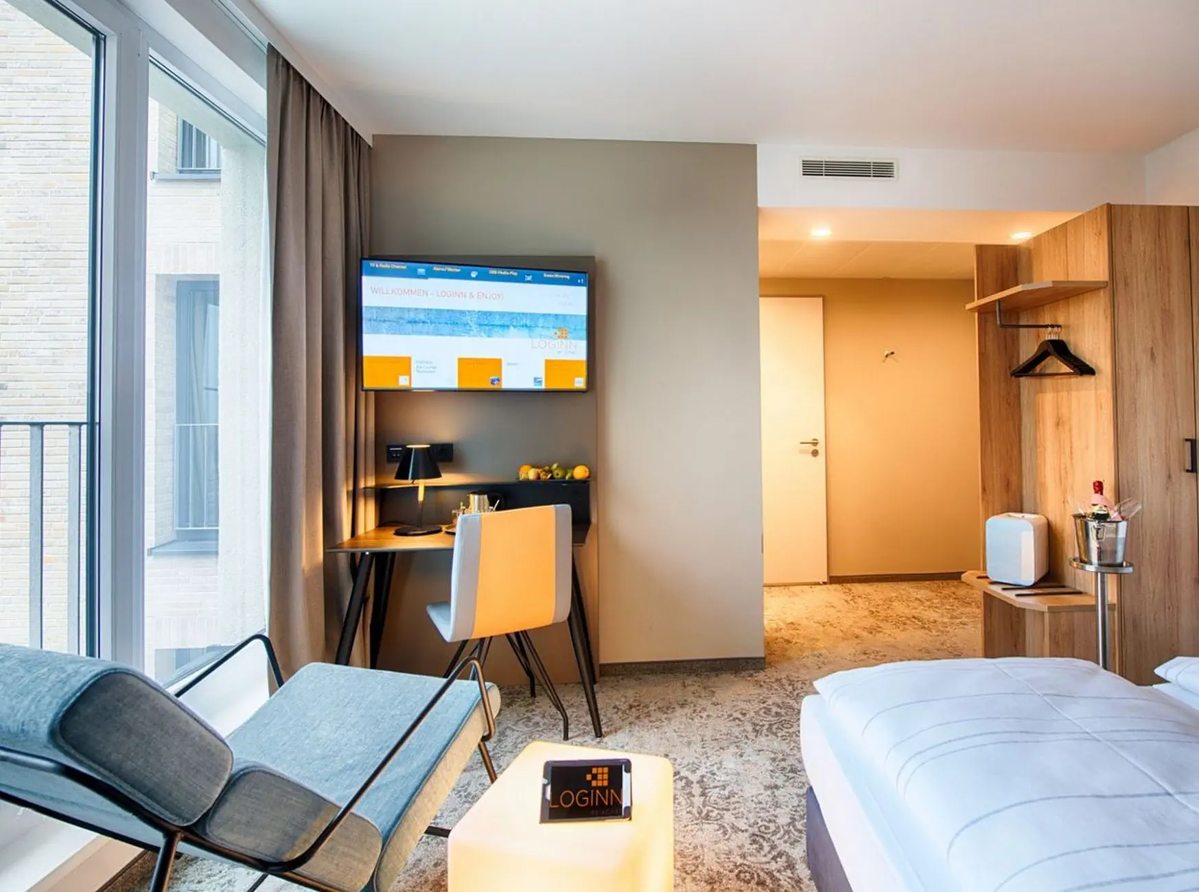 w pobliżu hal targowych i centrum kongresowego. Otwarty w 2017 obiekt o nowoczesnym wyglądzie to pierwszy hotel sieci LOGGIN by Achat zlokalizowany w Lipsku.