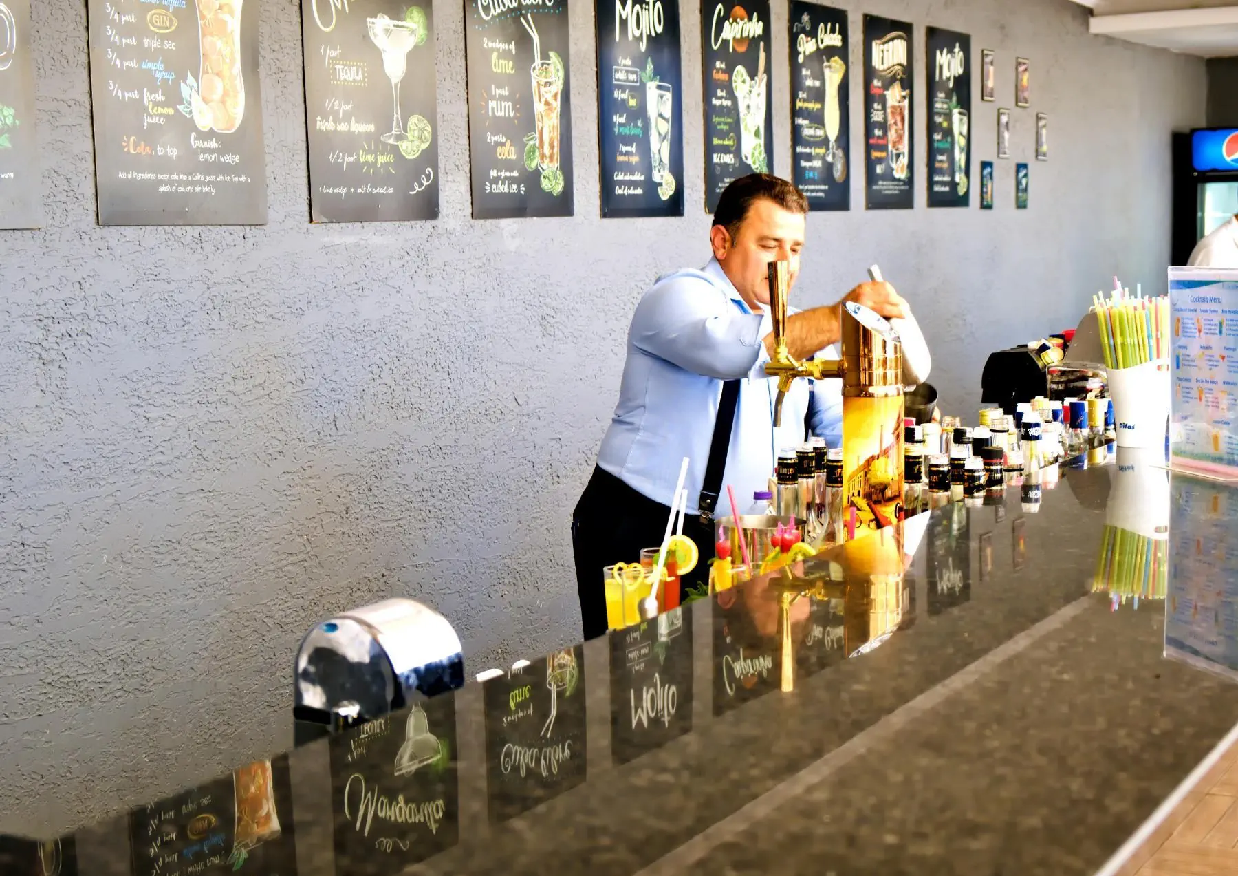 Śniadanie (07:00 - 10:00) - Miletos Restaurant , stół szwedzki, Późne śniadanie (10:00 - 11:00) - Miletos Restaurant , stół szwedzki, Obiad (12:30 - 14:30) - Miletos Restaurant , stół szwedzki, Przekąski (12:30 - 17:00) - Snack Bar, określone menu, Podwieczorek (10:30 - 17:30) - Puding Patisserie, określone menu, Kolacja (18:30 - 21:00) - Miletos Restaurant , stół szwedzki, Późna kolacja (23:00 - 00:00) - Miletos Restaurant , określone menu, Agora Restaurant (19:00 - 21:30) (19:00 - 21:30), raz podczas pobytu, Kuchnia: lokalna, Wymagana rezerwacja: Tak ¹⁾, Poseidon Restaurant (19:00 - 21:30) (19:00 - 21:30), raz podczas pobytu, Kuchnia: owoce morza , Wymagana rezerwacja: Tak ¹⁾, Lobby Bar (10:00 - 00:00), Napoje: alkohole lokalne, wybrane alkohole importowane, napoje bezalkoholowe (10:00 - 00:00), Lobby Bar (00:00 - 10:00), Napoje: napoje bezalkoholowe (00:00 - 10:00), Pool Bar (10:00 - 00:00), Napoje: alkohole lokalne, napoje bezalkoholowe (10:00 - 00:00), Lounge Bar (10:00 - 00:00), Napoje: alkohole lokalne, wybrane alkohole importowane, napoje bezalkoholowe (10:00 - 00:00), Aqua Amfi Bar (10:00 - 18:00), Napoje: alkohole lokalne, napoje bezalkoholowe (10:00 - 18:00), Aqua Amfi Bar (20:00 - 02:00), Napoje: alkohole lokalne, wybrane alkohole importowane, napoje bezalkoholowe (20:00 - 02:00), Puding Patisserie (12:00 - 17:30), Napoje: napoje bezalkoholowe (12:00 - 17:30), Infinity Bar (10:00 - 17:30), Napoje: alkohole lokalne, wybrane alkohole importowane, napoje bezalkoholowe (10:00 - 17:30), napoje bezalkoholowe, alkohole lokalne, wybrane alkohole importowane, lody, pakiety dla nowożeńców, pakiety urodzinowe (na życzenie) ¹⁾, cukiernia, room service ¹⁾, Minibar w pokoju ¹⁾ - dodatkowo płatne