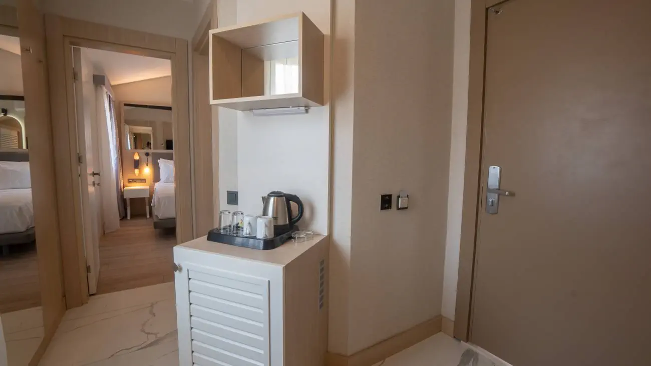 Dla max. 5 osób, Przestrzeń zewnętrzna: Balkon, Kanały telewizji: Angielski, Telefon w pokoju, prysznic, Powierzchnia pokoju: ok. 32 m2, Dostawka: sofa, Rodzaj podłogi: laminat, Sprzątanie codziennie, 2 sypialnie, Drzwi łączące między pokojami, Maksymalna liczba osób dorosłych: 4, Maksymalna liczba dzieci: 3, Widok na ogród, Liczba łazienek: 1, Liczba toalet: 1, Zestaw do parzenia kawy i herbaty, Klimatyzacja: Klimatyzacja indywidualna