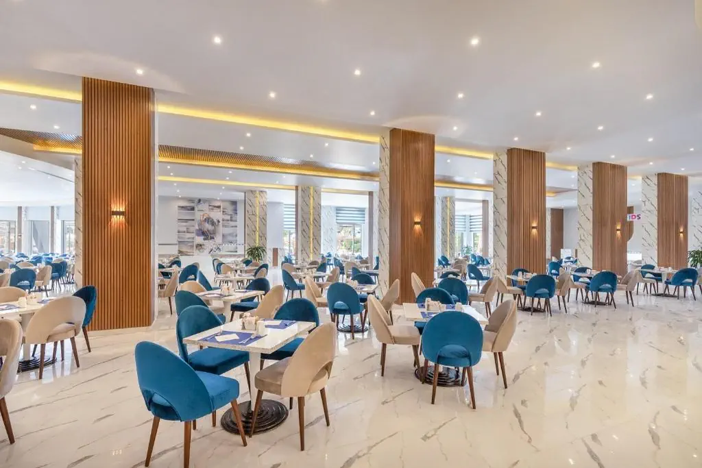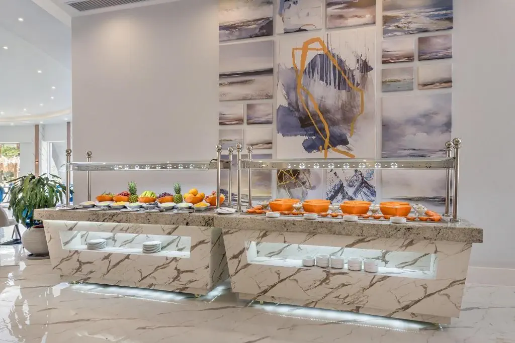 Śniadanie (07:00 - 10:30) - Al Dente Restaurant, stół szwedzki, Śniadanie (07:00 - 10:30) - Lotus Restaurant, stół szwedzki, Obiad (12:30 - 15:00) - Al Dente Restaurant, stół szwedzki, Obiad (12:30 - 15:00) - Lotus Restaurant, stół szwedzki, Przekąski (12:00 - 16:00) - Beach Bar, określone menu, Przekąski (12:00 - 16:00) - Pool Bar, określone menu, Kolacja (18:30 - 22:00) - Al Dente Restaurant, stół szwedzki, Kolacja (18:30 - 22:00) - Lotus Restaurant, stół szwedzki, Kolacja (18:30 - 21:00) - Podium Restaurant, a la carte, Kolacja (18:30 - 21:00) - Zeta’s a la Carte Restaurant, a la carte, Kolacja (18:30 - 21:00) - Aika Dolli a la Carte Restaurant , a la carte, Kolacja (18:30 - 21:00) - Happy Buddha a la Carte Restaurant, a la carte, Kolacja (18:30 - 21:00) - La Casina Restaurant, a la carte, Późna kolacja (23:00 - 01:00) - Al Dente Restaurant, stół szwedzki, Podium Restaurant (18:30 - 20:30) (18:30 - 20:30), raz w tygodniu, Kuchnia: międzynarodowa, Wymagana rezerwacja: Tak, Aqua Bar (24h), Napoje: alkohole lokalne (24h), Vienna Bar (10:00 - 19:00), Napoje: alkohole lokalne (10:00 - 19:00), Pool Bar (10:00 - 18:00), Napoje: alkohole lokalne (10:00 - 18:00), Family Pool Bar (10:00 - 18:00), Napoje: alkohole lokalne (10:00 - 18:00), Sum Up Bar (10:00 - 18:00), Napoje: alkohole lokalne (10:00 - 18:00), napoje bezalkoholowe, alkohole lokalne, wybrane alkohole importowane ¹⁾, lody, pakiety dla nowożeńców ¹⁾, pakiety urodzinowe (na życzenie), cukiernia, room service ¹⁾ ¹⁾ - dodatkowo płatne