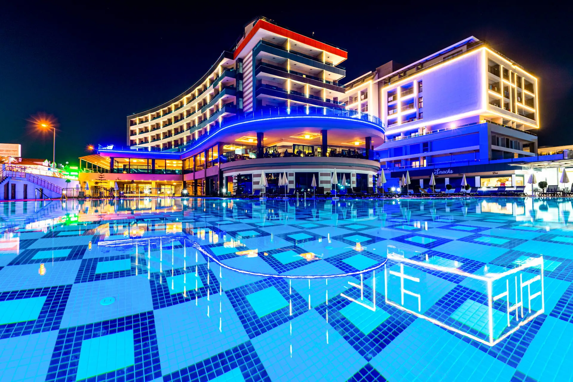 Położenie Do lotniska w Antalyi jest około 100 km. Do najbliższych sklepów dojdziesz spacerem w 5 minut. Do Alanyi jest około 20 km. Obiekt położony jest przy zatoczce Fuğla, bezpośrednio przy piaszczystej plaży. Plaża Prywatna, piaszczysta plaża z łagodnym zejściem do morza. Ręczniki plażowe, parasole oraz leżaki dostępne bezpłatnie.Cabany w ogrodzie przy plaży dodatkowo płatne. Do dyspozycji gości Całodobowa recepcja, lobby bar czynny 24h. Basen główny zewnętrzny, basen wewnętrzny, brodzik dla dzieci, 2 jacuzzi, aquapark z atrakcjami wodnymi. Atrakcje dla dzieci: brodzik dla dzieci, aquapark z atrakcjami wodnymi. Restauracje: restauracja główna serwująca posiłki w formie bufetu, restauracja rybna a la carte (płatna), 4 bary, w tym lobby bar czynny 24h. Pozostałe informacje: pralnia (płatna). Wyżywienie Rodzaje wyżywienia i posiłki: Ultra All Inclusive: Śniadanie: 07:00 - 10:30. Lunch: 12:30 - 14:30. Obiadokolacja: 18:30 - 21:00, w formie bogatego bufetu. Tradycyjny turecki przysmak gözleme: 10:30 - 16:00. Przekąski: 10:30 - 16:00. Słodkości: 10:00 - 18:00. Nocny bufet: 00:00 - 07:00. Bary: Lokalne alkohole i część alkoholi importowanych oraz napoje bezalkoholowe dostępne w wyznaczonych barach na terenie hotelu w godzinach 10:00 - 01:00. Pozostałe informacje: Płatne dodatkowo: pozostałe napoje importowane. Program sportowy i animacyjny Dla każdego: wodny aerobik, water polo, boccia, rzutki, koszykówka, tenis ziemny, sauna, łaźnia parowa, wieczorne show, możliwość korzystania z Aquaparku oraz pozostałych atrakcji na terenie kompleksu Lonicery World Resort and Spa. Tylko dla dorosłych: siłownia (dla osób pow.16 roku życia). Dla dzieci: 6 x w tygodniu figloklub z polskim animatorem (od połowy czerwca do połowy września). Za dodatkową opłatą: podświetlenie kortu tenisowego, masaże, zabiegi kosmetyczne, sporty wodne. Internet Bezpłatny Internet Wi-Fi na terenie całego hotelu oraz na plaży. Kategoria lokalna ***** Naszym zdaniem Nowo otwarty hotel o wysokim standardzie oferuje eleganckie pokoje i doskonały serwis, zapewniając komfortowy pobyt. Położony bezpośrednio przy plaży, jest idealnym miejscem dla miłośników morskich krajobrazów. Dzięki dostępowi do różnorodnych rozrywek w sąsiednim kompleksie Lonicara World Resort and SPA, Goście mogą korzystać z bogatej oferty animacji i relaksu. To świetny wybór dla osób szukających zarówno leniwego wypoczynku, jak i codziennych atrakcji, gwarantujący udane wakacje. Strona www www.lonicera.com.tr