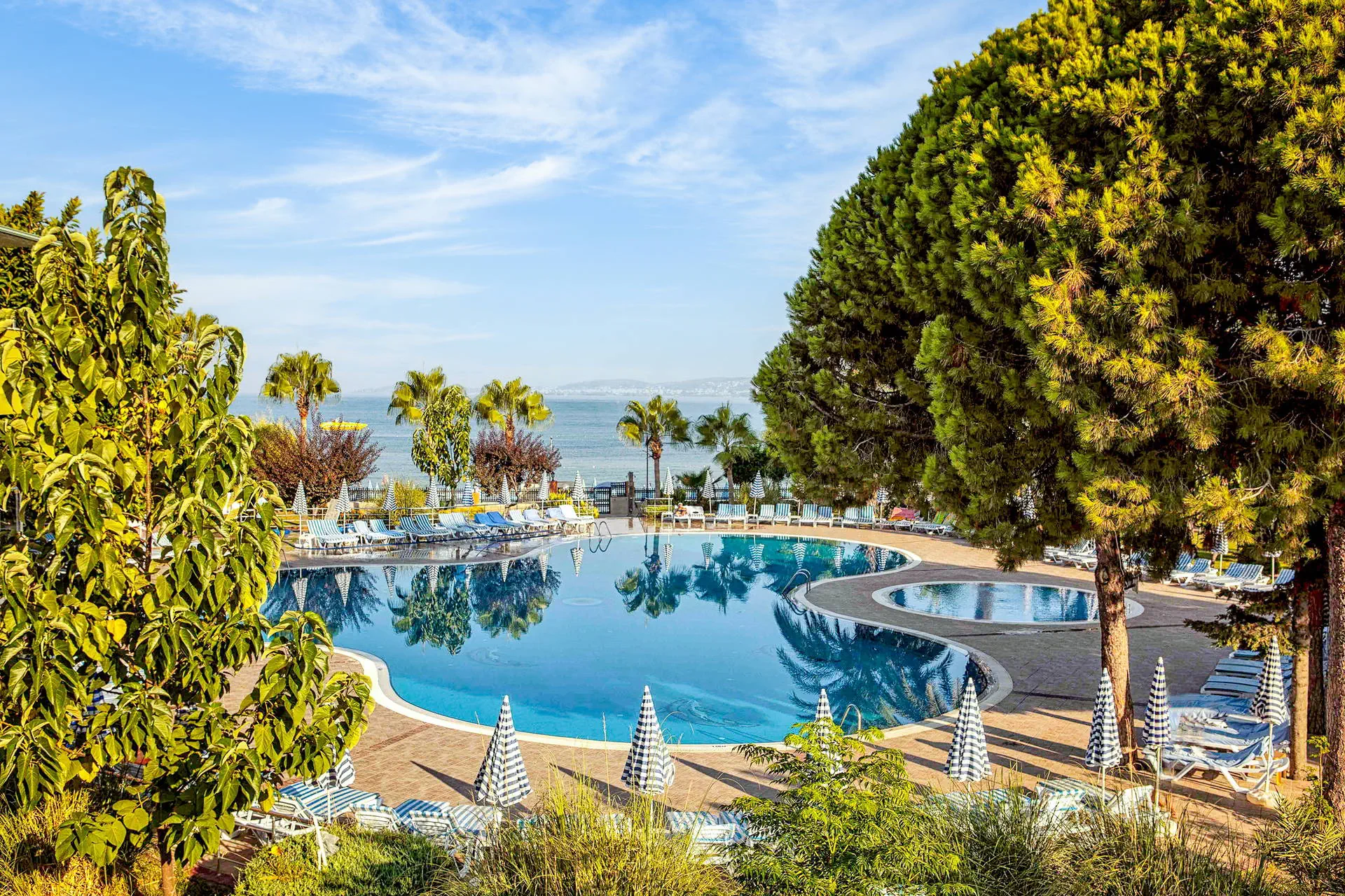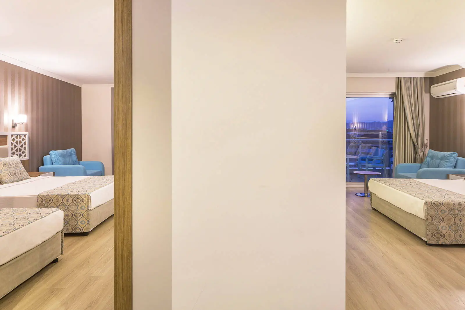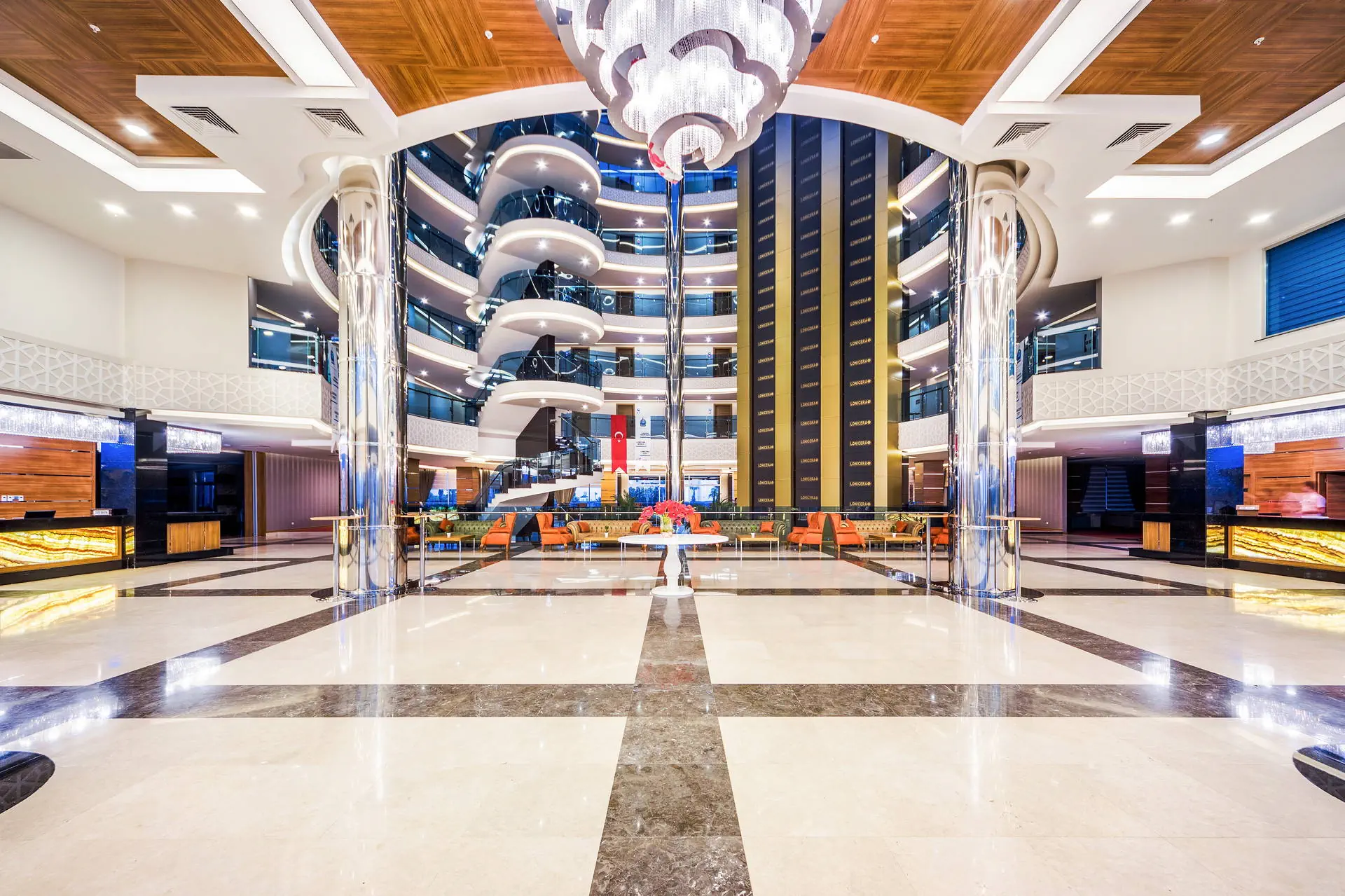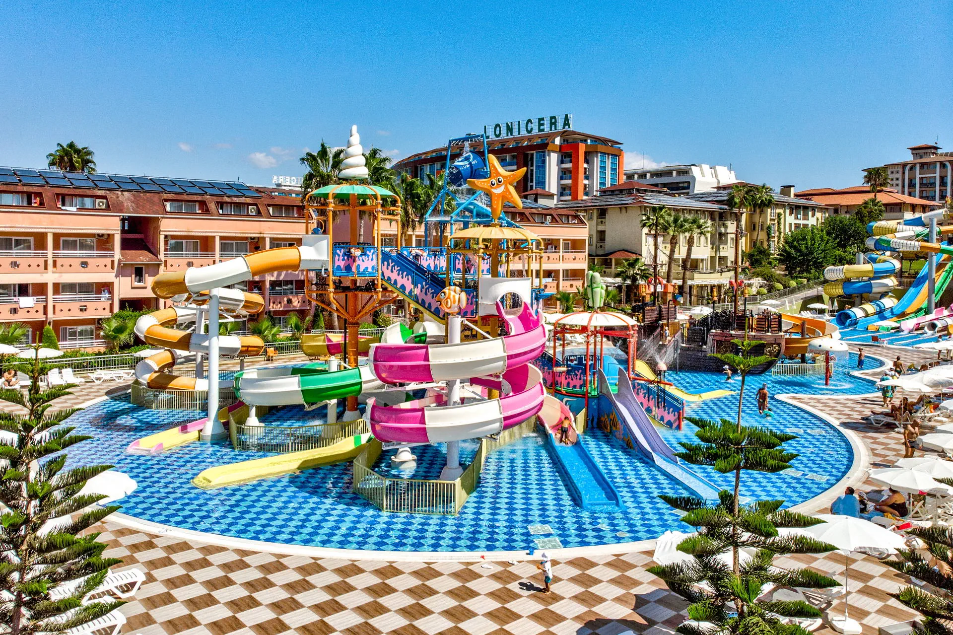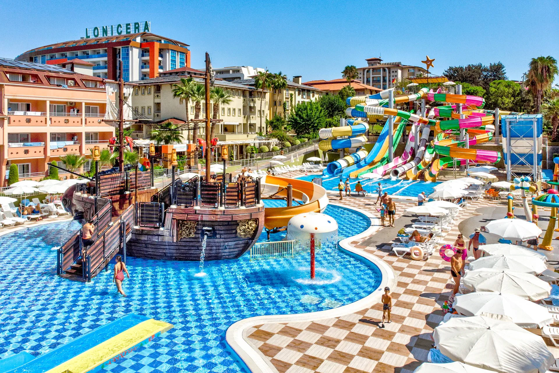 Położenie Hotel położony jest w Turkler, na zadbanym terenie. Do lotniska w Antalyi jest około 100 km. W pobliżu znajduje się centrum handlowe, kilka barów, sklepów i restauracji. Odległość do Alanyi wynosi około 20 km. Obiekt składa się z części Lonicera World i Lonicera Resort & SPA. Plaża Plaża bezpośrednio przy hotelu. Plaża piaszczysta. Leżaki, parasole, ręczniki kąpielowe dostępne bezpłatnie. Do dyspozycji gości Hotel składa się z 1 budynku głównego. Recepcja 24h, lobby, windy. 7 basenów, w tym 2 ze zjeżdżalniami czynnymi w określonych godzinach, Aquapark z 19 zjeżdżalniami, 8 brodzików, basen kryty (obecnie nieczynny - otwarty w kwietniu i w październiku), jacuzzi. Atrakcje dla dorosłych: dyskoteka. Restauracje: 2 restauracje główne, restauracje a’la carte: rybna, turecka (czynne od połowy maja do października, płatne), 11 barów: przy basenach, fast food bary, w lobby, w dyskotece. Pozostałe informacje: Goście mogą bez przeszkód przemieszczać się między budynkami hoteli: Lonicera Resort and Spa i Lonicera World i korzystać z dowolnych atrakcji na terenie całego kompleksu (z wyłączeniem restauracji głównych). Wyżywienie Rodzaje wyżywienia i posiłki: All Inclusive: Śniadanie: 07:00 - 10:30. Lunch: 12:30 - 14:30. Obiadokolacja: 19:00 - 21:00, w formie bogatego bufetu w restauracji głównej w części Lonicera Resort. Przekąski: placki gozleme (10:30 - 16:00), fast food (10:30 - 16:30), bar z owocami (10:30 - 16:30), kącik ze słodyczami i lodami (10:30 - 16:30). Podwieczorek. Nocna przekąska: 24:00 - 07:00. Bary: Możliwość wyciskania soku z pomarańczy bezpłatnie. Napoje bezalkoholowe i lokalne alkohole: 10:00 - 02:30 (nie dotyczy świeżych soków serwowanych poza barem z owocami). Pozostałe informacje: Brak możliwości korzystania z restauracji głównej w części Lonicera World. Program sportowy i animacyjny Dla każdego: zabawy przy basenie, water polo, wieczorne show, muzyka na żywo, boisko do koszykówki, badminton, tenis stołowy. Tylko dla dorosłych: siłownia (dla osób pow.16 roku życia), dyskoteka (23:30-02:00, wejście płatne ok. 10 EUR, napoje bezalkoholowe bezpłatne do 01:00). Dla dzieci: plac zabaw, sala gier na świeżym powietrzu (bilard ok. 2 EUR/gra, flipery, mini karuzele, samochodziki - ok. 2-3 EUR/gra). Za dodatkową opłatą: oświetlenie kortów tenisowych (ok. 10 EUR/godz.), sauna, łaźnia turecka (zabiegi płatne dodatkowo), centrum SPA, sala gier na świeżym powietrzu. Internet Internet Wi-Fi na terenie hotelu i w pokojach dostępny bezpłatnie, kącik internetowy - płatny (ok. 3 EUR/godz.). Kategoria lokalna ***** Naszym zdaniem Hotel z klubową atmosferą i rozległym terenem oferuje wiele atrakcji, co czyni go idealnym miejscem na relaks. Położony przy piaszczystej plaży z łagodnym zejściem do morza, zapewnia wygodny dostęp do kąpieli. Doceniany przez klientów, jest szczególnie polecany rodzinom z dziećmi. To doskonały wybór dla osób ceniących zarówno zabawę, jak i spokojny wypoczynek. Hotel od wielu sezonów cieszy się uznaniem, co potwierdza jego popularność wśród Gości. Strona www www.lonicera.com.tr