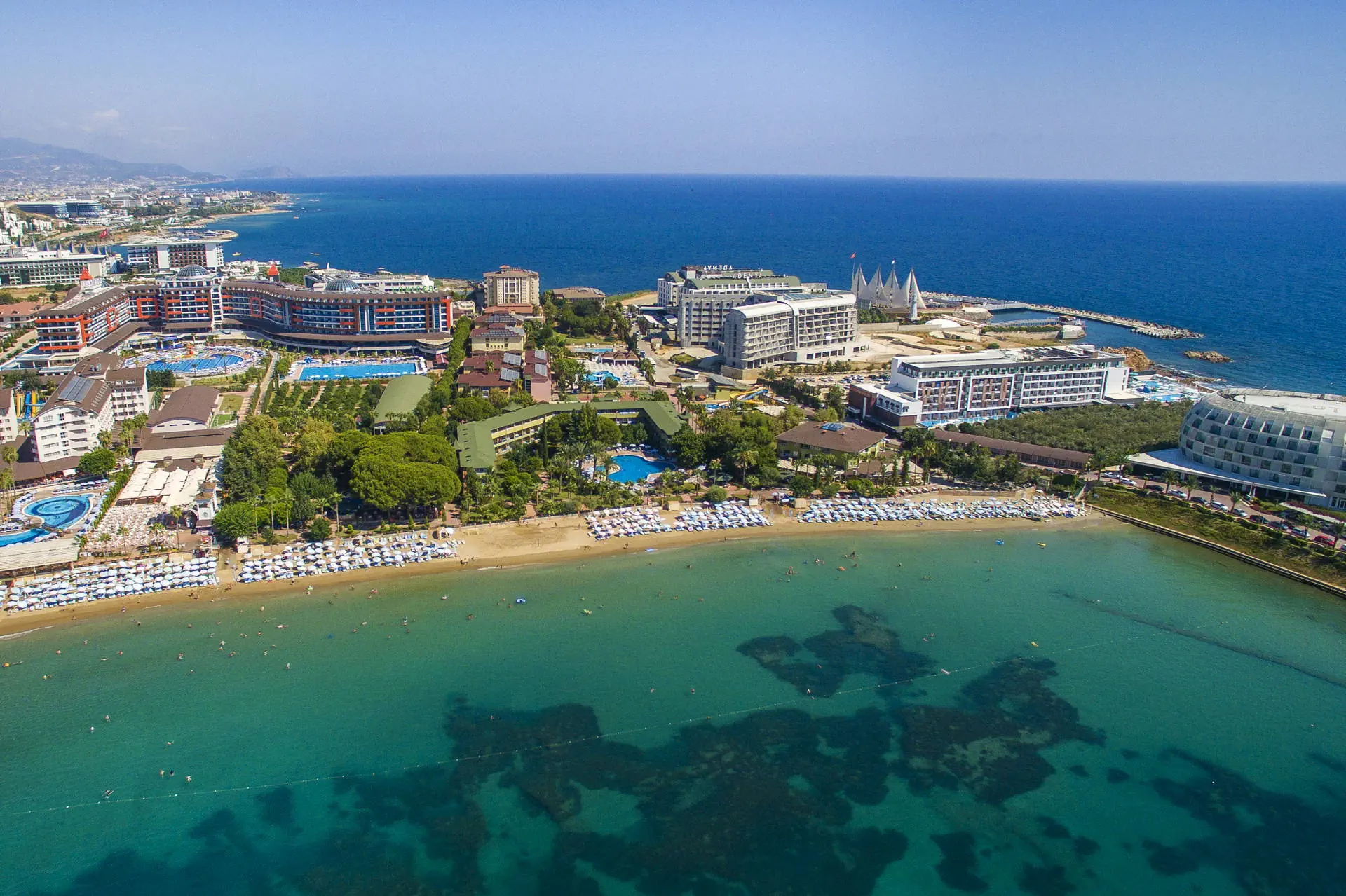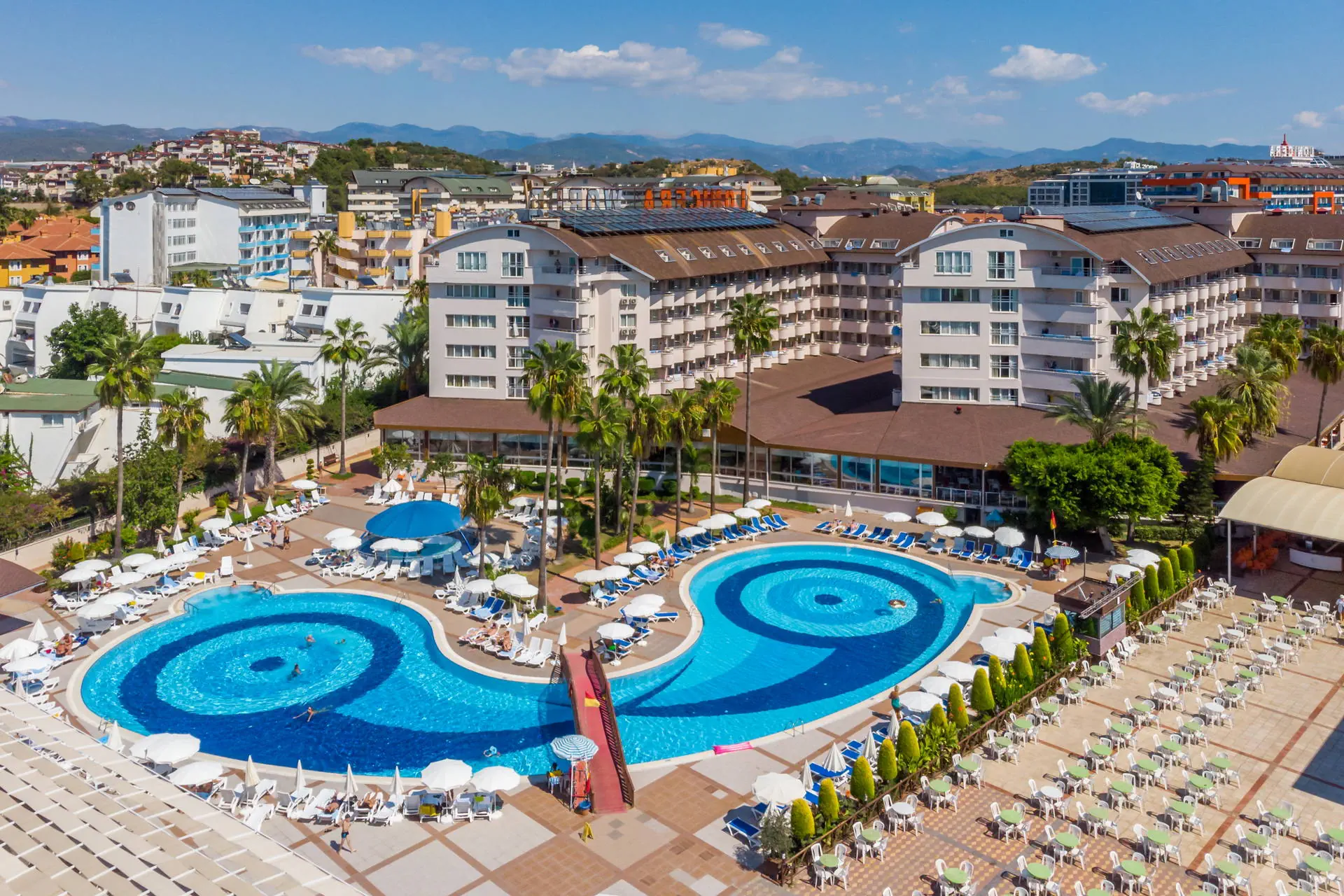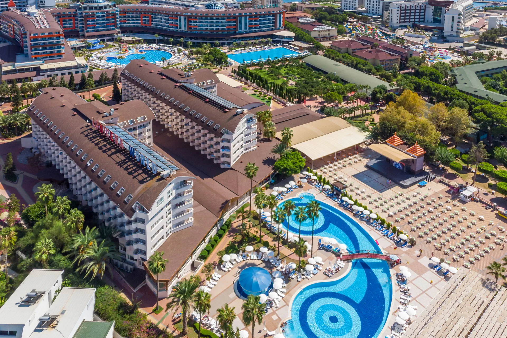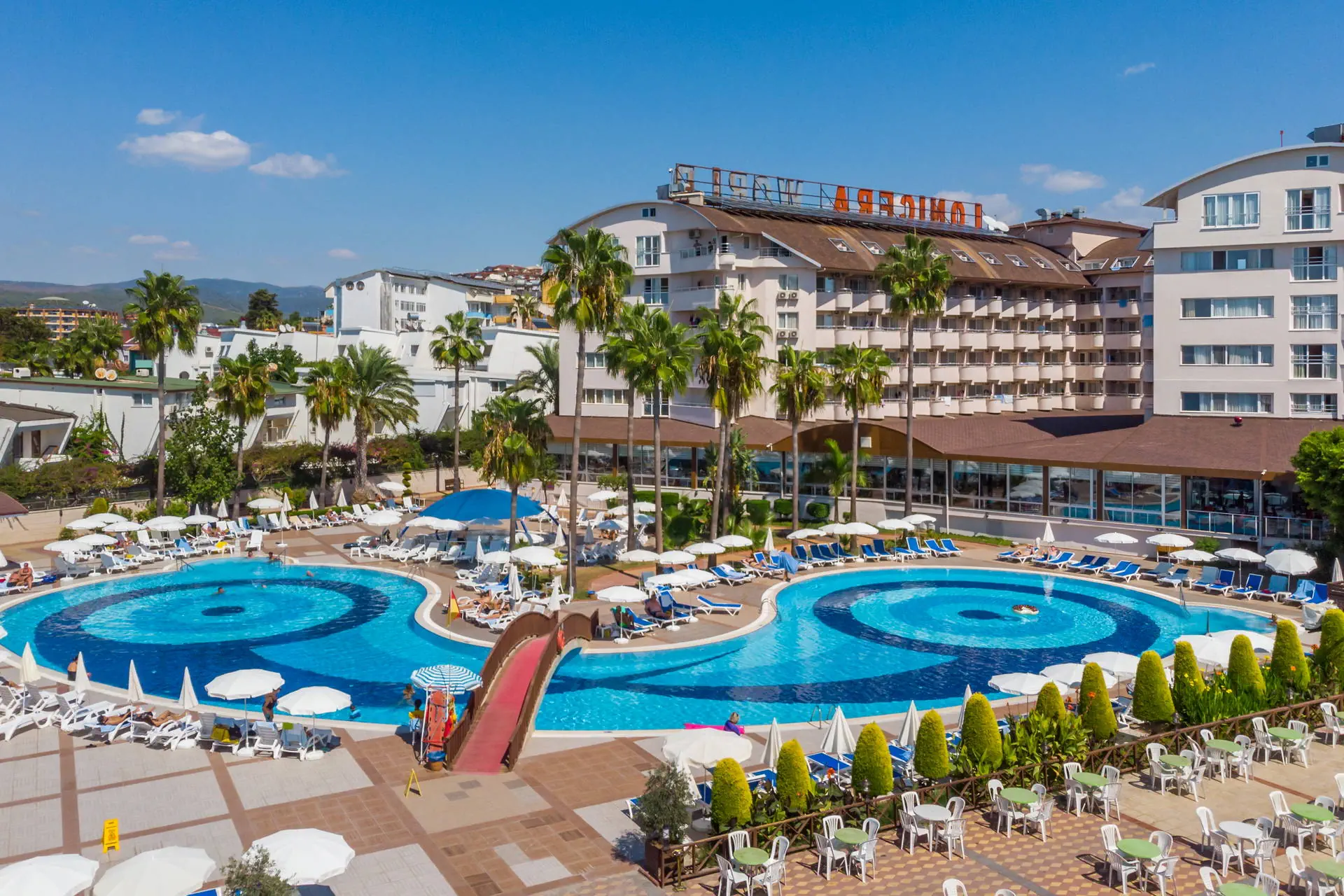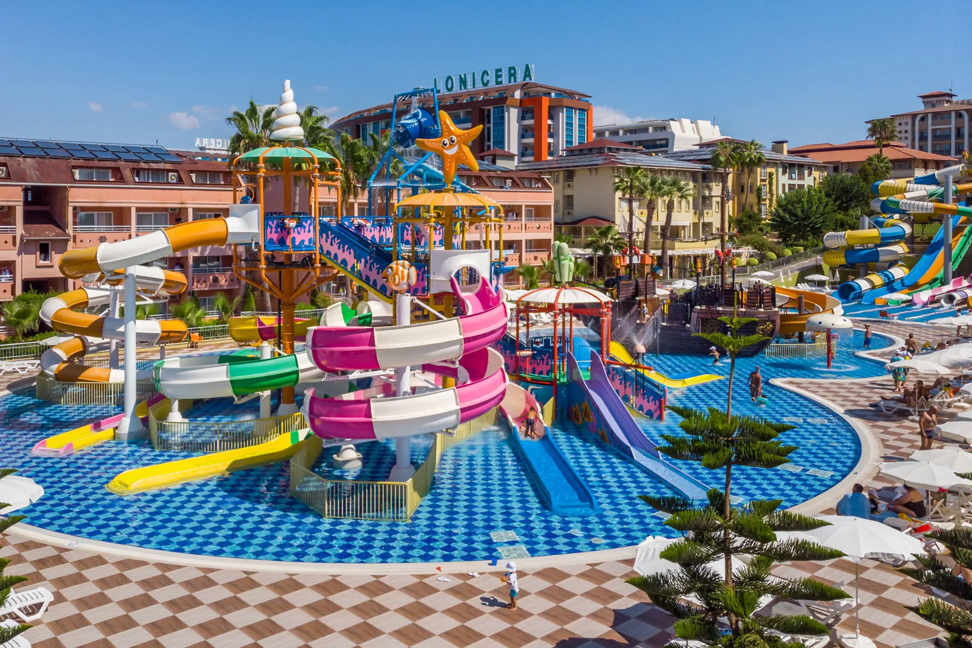Położenie Hotel położony jest w Turkler, na zadbanym terenie. Do lotniska w Antalyi jest około 100 km. W pobliżu znajdują się centrum handlowe, kilka barów, sklepów i restauracji. Odległość do Alanyi wynosi około 20 km. Obiekt składa się z części Lonicera World i Lonicera Resort & SPA. Kategoria lokalna ***** Plaża Piaszczysta plaża bezpośrednio przy hotelu. Leżaki, parasole, ręczniki kąpielowe dostępne bezpłatnie. Do dyspozycji gości Hotel składa się z 10 budynków. Recepcja 24h/7, lobby, windy. 7 basenów, w tym 2 ze zjeżdżalniami czynnymi w określonych godzinach, 7 brodzików, Aquapark z 19 zjeżdżalniami, 8 brodzików, basen kryty (aktualnie nieczynny, otwarty w kwietniu i październiku), jacuzzi. Restauracje: 2 restauracje główne (3 główne posiłki dostępne wyłącznie w restauracji w części Lonicera World), restauracje a’la carte: rybna (czynne od poł. maja do października, wymagana opłata rezerwacyjna ok. 100 TL), 11 barów: przy basenach, fast food bary, w lobby, w dyskotece. Atrakcje dla dorosłych: dyskoteka. Wyżywienie Rodzaje wyżywienia i posiłki: All Inclusive: Śniadanie: 07:00 - 10:30. Lunch: 12:30 - 14:30. Obiadokolacja: 19:00 - 21:00; 3 główne posiłki w formie bogatego bufetu w restauracji głównej w części Lonicera World. Przekąski: placki gozleme (10:30 - 16:00), fast food (10:30 - 16:30), bar z owocami (10:30 - 16:30), kącik ze słodyczami i lodami (10:30 - 16:30). Podwieczorek. Nocna przekąska: 24:00 - 07:00. Bary: Możliwość wyciskania soku z pomarańczy bezpłatnie w barze z owocami. Napoje bezalkoholowe i lokalne alkohole: 10:00 - 02:30 (nie dotyczy świeżych soków serwowanych poza barem z owocami). Program sportowy i animacyjny Dla każdego: boisko do koszykówki, badminton, tenis stołowy, bogaty program animacyjny w ciągu dnia i wieczorami: zabawy przy basenie, water polo, wieczorne show, muzyka na żywo. Tylko dla dorosłych: siłownia (dla osób pow.16 roku życia), sauna, łaźnia turecka, dyskoteka (23:30-02:00, napoje bezalkoholowe bezpłatne do 02:00) aktualnie nieczynna. Dla dzieci: plac zabaw. Za dodatkową opłatą: 4 korty tenisowe (oświetlenie ok. 10 EUR/godz.), łaźnia turecka (zabiegi płatne dodatkowo), dyskoteka (wejście płatne ok. 10 EUR), centrum SPA, sala gier na świeżym powietrzu (bilard, flipery, mini karuzele dla dzieci, samochodziki - ok. 2-3 EUR/gra). Internet Internet Wi-Fi na terenie hotelu i w pokojach dostępny bezpłatnie, kącik internetowy płatny (ok. 3 EUR/godz.). Naszym zdaniem Hotel z wesołą, klubową atmosferą oferuje różnorodne opcje zakwaterowania na rozległym terenie, co sprzyja komfortowemu wypoczynkowi. Położony przy piaszczystej plaży z łagodnym zejściem do morza, jest doskonałym miejscem na relaks, również dla najmłodszych. Bogata oferta atrakcji sprawia, że jest szczególnie popularny wśród rodzin z dziećmi. Ceniony i sprawdzony przez klientów, hotel od wielu sezonów wyróżnia się na tle konkurencji. Strona www www.lonicera.com.tr