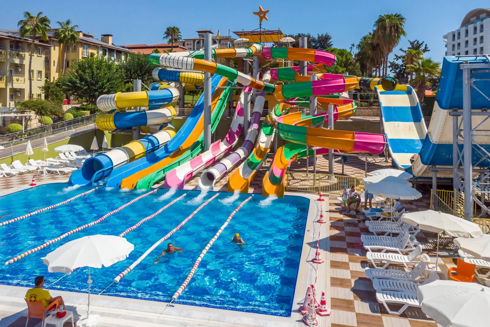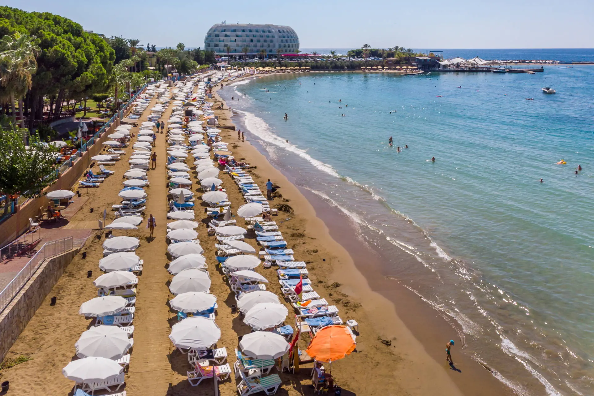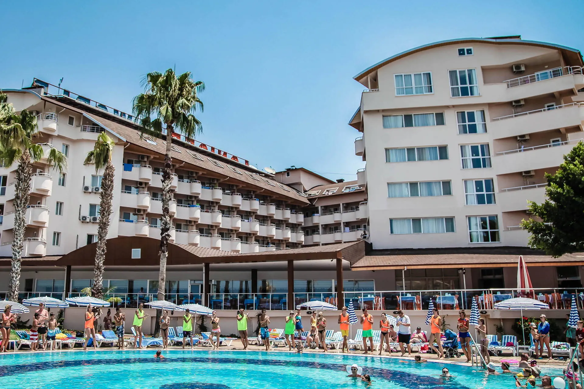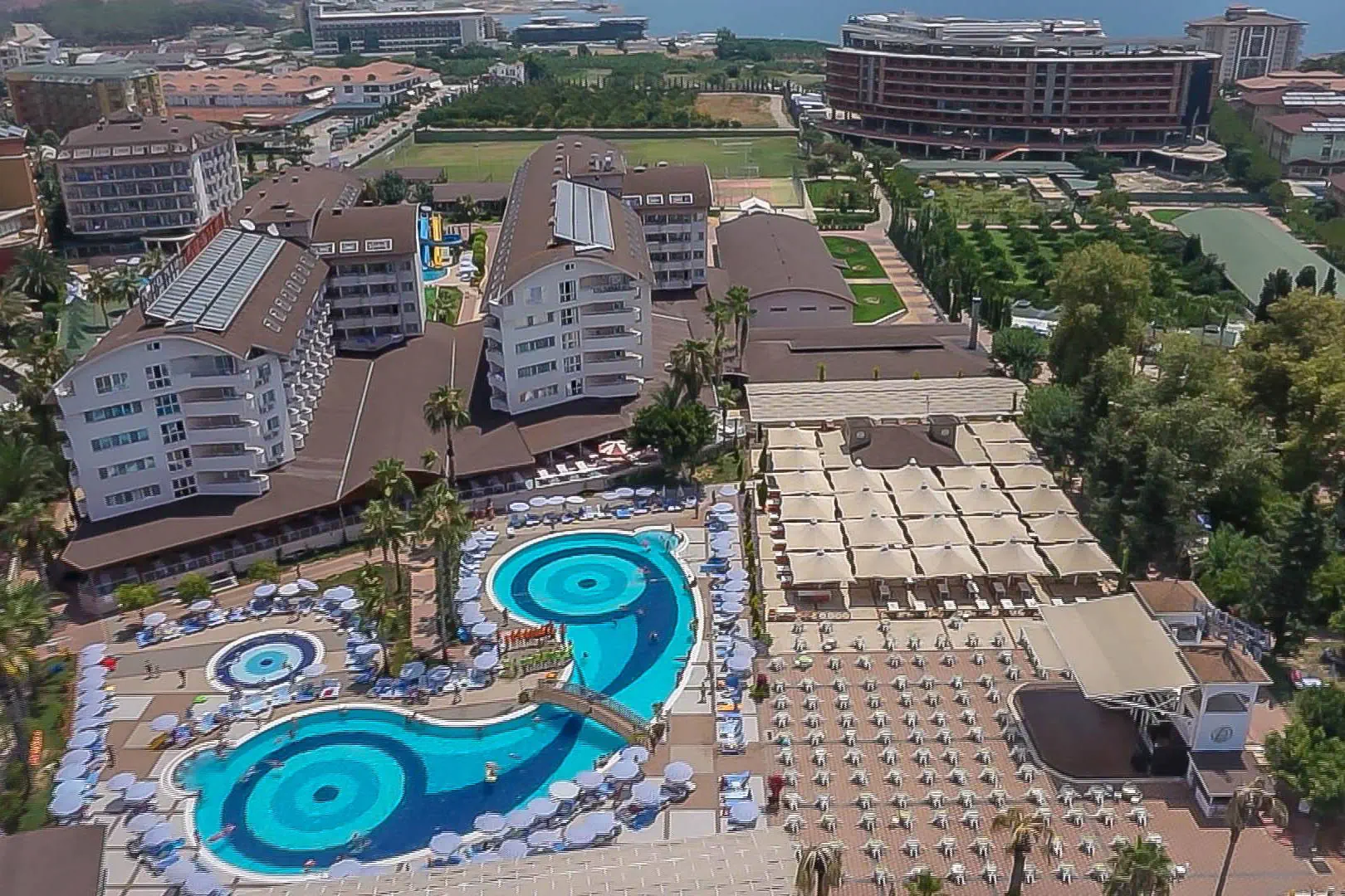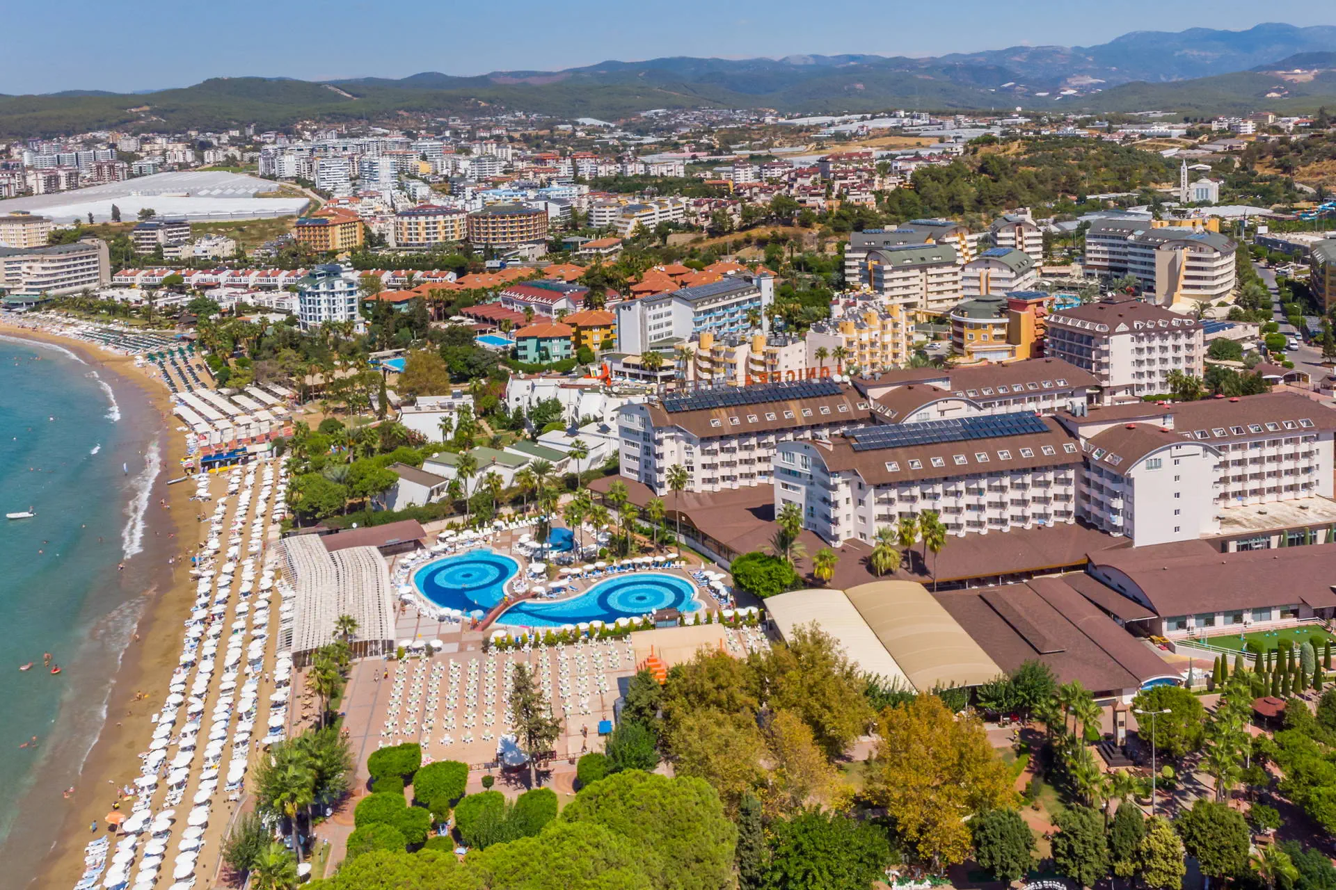 Położenie Hotel położony jest w Turkler, na zadbanym terenie. Do lotniska w Antalyi jest około 100 km. W pobliżu znajdują się centrum handlowe, kilka barów, sklepów i restauracji. Odległość do Alanyi wynosi około 20 km. Obiekt składa się z części Lonicera World i Lonicera Resort & SPA. Kategoria lokalna ***** Plaża Piaszczysta plaża bezpośrednio przy hotelu. Leżaki, parasole, ręczniki kąpielowe dostępne bezpłatnie. Do dyspozycji gości Hotel składa się z 10 budynków. Recepcja 24h/7, lobby, windy. 7 basenów, w tym 2 ze zjeżdżalniami czynnymi w określonych godzinach, 7 brodzików, Aquapark z 19 zjeżdżalniami, 8 brodzików, basen kryty (aktualnie nieczynny, otwarty w kwietniu i październiku), jacuzzi. Restauracje: 2 restauracje główne (3 główne posiłki dostępne wyłącznie w restauracji w części Lonicera World), restauracje a’la carte: rybna (czynne od poł. maja do października, wymagana opłata rezerwacyjna ok. 100 TL), 11 barów: przy basenach, fast food bary, w lobby, w dyskotece. Atrakcje dla dorosłych: dyskoteka. Wyżywienie Rodzaje wyżywienia i posiłki: All Inclusive: Śniadanie: 07:00 - 10:30. Lunch: 12:30 - 14:30. Obiadokolacja: 19:00 - 21:00; 3 główne posiłki w formie bogatego bufetu w restauracji głównej w części Lonicera World. Przekąski: placki gozleme (10:30 - 16:00), fast food (10:30 - 16:30), bar z owocami (10:30 - 16:30), kącik ze słodyczami i lodami (10:30 - 16:30). Podwieczorek. Nocna przekąska: 24:00 - 07:00. Bary: Możliwość wyciskania soku z pomarańczy bezpłatnie w barze z owocami. Napoje bezalkoholowe i lokalne alkohole: 10:00 - 02:30 (nie dotyczy świeżych soków serwowanych poza barem z owocami). Program sportowy i animacyjny Dla każdego: boisko do koszykówki, badminton, tenis stołowy, bogaty program animacyjny w ciągu dnia i wieczorami: zabawy przy basenie, water polo, wieczorne show, muzyka na żywo. Tylko dla dorosłych: siłownia (dla osób pow.16 roku życia), sauna, łaźnia turecka, dyskoteka (23:30-02:00, napoje bezalkoholowe bezpłatne do 02:00) aktualnie nieczynna. Dla dzieci: plac zabaw. Za dodatkową opłatą: 4 korty tenisowe (oświetlenie ok. 10 EUR/godz.), łaźnia turecka (zabiegi płatne dodatkowo), dyskoteka (wejście płatne ok. 10 EUR), centrum SPA, sala gier na świeżym powietrzu (bilard, flipery, mini karuzele dla dzieci, samochodziki - ok. 2-3 EUR/gra). Internet Internet Wi-Fi na terenie hotelu i w pokojach dostępny bezpłatnie, kącik internetowy płatny (ok. 3 EUR/godz.). Naszym zdaniem Hotel z wesołą, klubową atmosferą oferuje różnorodne opcje zakwaterowania na rozległym terenie, co sprzyja komfortowemu wypoczynkowi. Położony przy piaszczystej plaży z łagodnym zejściem do morza, jest doskonałym miejscem na relaks, również dla najmłodszych. Bogata oferta atrakcji sprawia, że jest szczególnie popularny wśród rodzin z dziećmi. Ceniony i sprawdzony przez klientów, hotel od wielu sezonów wyróżnia się na tle konkurencji. Strona www www.lonicera.com.tr