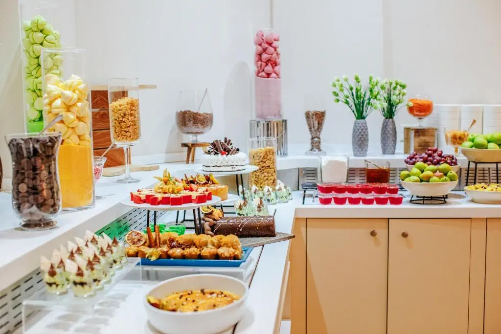 w formie bufetu - przekąski - ciasto - wybrane napoje bezalkoholowe - wybrane lokalne napoje alkoholowe - wybrane międzynarodowe napoje alkoholowe - kawa/herbata po południu Restauracje i bary
