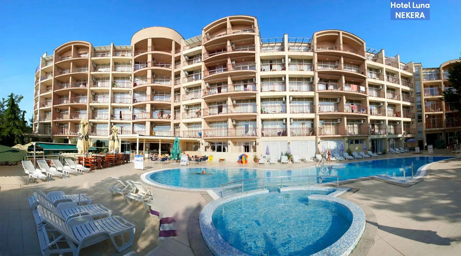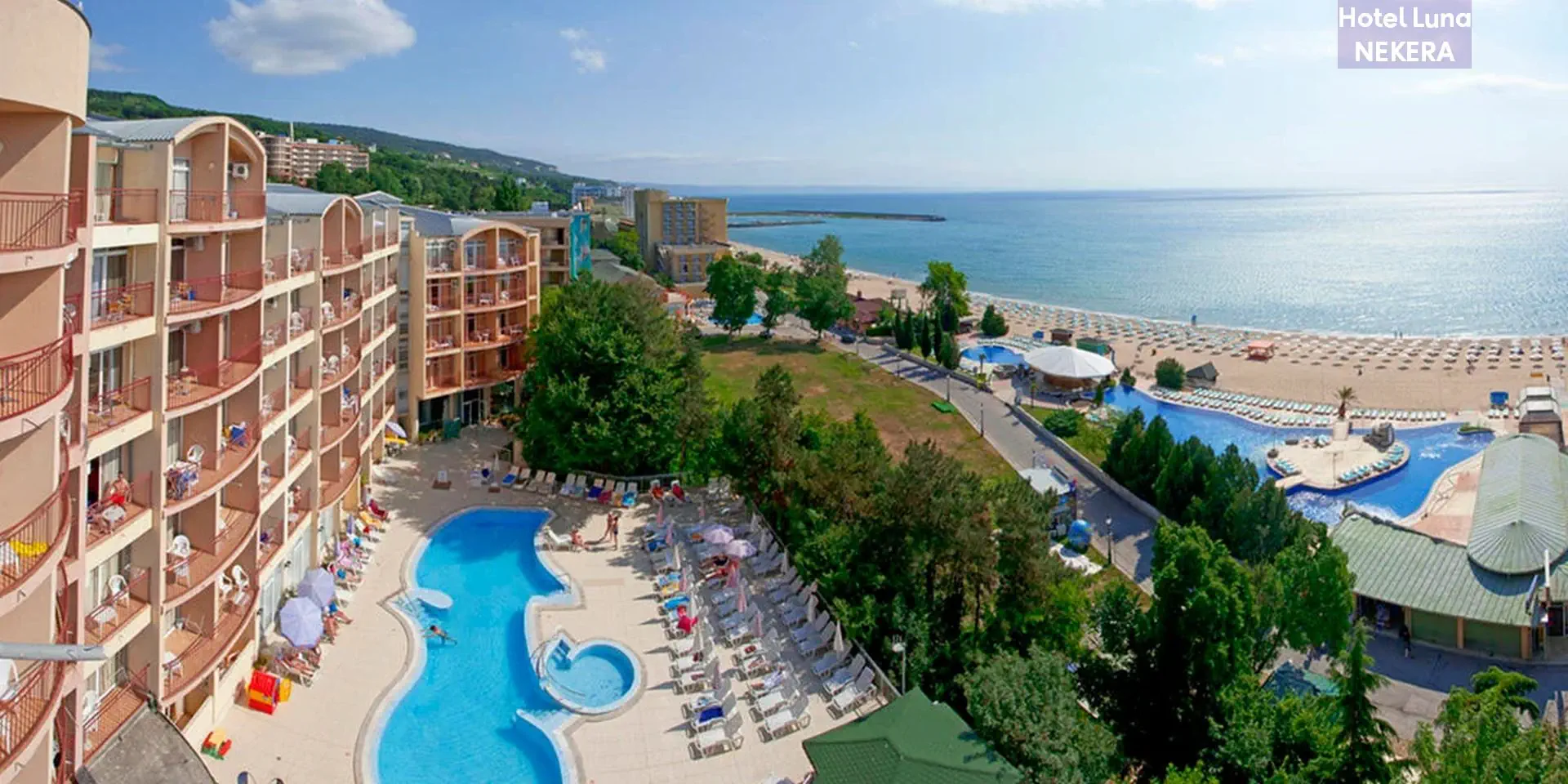 Hotel Luna to czterogwiazdkowy obiekt położony w północnej części kurortu Złote Piaski, w spokojnej okolicy, zaledwie około 50 metrów od szerokiej, piaszczystej plaży i około 500 metrów od centrum miejscowości. Dzięki dogodnemu położeniu blisko morza, eleganckiemu wystrojowi oraz bogatej ofercie udogodnień, hotel stanowi idealne miejsce na wypoczynek zarówno dla par, jak i rodzin z dziećmi, oferując komfortowy pobyt w bułgarskim kurorcie.