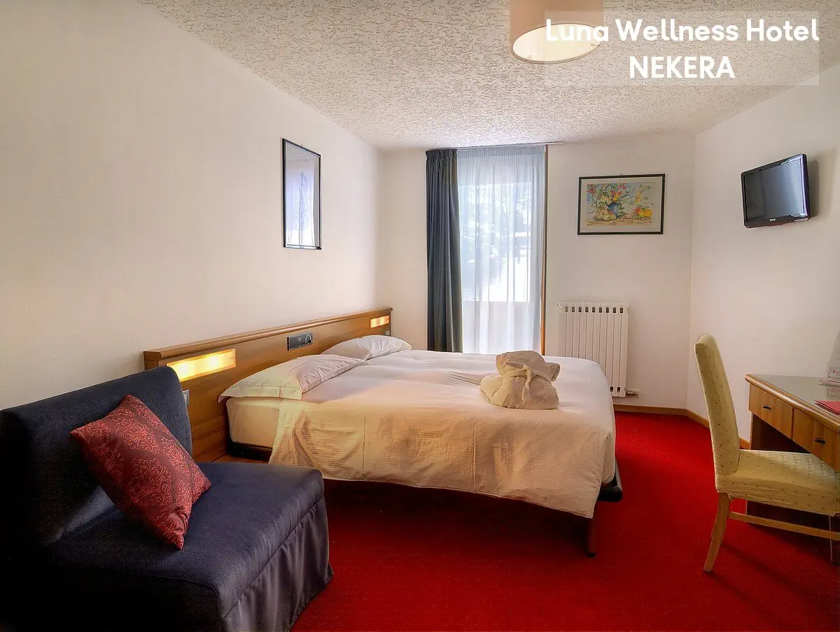 gustownie urządzone pokoje dwuosobowe standard (DBL STANDARD): ok. 18-21 m2; ogrzewanie, TV-Sat., telefon, sejf, minibar (za opłatą), balkon z widokiem na góry i las, prysznic, WC, suszarka, szlafrok, kapcie. Pokoje dwuosobowe Deluxe (DBL DELUXE): ok. 18-21 m2; nowocześniej urządzone, z wieloma drewniamymi elementami. Pokoje dwuosobowe Superior (DBL SUPERIOR): ok. 24 m2, nowocześnie i kreatywnie urządzone, poza tym wyposażone jak pokoje standard.