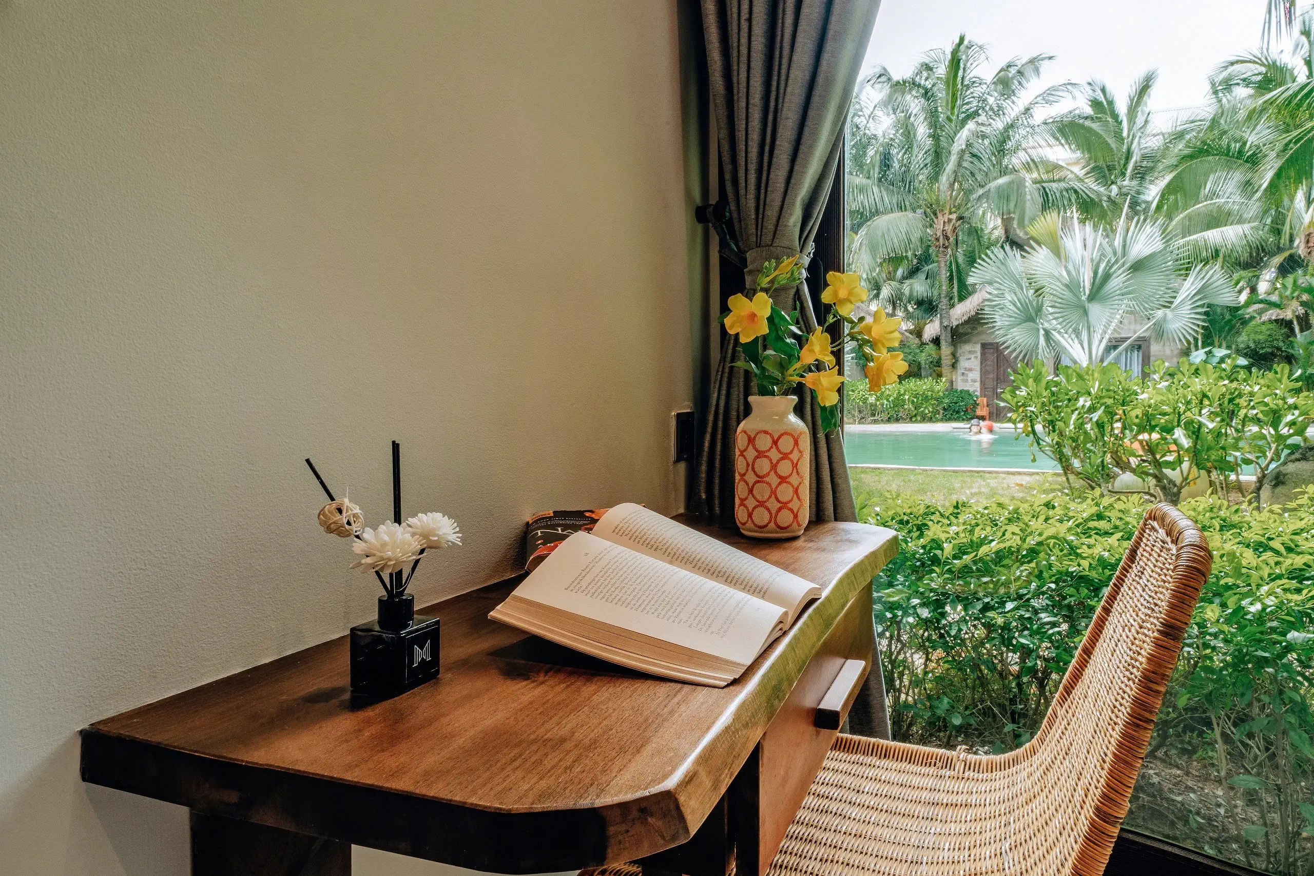 Dla max. 4 osób, Kanały telewizji: Angielski, Telefon w pokoju, prysznic, Powierzchnia pokoju: ok. 40 - 43 m2, Dostawka: sofa, Rodzaj podłogi: płytki, Sprzątanie codziennie, Salon, miejsce do pracy, 1 sypialnia, Maksymalna liczba osób dorosłych: 3, Maksymalna liczba dzieci: 2, Widok na ogród i basen, Liczba łazienek: 1, Liczba toalet: 1, Zestaw do parzenia kawy i herbaty, Klimatyzacja: Klimatyzacja indywidualna