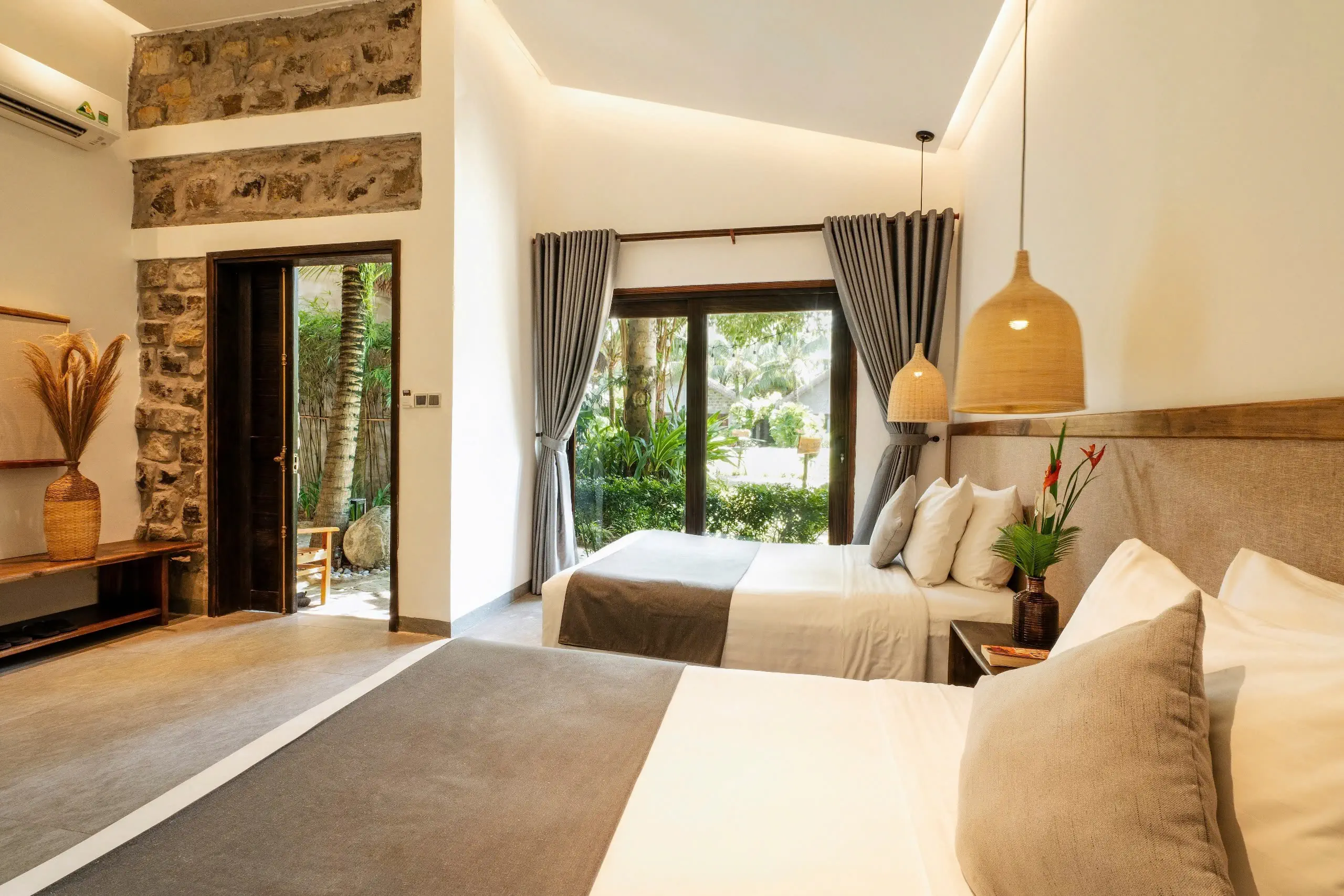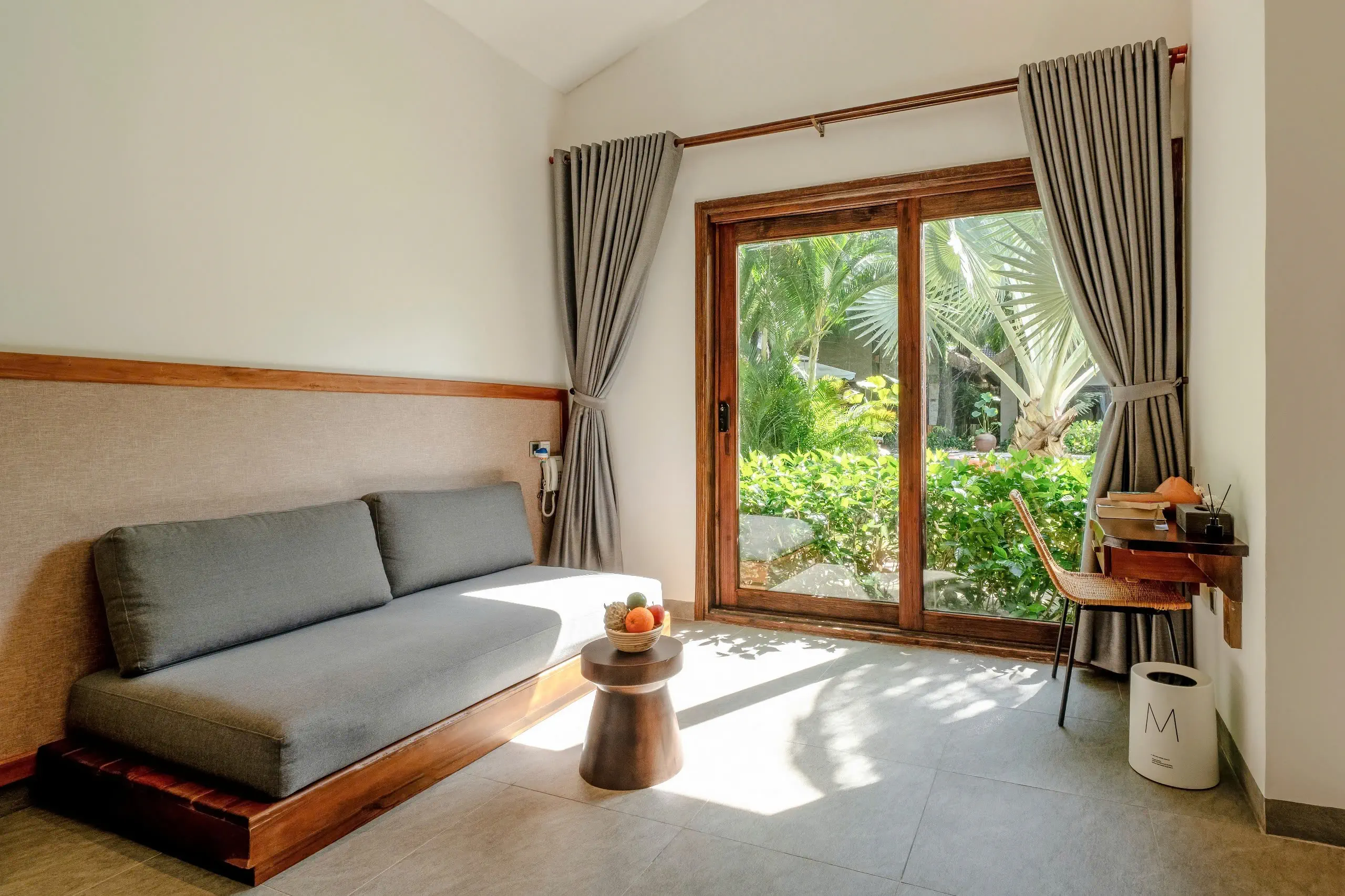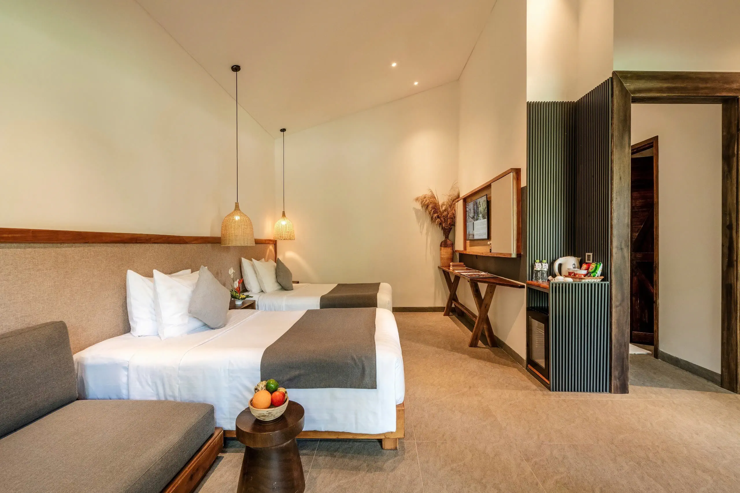 Dla max. 4 osób, Kanały telewizji: Angielski, Telefon w pokoju, prysznic, Powierzchnia pokoju: ok. 35 - 38 m2, Dostawka: łóżko rozkładane, Rodzaj podłogi: płytki, Sprzątanie codziennie, 1 sypialnia, Maksymalna liczba osób dorosłych: 3, Maksymalna liczba dzieci: 2, Widok na ogród, Liczba łazienek: 1, Liczba toalet: 1, Zestaw do parzenia kawy i herbaty, Klimatyzacja: Klimatyzacja indywidualna