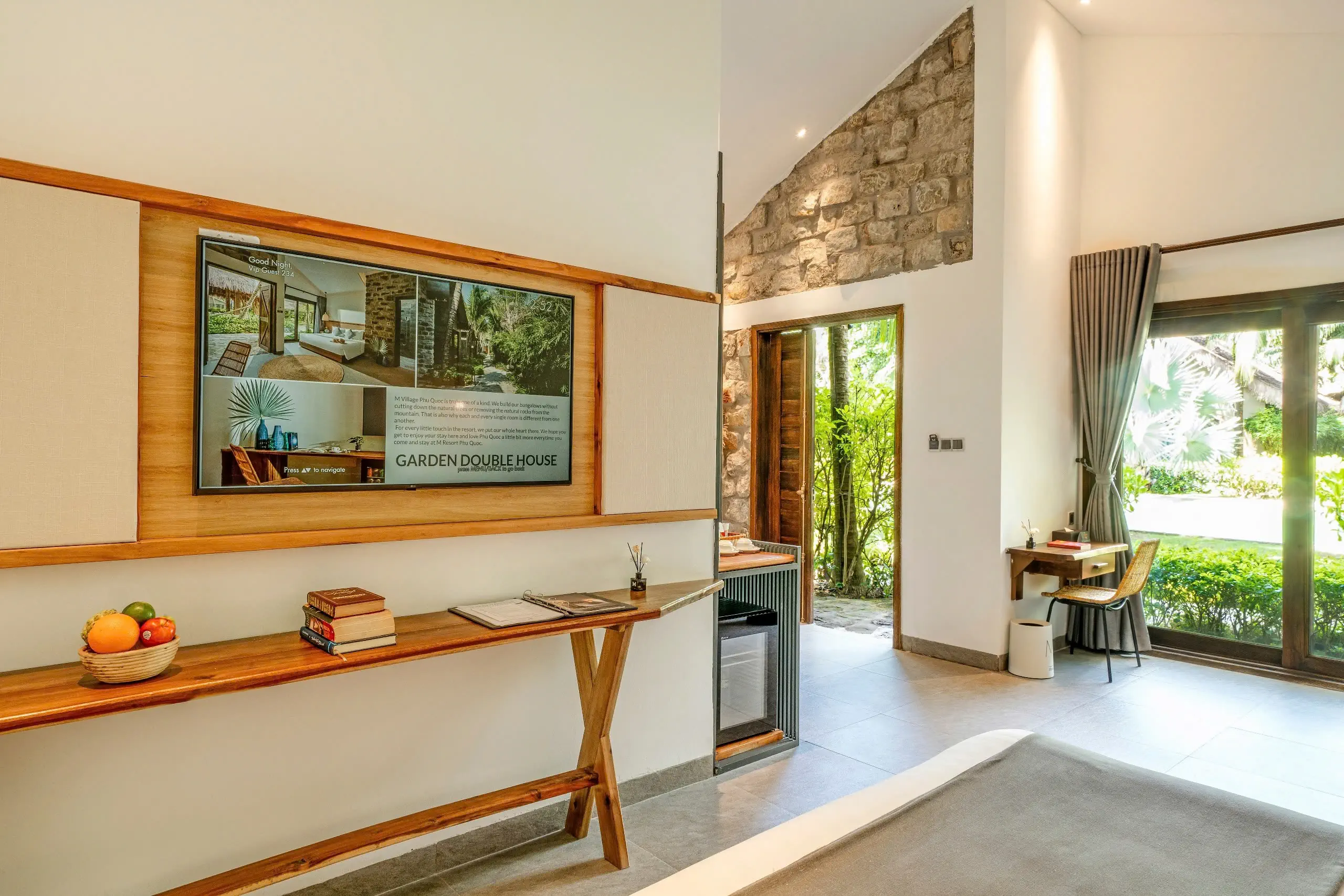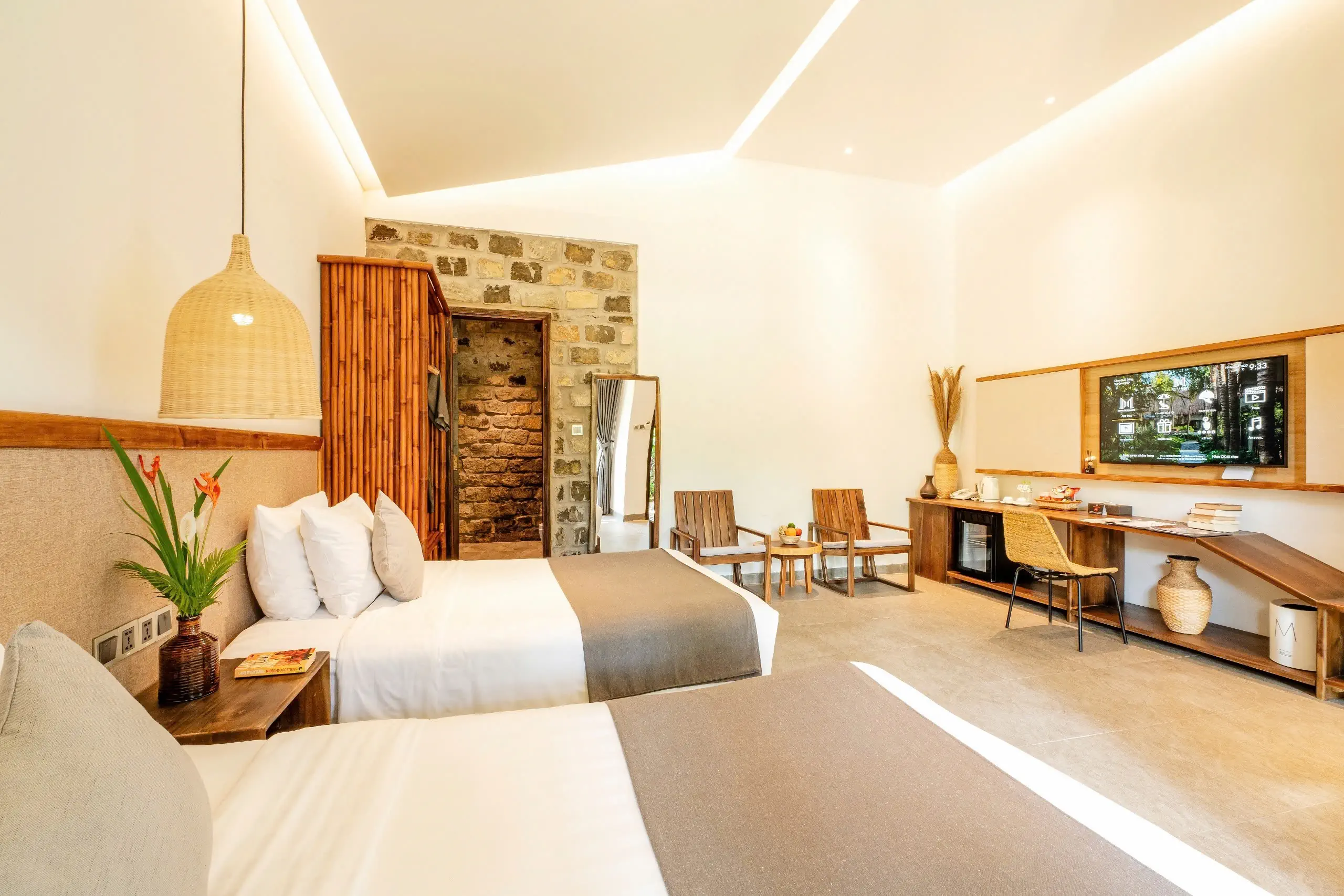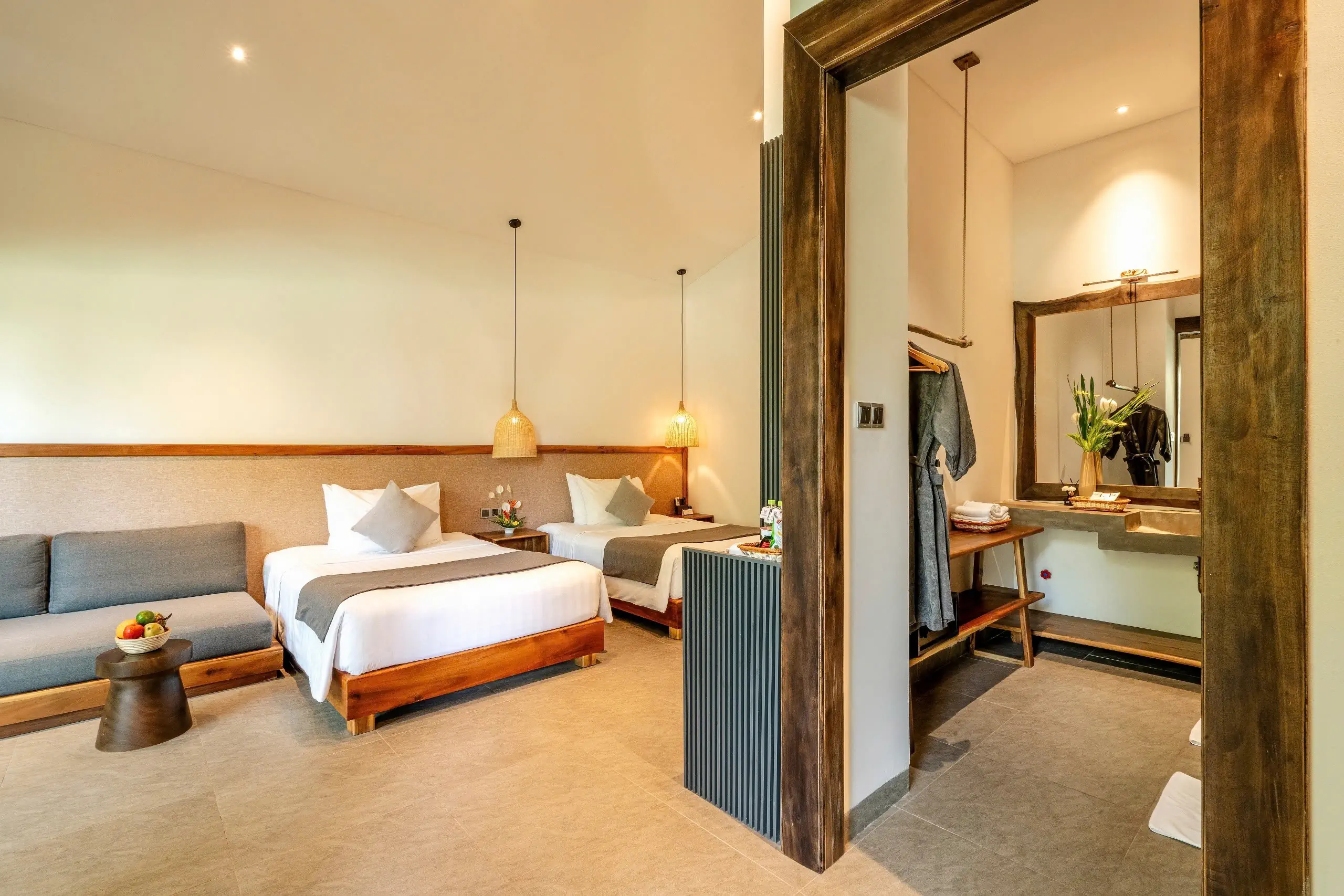 Dla max. 4 osób, Kanały telewizji: Angielski, Telefon w pokoju, prysznic, Powierzchnia pokoju: ok. 35 - 38 m2, Dostawka: łóżko rozkładane, Rodzaj podłogi: płytki, Sprzątanie codziennie, 1 sypialnia, Maksymalna liczba osób dorosłych: 3, Maksymalna liczba dzieci: 2, Widok na ogród, Liczba łazienek: 1, Liczba toalet: 1, Zestaw do parzenia kawy i herbaty, Klimatyzacja: Klimatyzacja indywidualna