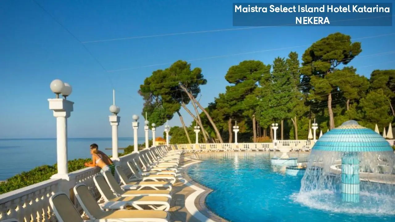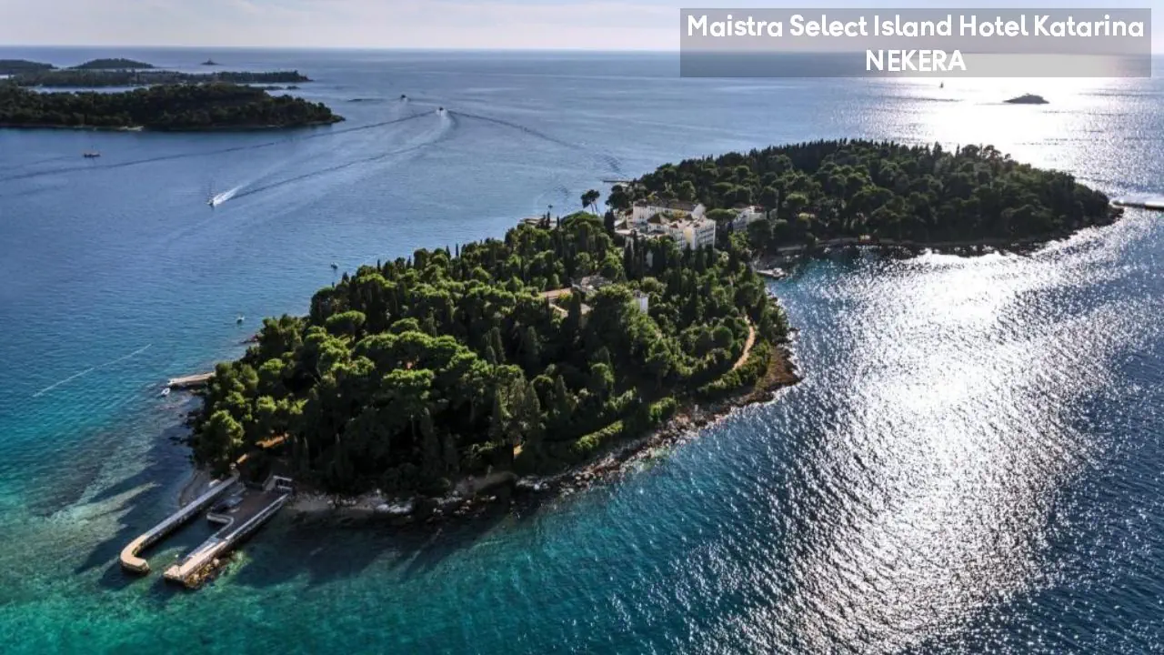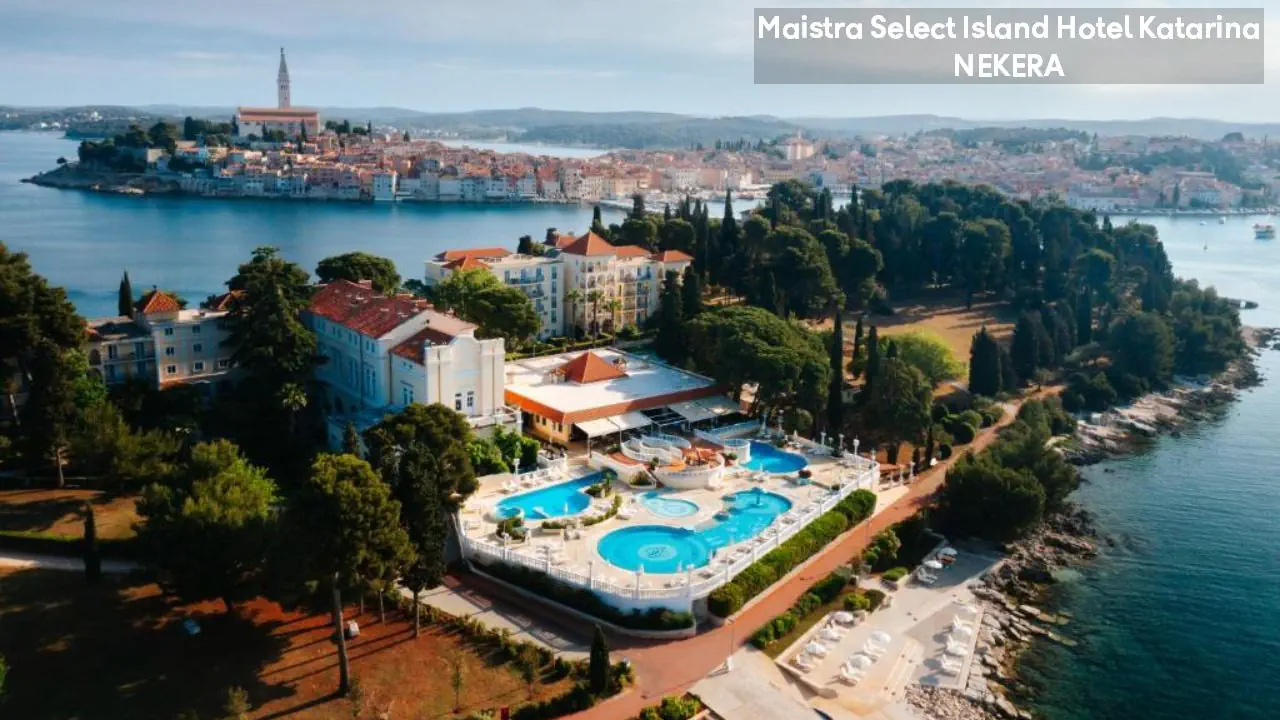 zlokalizowany jest na malowniczej wysepce św. Katarzyny, naprzeciwko historycznego centrum miasta Rovinj. Hotel położony jest w otoczeniu bujnej śródziemnomorskiej roślinności i XIX-wiecznych ogrodów. Do centrum Rovinj można dotrzeć w ok. 5 minut regularnie kursującą łodzią hotelową (bezpłatna dla gości). Miasto Pula z zabytkowym amfiteatrem oddalone jest o ok. 35 km. Międzynarodowy port lotniczy Pula znajduje się w odległości ok. 40 km.