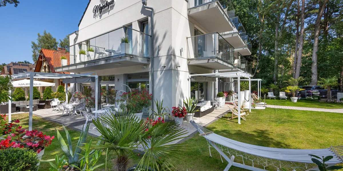 Majestique Boutique Residence znajduje się blisko piaszczystej plaży w Pobierowie, na skraju nadmorskiego lasu. Pobierowo mieści się na bałtyckim wybrzeżu pomiędzy Dziwnowem, a Mrzeżynem, 50 km na zachód od Kołobrzegu.
