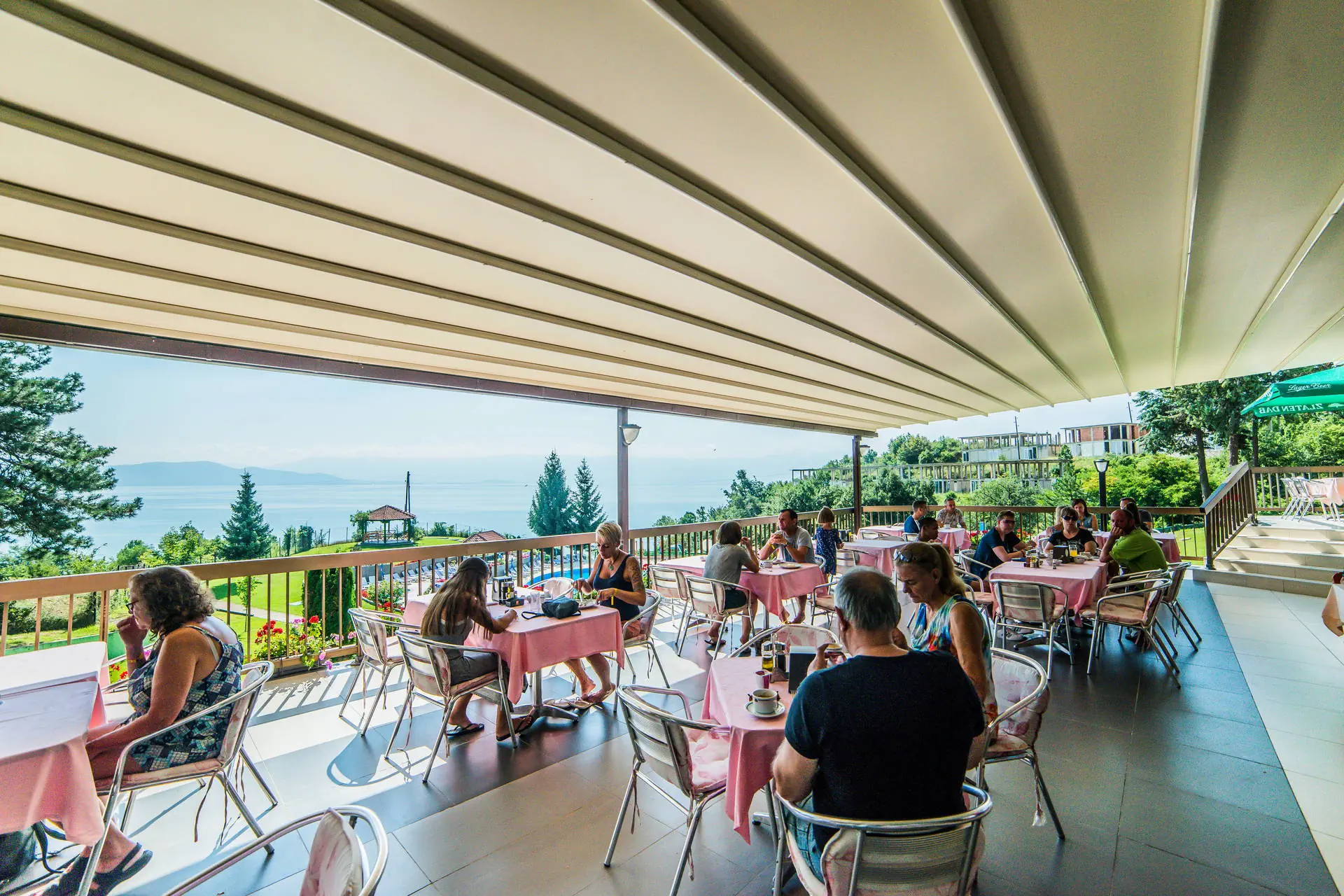 Położenie Kameralny, 3 – piętrowy hotel Makpetrol (po remoncie w 2016 r) położony jest w miejscowości Elen Kamen, w otoczeniu zieleni, z malowniczym widokiem na oddalone o ok. 200 m. Jezioro Ochrydzkie. Do centrum Strugi ok. 7 km (przystanek autobusowy ok. 50 m od hotelu - ok. 1 EUR/os, taxi ok. 2 EUR/os), do Ochrydy ok. 20 km (przystanek autobusowy ok. 50m od hotelu). Do najbliższego lotniska ok. 15 km. W 2014 r. hotel otrzymał „Zoover Award”- prestiżową nagrodę przyznawaną przez internautów świadczącą o wysokim poziomie serwisu i zadowoleniu gości. Hotel położony jest w sąsiedztwie hotelu Izgrev Spa & Aquapark. Plaża Piaszczysto-żwirkowa plaża znajduje się 200 m od hotelu, zejście po schodkach (wspólna z hotelem Izgrev Spa & Aquapark). Bezpłatne leżaki i parasole. Bar na plaży (płatny; wspólny z hotelem Izgrev Spa & Aquapark). Do dyspozycji gości Całodobowa recepcja, winda, sejf w recepcji (bezpłatny), restauracja główna z tarasem z pięknym widokiem na jezioro, gdzie serwowane są dania kuchni lokalnej i międzynarodowej oraz aperitif bar przy basenie i bar na plaży (płatny; wspólny z hotelem Izgrev Spa & Aquapark). Ponadto basen o owalnym kształcie (375m2, gł. 2,2m) oraz osobny brodzik dla dzieci (16m2, gł. 60cm), mała sala fitness, boisko do siatkówki i piłki nożnej, tenis stołowy. Pokoje Hotel posiada ponad 40 klimatyzowanych pokoi 2-os. z łazienką (WC, prysznic lub wanna; suszarka do włosów) oraz balkonem lub tarasem z widokiem na Jezioro Ochrydzkie. Możliwość dostawki dla dziecka (łóżeczko dla niemowlaka na zapytanie). W każdym pokoju: wykładzina, TV-sat, telefon i mini bar (za dodatkową opłatą). Wyżywienie All inclusive: Śniadanie (07:00-10:00), obiad (12:00-14:00) i kolacja (19:00-21:00) w formie bogatego bufetu w hotelowej restauracji głównej. Ciepłe i zimne przekąski serwowane w barze przy basenie (10:00-12:00, 14:00-18:00). Nielimitowane lokalne bezalkoholowe i alkoholowe napoje dostępne w godzinach 10:00-22:00. Program sportowy i animacyjny Hotel dysponuje: małą salą fitness (sauna, masaże i inne zabiegi dodatkowo płatne), boiskiem (do piłki nożnej i siatkówki), stołem do tenisa stołowego i placem zabaw dla dzieci. W pobliskim hotelu Izgrev można skorzystać z Aquaparku (dodatkowo płatny; wymaga rezerwacja w recepcji). Internet Bezpłatne Wi-Fi w obiekcie (w lobby i na tarasie). Kategoria lokalna **** Naszym zdaniem Niewielki, komfortowy hotel o bardzo dobrym serwisie i standardzie, odpowiedni dla pełnego relaksu odpoczynku. Nagrodzony "Zoover Award"- internetowym wyróżnieniem klientów Strona www