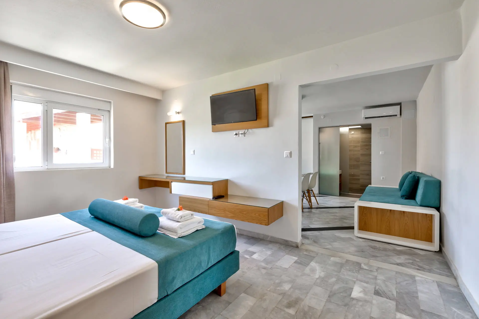 Do dyspozycji gości Recepcja 24h/7. Obiekt posiada udogodnienia dla niepełnosprawnych. 2 baseny, brodzik dla dzieci, bezpłatne leżaki i parasole przy basenach. OgródRestauracja, bar, napoje w barze przy basenie. BibliotekaPozostałe informacje: akceptacja małych zwierząt domowych na potwierdzenie, przechowalnia bagażu oraz prysznice dostępne na dole za recepcją. Hotel przyjazny środowisku - prowadzona hodowla warzyw na potrzeby restauracji. Pokoje Hotel składa się z 62 w pełni wyposażonych i przestronnych pokoi, w pełni odnowionych w 2015 roku. Pokoje typu 2+2, w każdym znajduje się łazienka z prysznicem lub wanna, WC, balkon lub taras, TV, bezpłatna klimatyzacja, sejf oraz Internet Wi-Fi. Do dyspozycji gości także lodówka, kuchenka, sprzęt kuchenny, stół jadalny z krzesłami. Wyżywienie Rodzaje wyżywienia i posiłki: All Inclusive: Śniadania: 08:00 – 10:00. Obiady: 13:00 - 14:30. Kolacje: 19:00 - 21:00. Przerwa kawowa: kawa, herbata i ciastka. Bary: Bar przy basenie: kanapki 11:00 - 18:00, lody 17:00 - 21:00. Lokalne napoje alkoholowe (piwo, wino, raki): 10:30 - 22:30. Lokalne napoje alkoholowe (gin, ouzo, wódka, brandy, rum, whisky, tequila, likiery): 18:30 - 22:30. Napoje bezalkoholowe (herbata, kawa, soki, cola, sprite): 10:30 - 22:30. Program sportowy i animacyjny Dla każdego: 2 kąciki telewizyjne oraz salon gier. Tylko dla dorosłych: siłownia bezpłatna na terenie obiektu. Dla dzieci: brodzik, plac zabaw, krzesełka dla dzieci w restauracji lub w pokojach, organizowane pokazy/show lokalnych artystów. Pozostałe informacje: Animacje wieczorne minimum 2 razy w tygodniu. Internet Bezpłatny Internet Wi-Fi w pokojach. Kategoria lokalna **** Naszym zdaniem Hotel usytuowany w spokojnej okolicy, zaledwie kilka kroków od plaży, oferuje doskonałe warunki dla rodzin z dziećmi. Pokoje typu 2+2 zapewniają komfortowy pobyt dla całej rodziny. Opcja All inclusive umożliwia pełne wyżywienie i relaks bez dodatkowych trosk. To idealne miejsce dla osób poszukujących spokoju i bliskości morza. Położenie Hotel położony jest w spokojnej okolicy w miejscowości Maleme. Do lotniska w Heraklionie ok. 156 km Do lotniska w Chanii ok. 36 km.Odległość do turystycznej części Platanias wynosi około 5 km. Przystanek autobusowy, bankomat, najbliższe sklepy i apteka znajdują się w odległości około 150 m od hotelu. Plaża Plaża tuż przy hotelu, przejście przez mało ruchliwą ulicę. Kamienista. Leżaki i parasole płatne. Strona www www.maleme-mare.gr