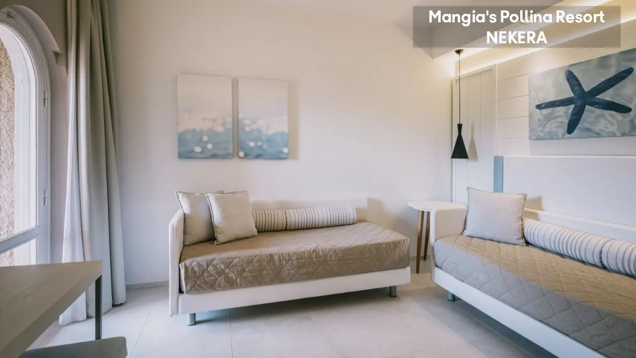 Pokój Standard ok. 22 m² dla 2 osób dorosłych, łóżko podwójne lub 2 pojedyncze, klimatyzacja, TV-Sat., sejf, minibar (płatny), telefon (płatny), prywatna łazienka (prysznic, toaleta, umywalka, lustro, mini kosmetyki, suszarka do włosów), umeblowany balkon lub taras. Pokój Superior ok. 25 m² dla max 3 osób dorosłych, łóżko podwójne lub 2 pojedyncze, sofa lub łóżko rozkładane jako dostawka, klimatyzacja, TV-Sat., sejf, minibar (płatny), zestaw do kawy/herbaty, telefon (płatny), prywatna łazienka (prysznic, toaleta, umywalka, lustro, mini kosmetyki, suszarka do włosów), umeblowany balkon lub taras. Pokój Deluxe ok. 27 m² dla max 4 osób dorosłych, elegancki, wyższy standard wykończenia, poza tym wyposażony jako pokój Superior. Możliwość rezerwacji pokoju z widokiem na morze, za dodatkową opłatą.