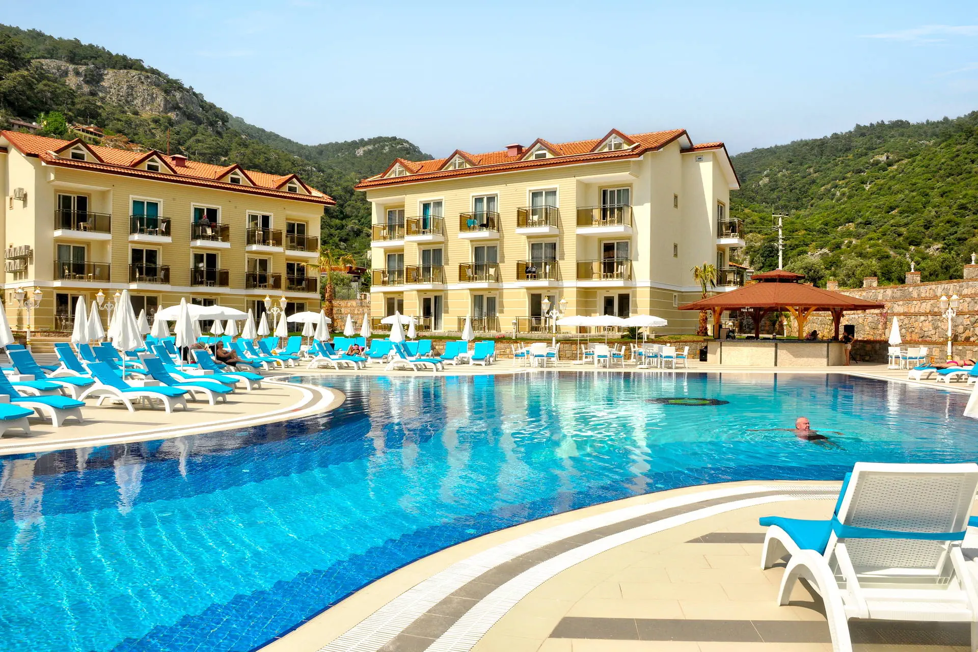 Położenie Hotel położony jest w miejscowości Oludeniz, otoczonej malowniczymi górami Taurus. Do ścisłego centrum z szerokim wyborem barów, restauracji oraz sklepów jest ok. 500 m. Obiekt znajduje się ok. 7 km od Hisaronu i ok. 12 km od zabytkowego Fethiye. Hotel oddalony jest o ok. 60 km od lotniska w Dalamanie. Plaża Oddalona o ok. 850 m od hotelu. Szeroka, piaszczysto-żwirowa, publiczna, jedna z piękniejszych w okolicy, zakończona imponującą laguną. Leżaki i parasole dostępne za opłatą ok. 5 EUR/szt. Do dyspozycji gości Recepcja 24h/7, lobby. 1 basen ze zjeżdżalniami, brodzik dla dzieci, leżaki i parasole przy basenie dostępne bezpłatnie, hotel nie dysponuje ręcznikami kąpielowymi. Atrakcje dla dzieci: brodzik dla dzieci. Restauracje: restauracja serwująca dania kuchni tureckiej oraz międzynarodowej (część wewnętrzna oraz zewnętrzna), snack bar, bar przy basenie. Pozostałe informacje: pralnia, lekarz, wypożyczalnia samochodów (wszystkie dodatkowo płatne). Wyżywienie Rodzaje wyżywienia i posiłki: All Inclusive: Śniadanie: 07:30 - 10:00. Późne śniadanie: 10:00 - 10:30. Lunch: 12:30 - 14:00. Obiadokolacja: 19:00 - 21:00; posiłki w formie bufetu.Przekąski w snack barze: 14:30 - 17:00. Lody: 15:00 - 16:00. Przerwa kawowa: 17:00 - 17:30. Nocna przekąska: 23:30 - 24:00. Bary: Bar przy basenie: lokalne napoje bezalkoholowe i alkoholowe w godzinach 10:00 - 23:00. Bar w godzinach lunchu i obiadokolacji: lokalne napoje bezalkoholowe i alkoholowe. Pozostałe informacje: Importowane napoje bezalkoholowe i alkoholowe oraz wszystkie napoje serwowane po godz. 23:00 mogą obowiązywać dodatkowe opłaty. W restauracji dostępne wysokie krzesełka dla dzieci. Program sportowy i animacyjny Dla każdego: gry i zabawy przy basenie, aqua aerobik, piłka wodna, aerobik, fitness, bilard, tenis stołowy, rzutki, trzy razy w tygodniu wieczorne show lub wieczory tematyczne. Dla dzieci: plac zabaw. Za dodatkową opłatą: SPA, sporty wodne przy plaży, nurkowanie. Internet Bezpłatny Internet Wi-Fi dostępny w ogólnodostępnych miejscach hotelu, w pokojach słaby zasięg. Kategoria lokalna **** Naszym zdaniem Kameralny hotel o niebanalnej architekturze, doskonale położony w pobliżu rozrywek oferowanych przez Oludeniz, a także przy jednej z najpiękniejszych plaż regionu. Hotel ceniony jest przez Gości za wygodną formułę All Inclusive, wysoką jakość usług oraz komfortowe pokoje. Strona www www.marcanresorthotel.com