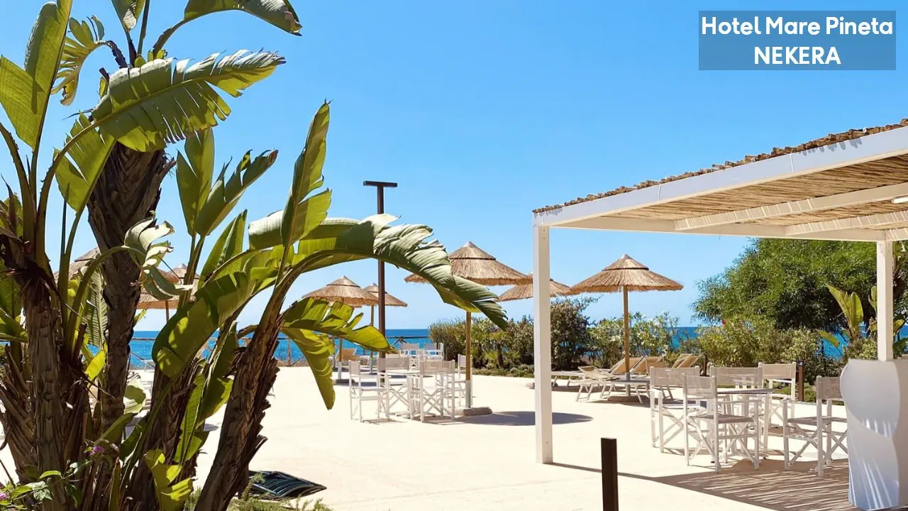 bezpośrednio przy prywatnej, piaszczystej plaży z łagodnym zejściem do morza (ok. 50 m od budynku). Plaża z drobnym, jasnym piaskiem, z krystalicznie czystą wodą i płytkim dnem – idealna do kąpieli i długich spacerów brzegiem morza. Bezpłatne: parasole i leżaki na prywatnej plaży dla Gości hotelu. Dodatkowo płatne: sporty wodne na plaży