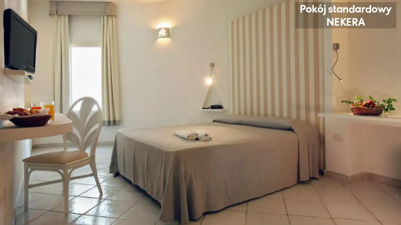 Noclegi, wyżywienie zgodnie z rezerwacją, telefoniczną opiekę rezydenta. Dodatkowo w przypadku imprez pakietowych z przelotem, oprócz ww. świadczeń w cenie zawarty jest: przelot, opłata lotniskowa, opłata za wylot z lotniska lokalnego, transfer lotnisko-hotel-lotnisko (chyba, że dana oferta stanowi inaczej), ubezpieczenie dla imprez turystycznych, bezpośrednia opieka polskojęzycznego rezydenta - w sezonie letnim (wakacyjnym): Kreta, Rodos, Turcja (Riwiera), Majorka, Bułgaria, całorocznie: Malta, na pozostałych kierunkach opieka telefoniczna lub przez czat w serwisie moja.nekera.pl. W przypadku imprez turystycznych opartych o przeloty przewóz bagażu może być nieuwzględniony w cenie. Cena uzależniona jest m.in. od przewoźnika oraz terminu wyjazdu, należy ją zweryfikować podczas zakupu. Linie lotnicze, w których bagaż jest w cenie (20 kg bagaż główny oraz bagaż podręczny) - przeloty czarterowe: Enter Air, LOT (dla wylotów na Rodos), Sky Express, Holiday Europe, European Air Charter, Ryan Sun (dla wylotów na Rodos) oraz przeloty rejsowe: Sun Express, Corendon, Pegasus Airlines, Emirates, Fly Dubai, Quatar Airlines, Air France, Austrian Airlines.Przykładowe linie lotnicze, gdzie bagaż jest dodatkowo płatny to: FR (Ryanair), W6 (WizzAir), Easy Jet. Podane godziny serwowania posiłków oraz funkcjonowania poszczególnych elementów infrastruktury hotelowej mogą ulec nieznacznym zmianom, ze względu na sezonowość, siły wyższe i inne okoliczności.