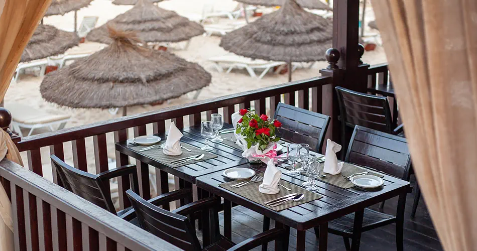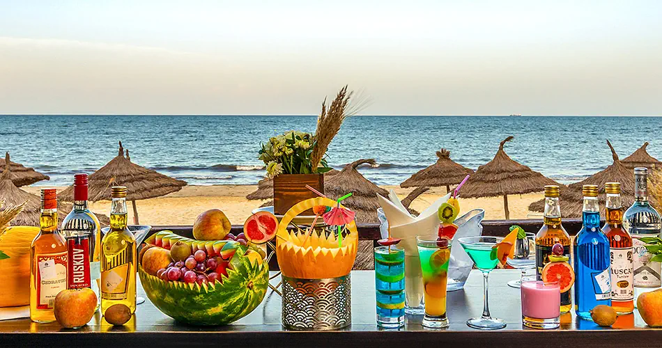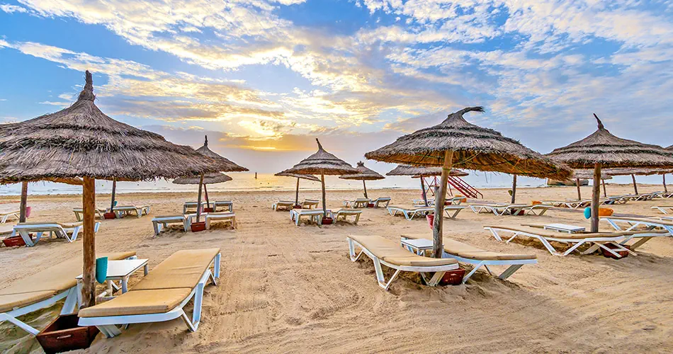 - Piaszczysta, prywatna przy hotelu - Leżaki i parasole – bezpłatnie - Ręczniki plażowe - wymagany depozyt ok. 10 TND - Bar - bezpłatny (czynny w wysokim sezonie w zależności od waruńków pogodowych)