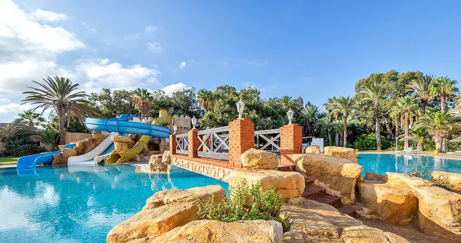 - Recepcja - 4 restauracje w tym płatne, restauracja na plaży SOL y Sombra (od 15.06- 15.09) - 3 bary w tym płatne - Kawiarenka mauretańska- płatna - Dyskoteka- płatna - Basen z zjeżdżalniami z morską wodą (od Maja do Pażdziernika) - 2 zewnetrzne baseny w tym 1 z wodą morską, brodzik ze słodką wodą - Sklepy z pamiątkami - Sale konferencyjne - Kantor - Udogodnienia dla niepełnosprawnych - Centrum SPA - Ofecjalna kategoria 4*
