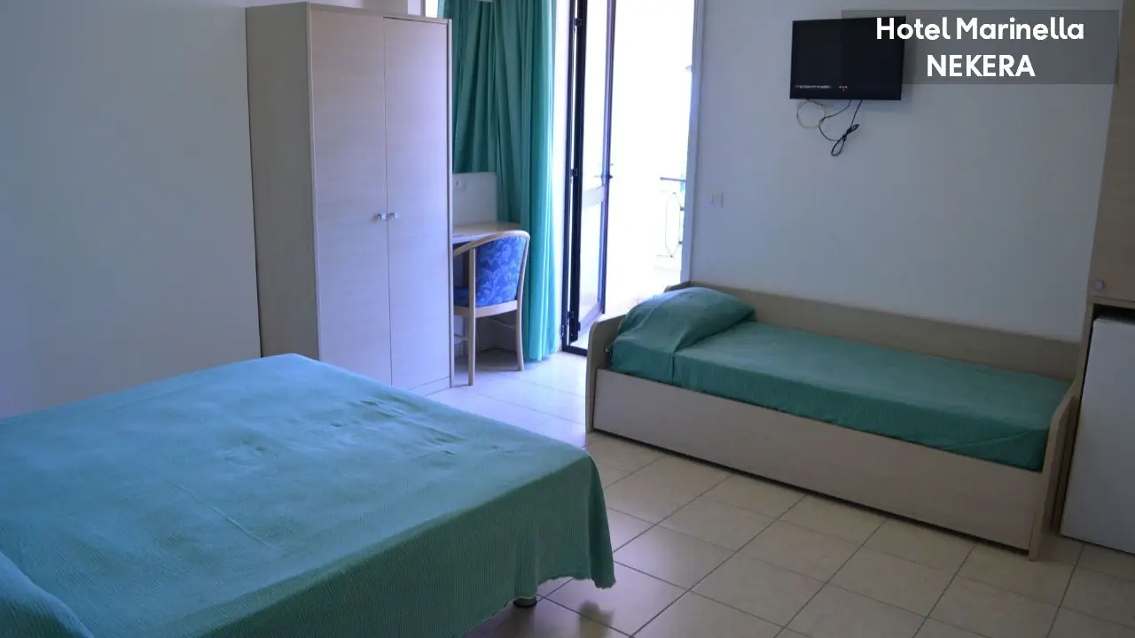 Double Room z bocznym widokiem na morze ok. 16 m², dla max 3 osób dorosłych, łóżko podwójne lub 2 łóżka pojedyncze, sofa lub łózko rozkładane jako dostawka, klimatyzacja, TV, sejf, mini lodówka, telefon (płatny),prywatna łazienka (prysznic, toaleta, umywalka, lustro, mini kosmetyki, suszarka), balkon.