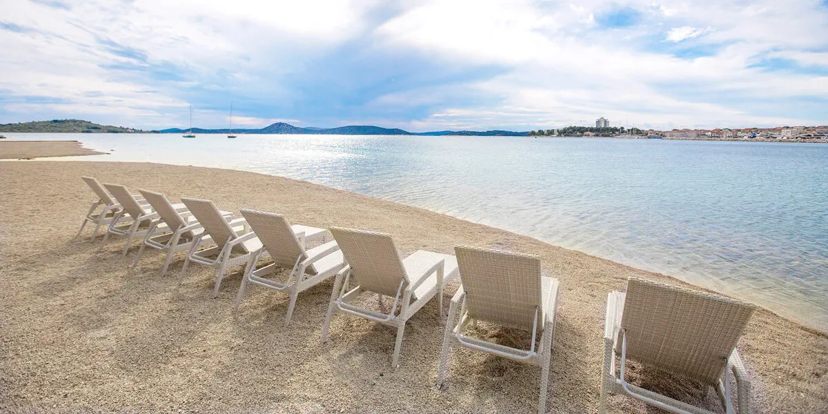 Matilde Beach Resort znajduje się nad samym Adriatykiem, tuż przy plaży, blisko centrum miasteczka Vodice, 10 km na północ od Szybenika.