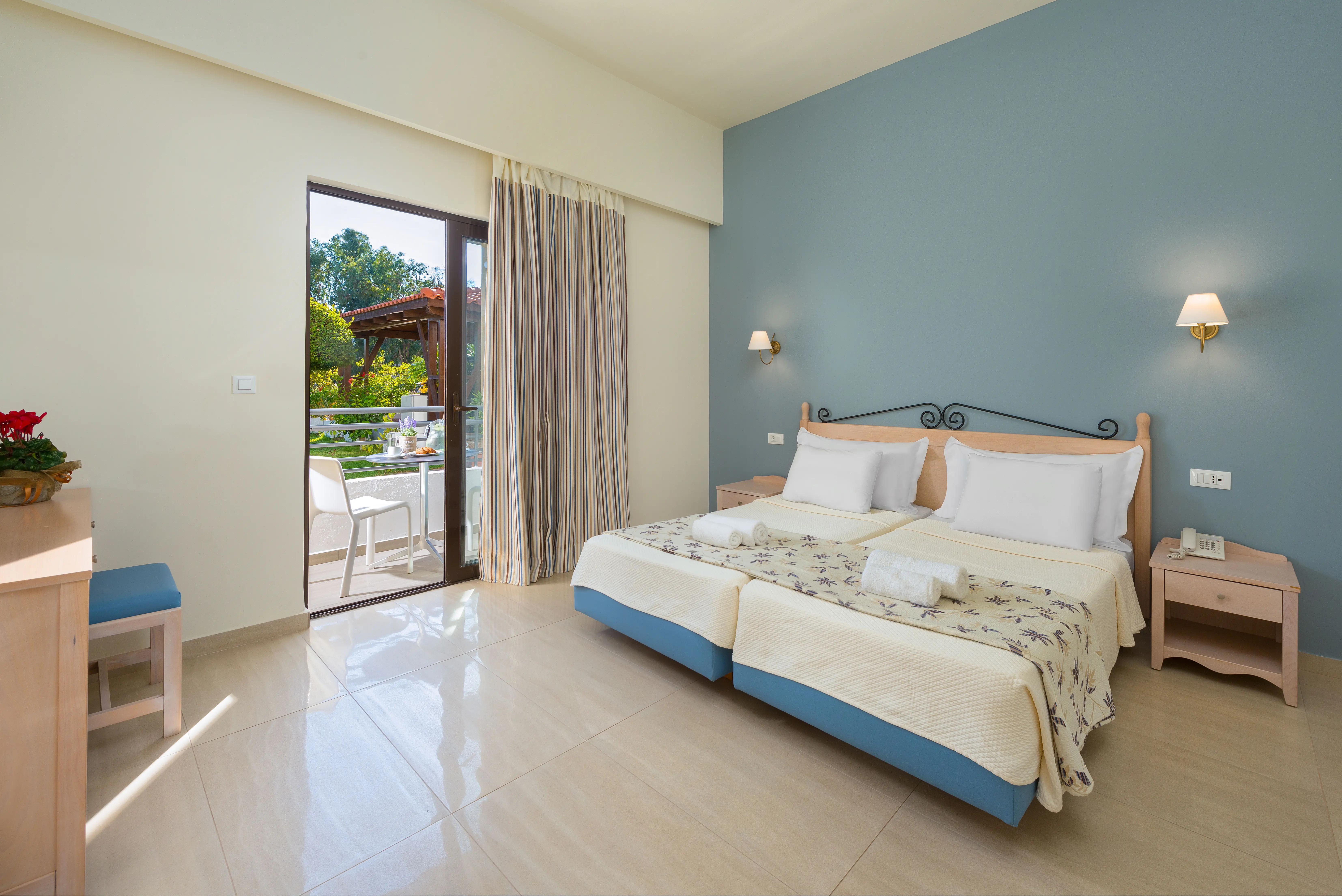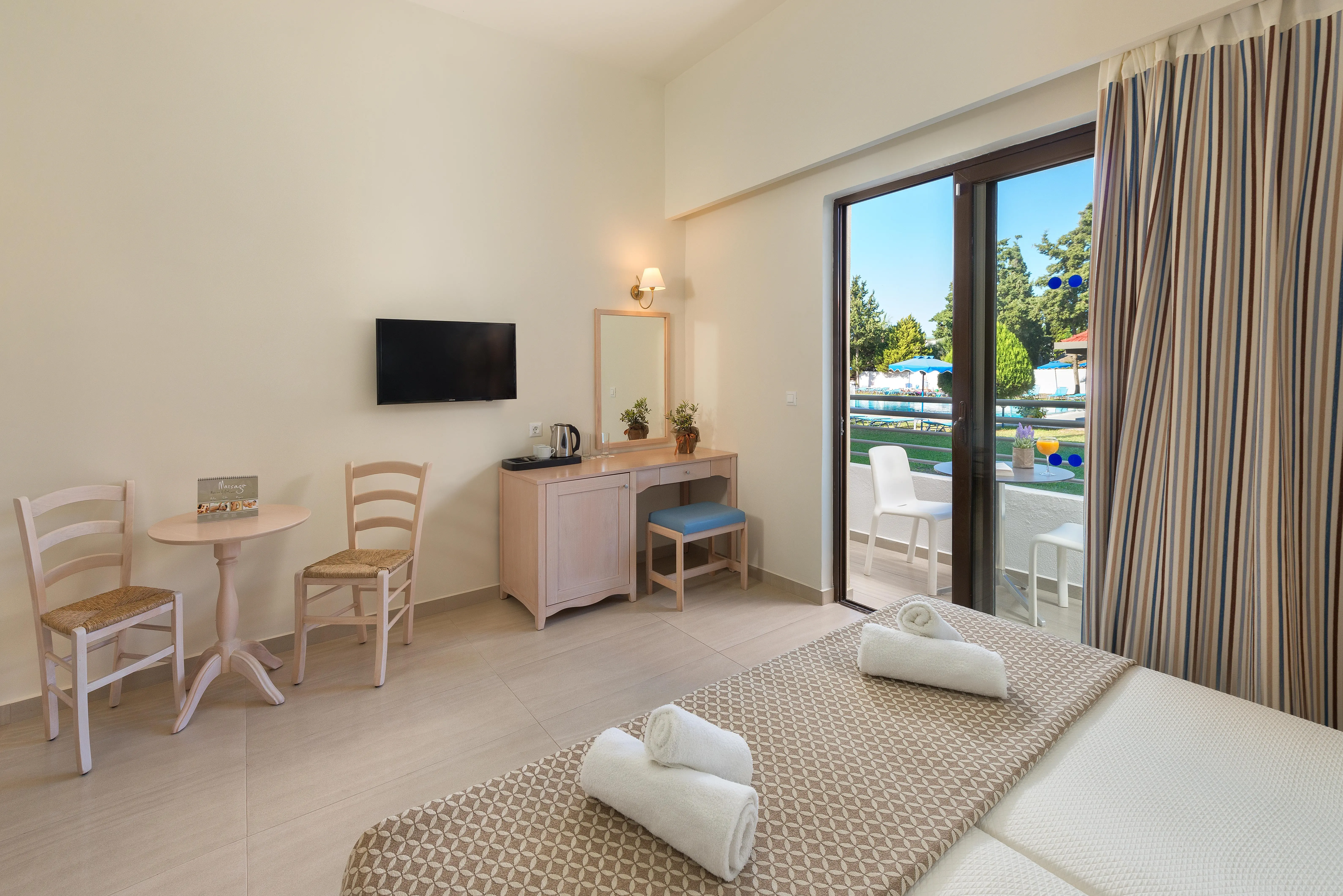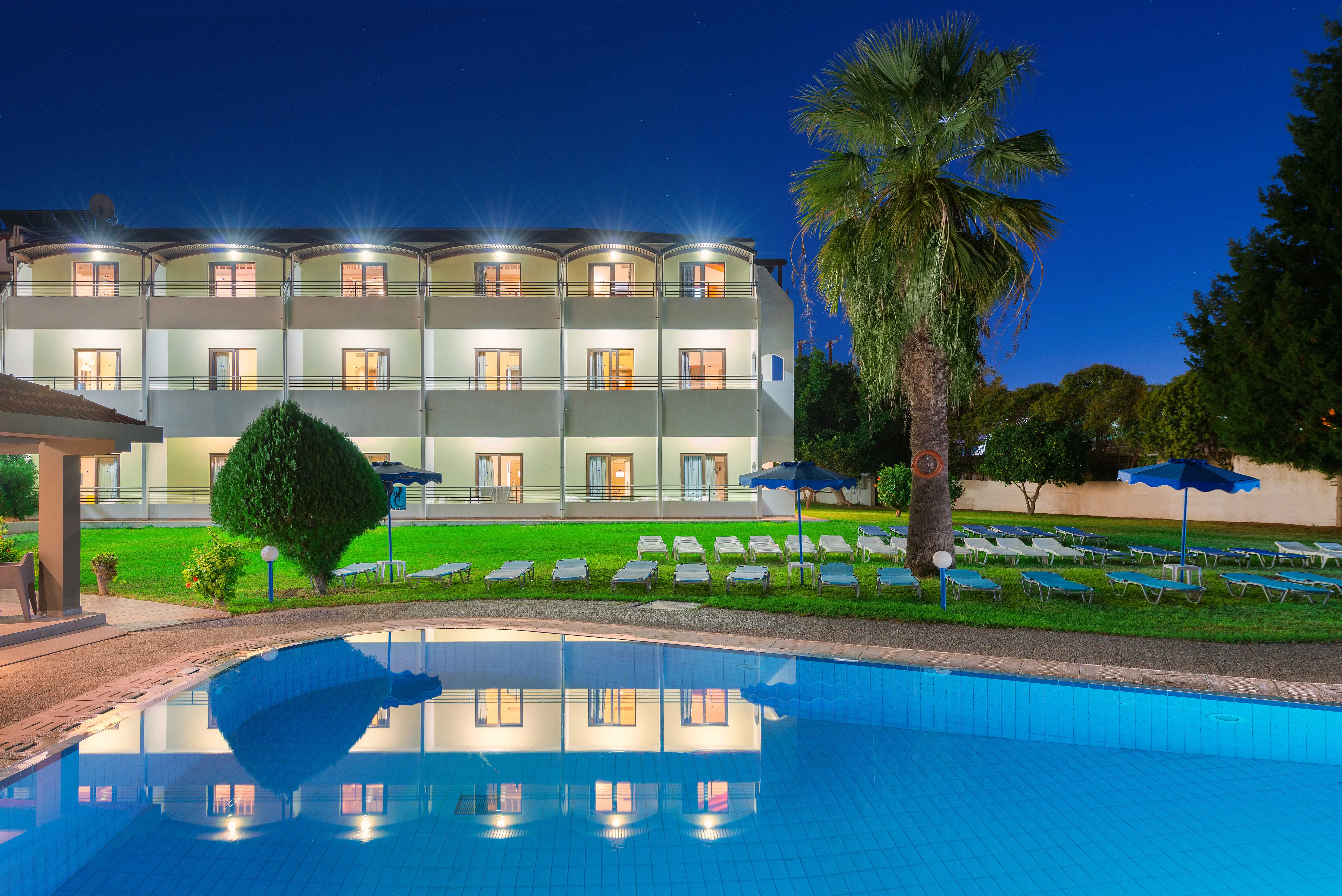 Kameralny hotel położony w pobliżu plaży, nieopodal starożytnego miasta Rodos. Znajdziemy tu dużo zielonej przestrzeni idealnej do błogiego relaksu w promieniach greckiego słońca.