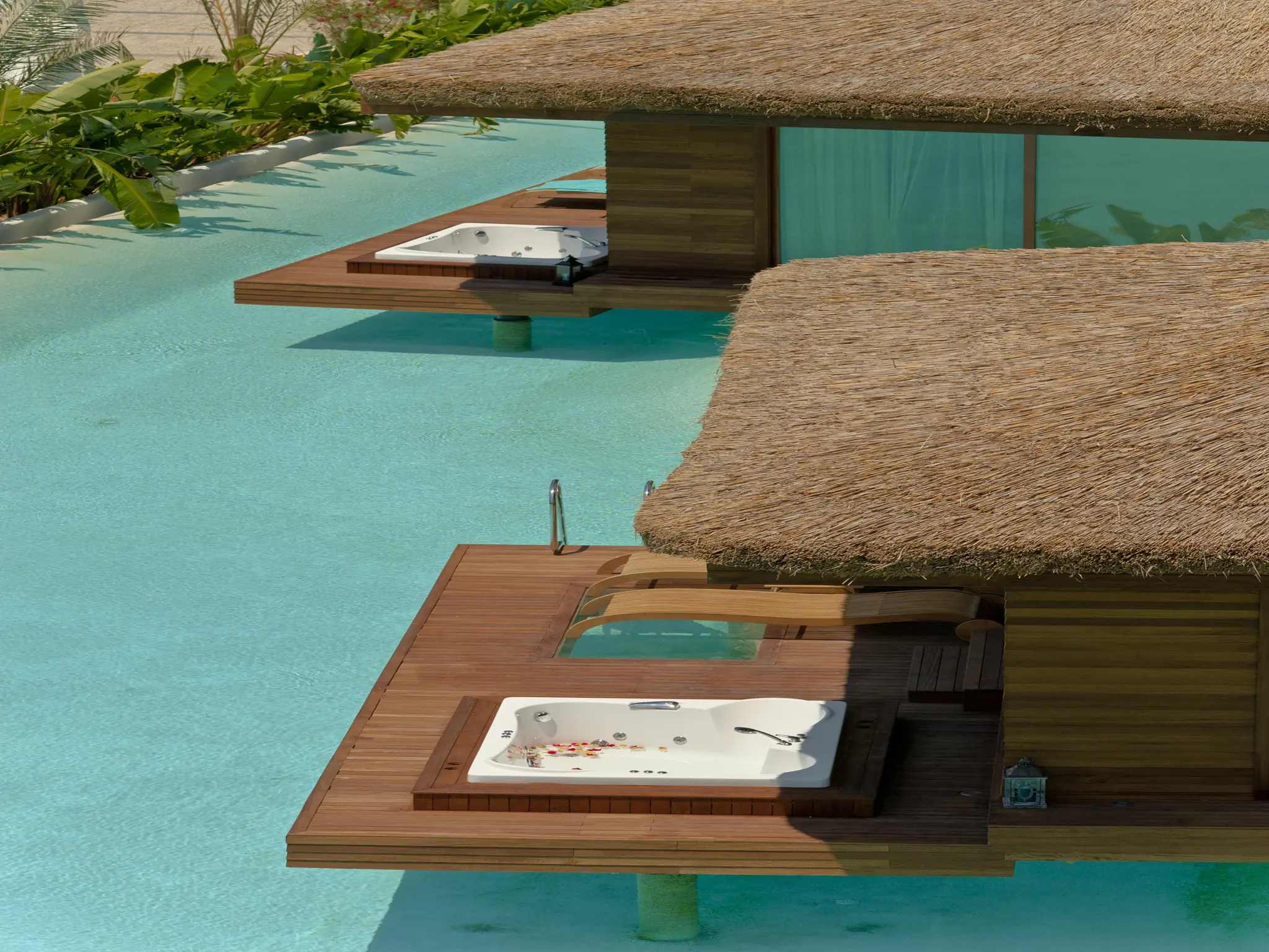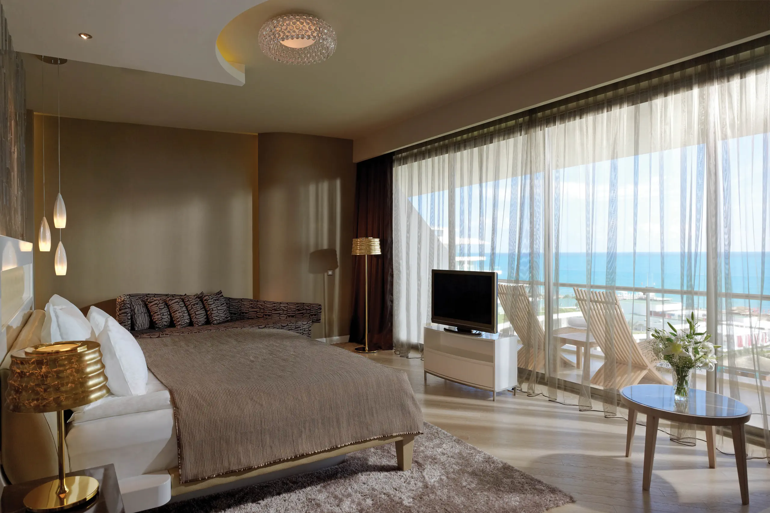 Suity dwuosobowe w budynku głównym, ok. 80 m2, TV/SAT, telefon, minibar (codziennie napoje bezalkoholowe, piwo, wino i przekąski), sejf, klimatyzacja (centralna), łazienka z prysznicem i jacuzzi, suszarka do włosów, szlafroki, kapcie, WC, balkon, widok na ląd. Widok na morze. Rodzinne Terrace Suite ok. 100 m2, w budynku bocznym połączonym z głównym, 2 pokoje, 2 łazienki z prysznicem, garderoba, jacuzzi na balkonie, wyposażone jak Suity dwuosobowe . Suity Lagoon Duplex ok. 135 m2, w budynku głównym, pokój dzienny, 2 sypialnie na dwóch poziomach, dwie łazienki (z prysznicem i jacuzzi), 2xWC, garderoba, taras z bezpośrednim dostępem do basenu, wyposażone jak Suity dwuosobowe. Suity rodzinne Roof ok. 140 m2, w budynku głównym, dwie sypialnie, dwie łazienki z prysznicem, dwa balkony z jacuzzi, wyposażone jak Suity dwuosobowe. Royal Suite ok. 100 m2, w budynku głównym, sypialnia i pokój dzienny, łazienka z prysznicem, jacuzzi w pokoju, widok na morze, wyposażone jak Suity dwuosobowe.