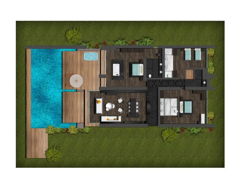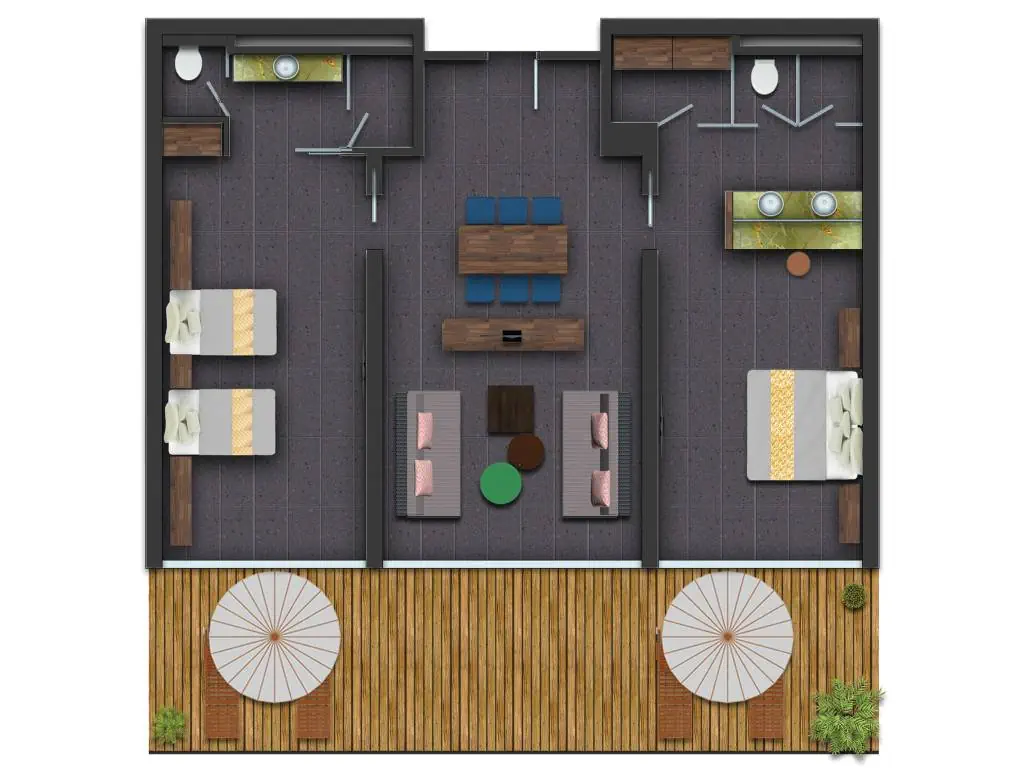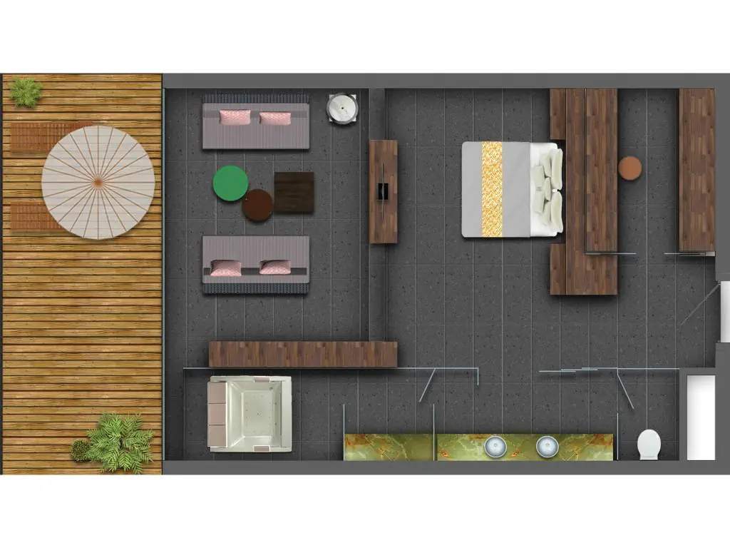 Dla max. 3 osób, Przestrzeń zewnętrzna: Taras, Kanały telewizji: Angielski, Telefon w pokoju, prysznic, jacuzzi, Powierzchnia pokoju: ok. 150 m2, Dostawka: sofa, Rodzaj podłogi: płytki, Sprzątanie codziennie, 1 sypialnia, Drzwi łączące między pokojami, Maksymalna liczba osób dorosłych: 3, Maksymalna liczba dzieci: 1, Widok na basen, Liczba łazienek: 1, Liczba toalet: 1, Zestaw do parzenia kawy i herbaty, Klimatyzacja: Klimatyzacja indywidualna
