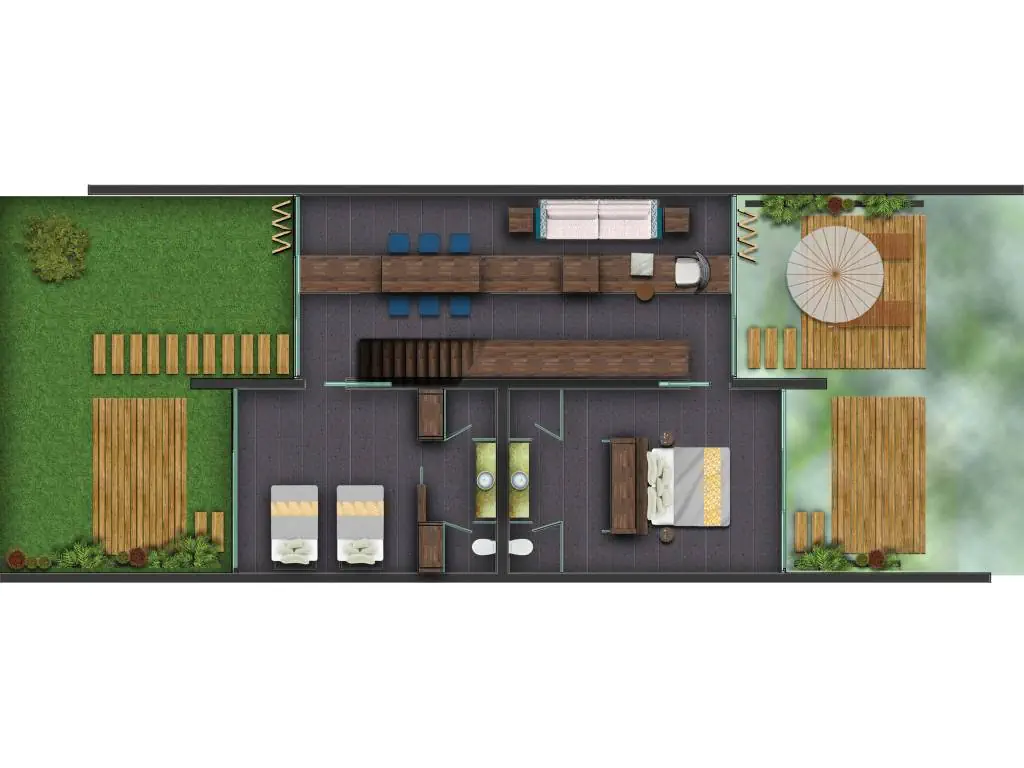 Dla max. 6 osób, Przestrzeń zewnętrzna: Taras, Kanały telewizji: Angielski, Telefon w pokoju, prysznic, jacuzzi, Powierzchnia pokoju: ok. 185 m2, Dostawka: sofa, Rodzaj podłogi: płytki, Sprzątanie codziennie, 2 sypialnie, Drzwi łączące między pokojami, Maksymalna liczba osób dorosłych: 6, Maksymalna liczba dzieci: 0, Widok na ogród, Liczba łazienek: 2, Liczba toalet: 2, Zestaw do parzenia kawy i herbaty, Klimatyzacja: Klimatyzacja indywidualna