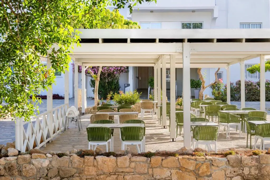 - w spokojnej okolicy Pafos - ok. 1 km od plaży ( leżaki i parasol dodatkowo płatne ) - w pobliży hotelu znajdują się sklepy, restauracje, tawerny - 15 km od lotniska w Pafos Plaża - kamienista, ok. 1 km od hotelu. Wyposażenie -245 pokoi w budynku głównym (3 piętra) bądź w jednym z budynków pobocznych (do 3 pięter) -lobby wraz z recepcją z check-out-service - winda - przechowalnia bagażu, sejf, kantor wymiany walut i bankomat - WI FI w całym hotelu ( w cenie) - udogodnienia dla niepełnosprawnych - parking - wypożyczalnia aut (dodatkowo płatne) - pralnia (dodatkowo płatne) - wypożyczalnia rowerów Zakwaterowanie Pokoje standardowe z widokiem na ląd lub na basen - łóżko pojedyncze lub podwójne - ok. 22 m2