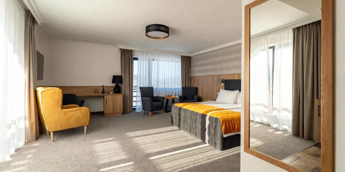 Wygodny pokój z balkonem i łazienką