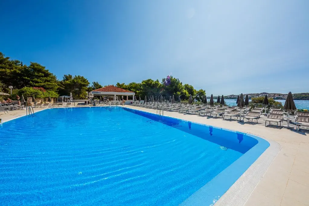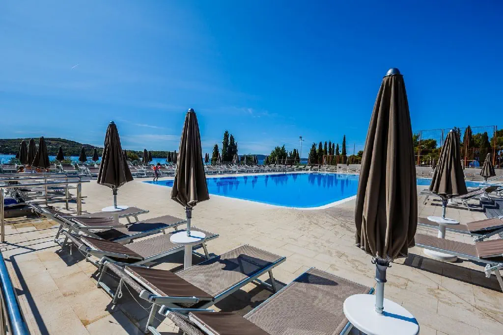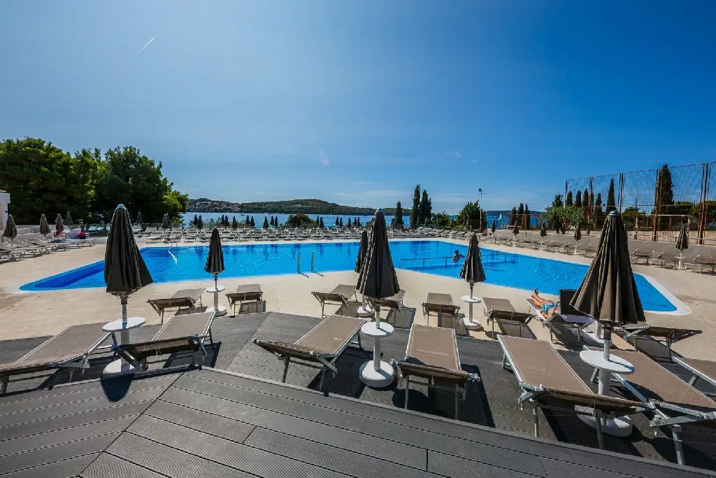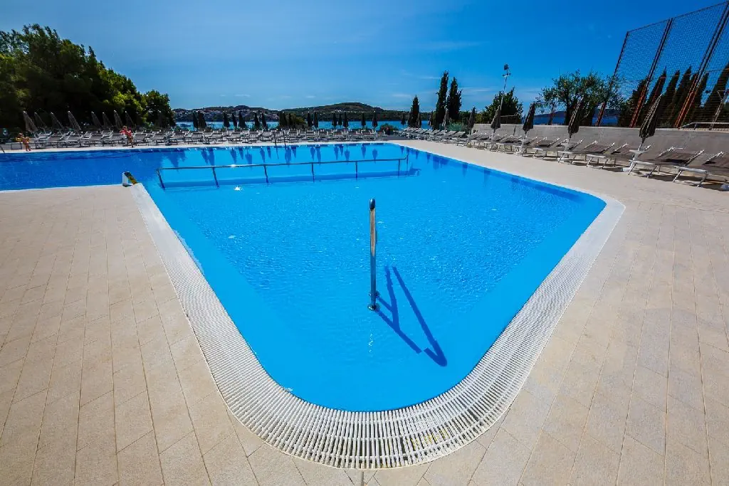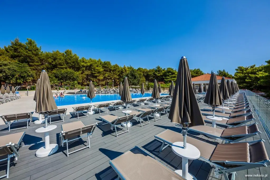 odkryty. Leżaki i parasole (odpłatnie / ograniczona liczba). Spray Park dla dzieci obok basenu.